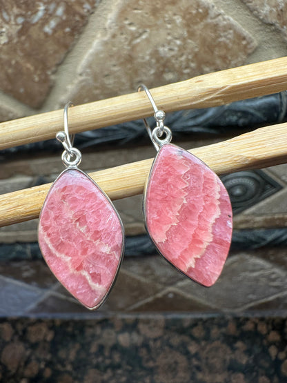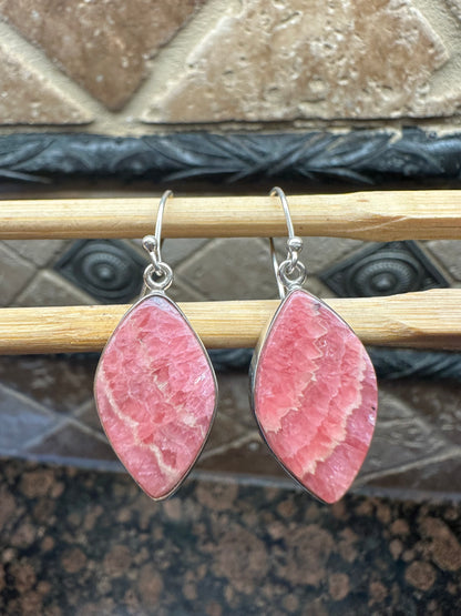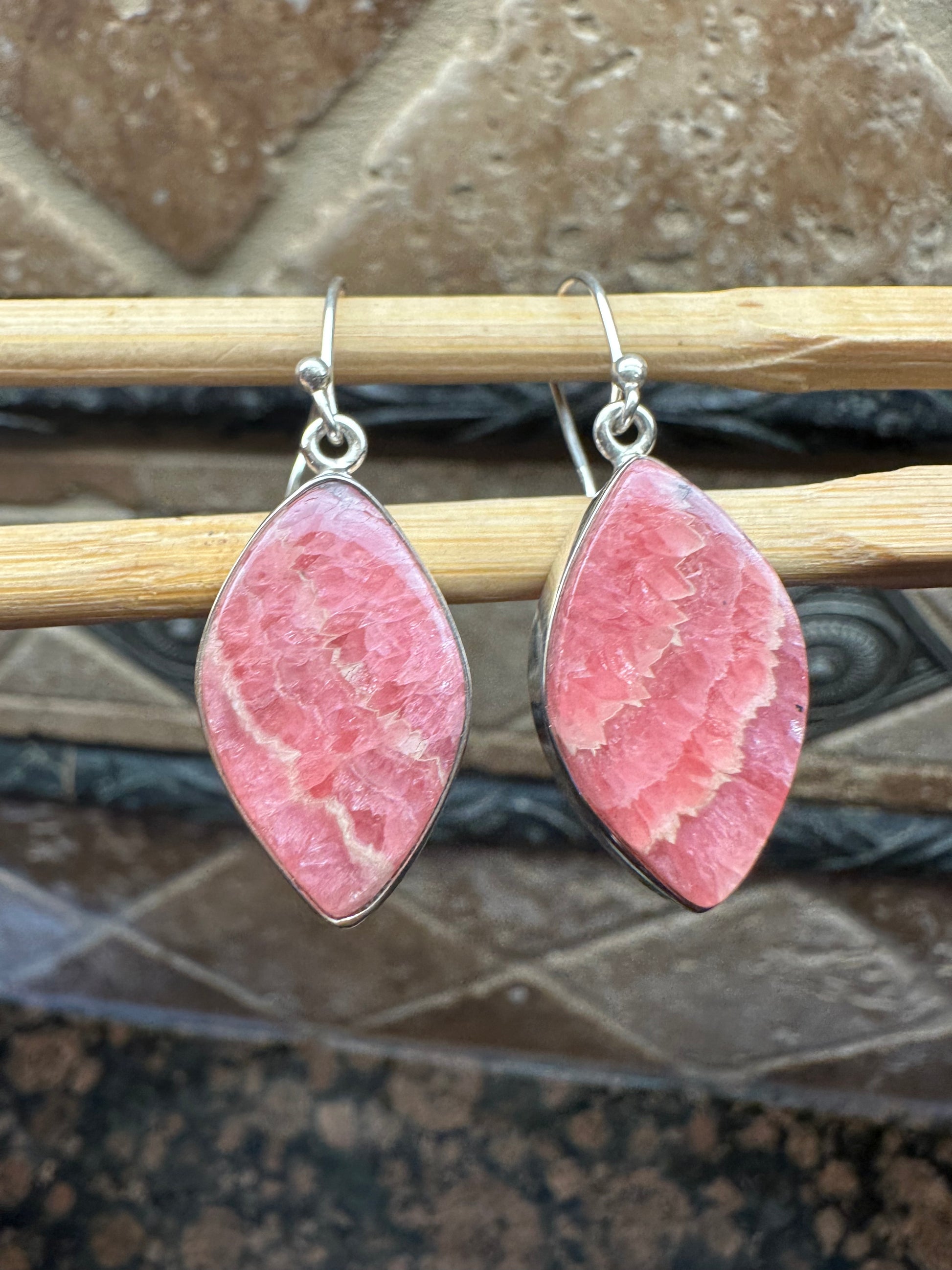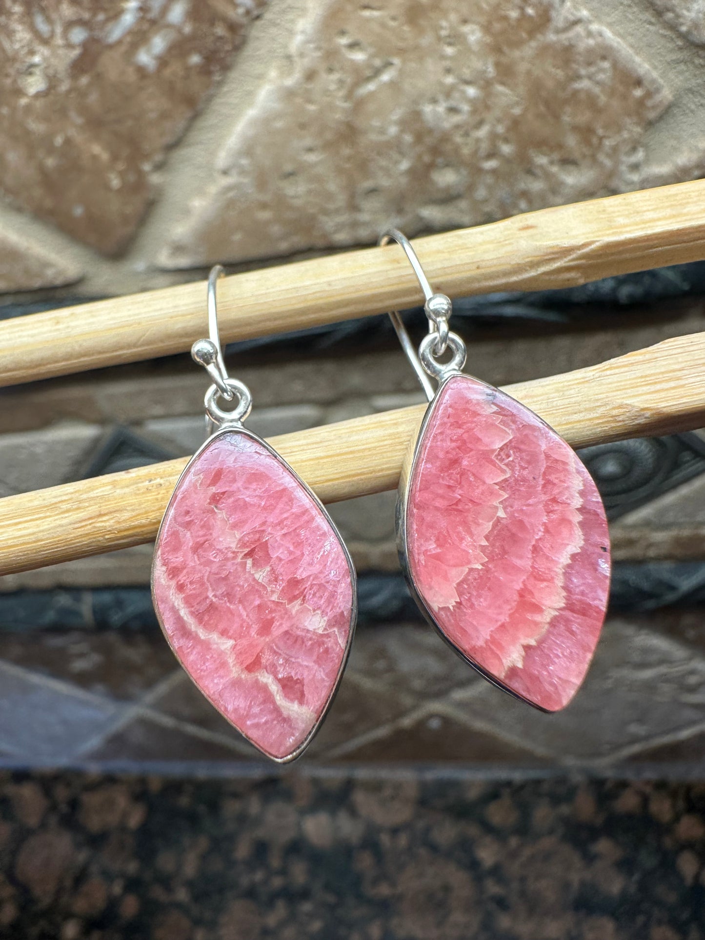 Natural Pink Rhodocrosite 925 Sterling Silver Earrings 40mm