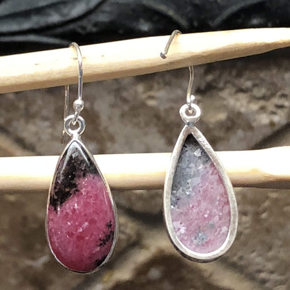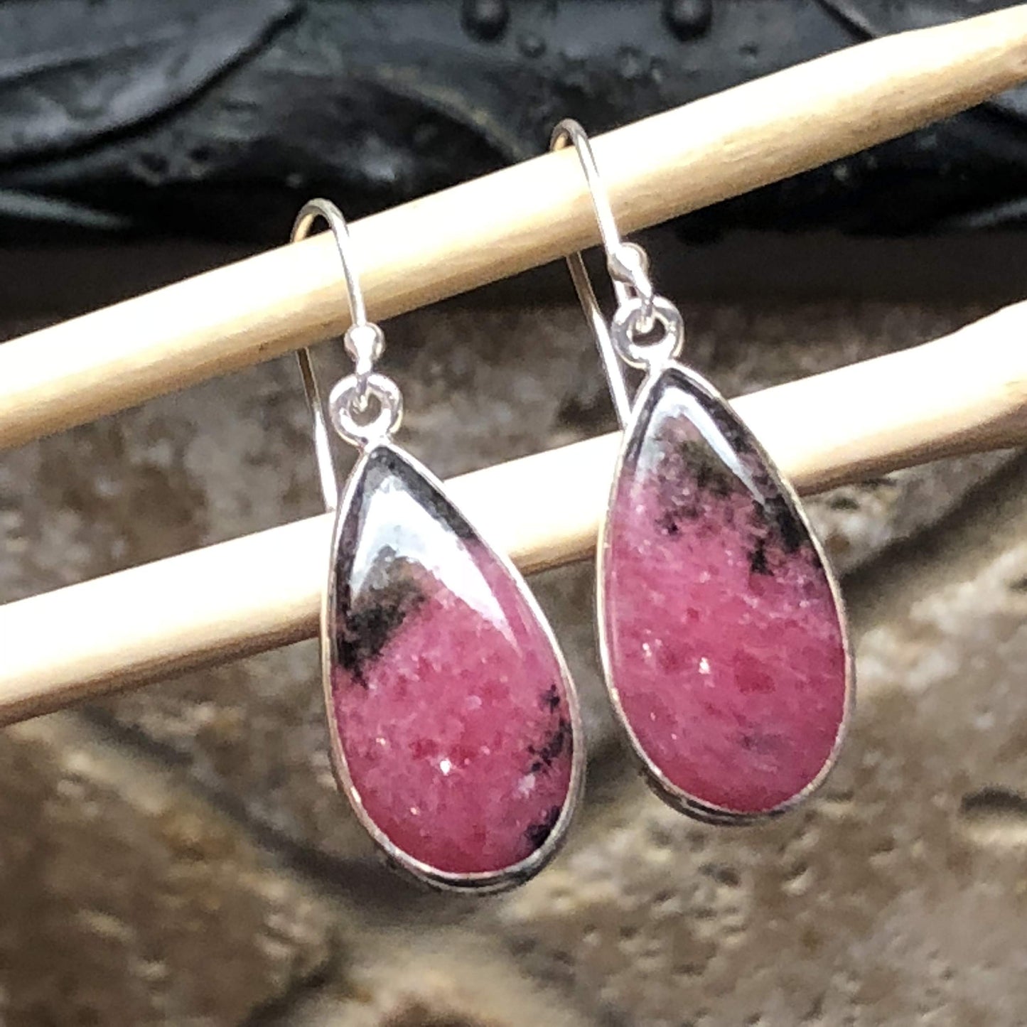 Natural Pink Rhodonite 925 Sterling Silver Earrings 35mm