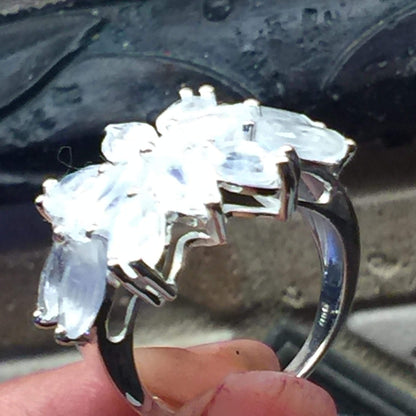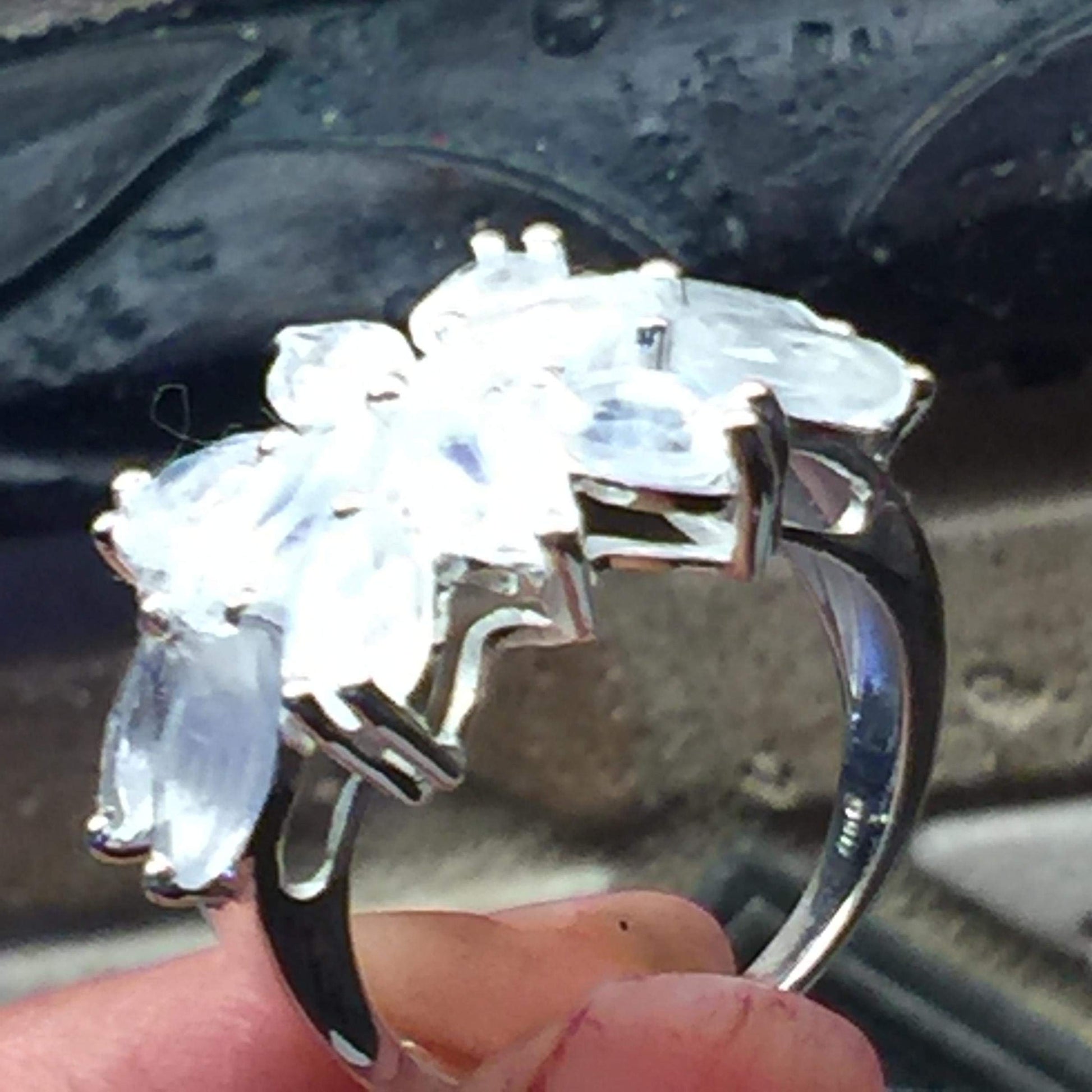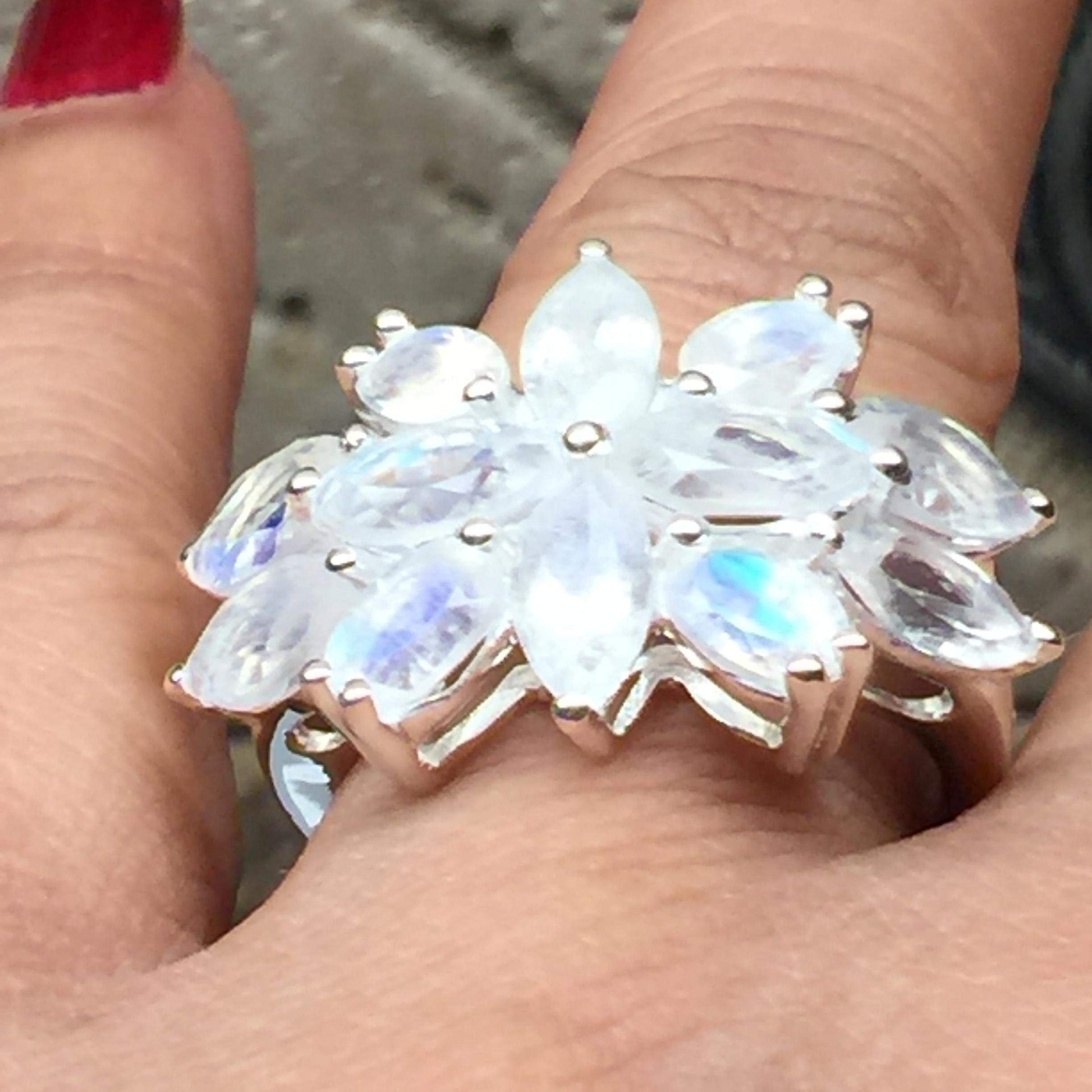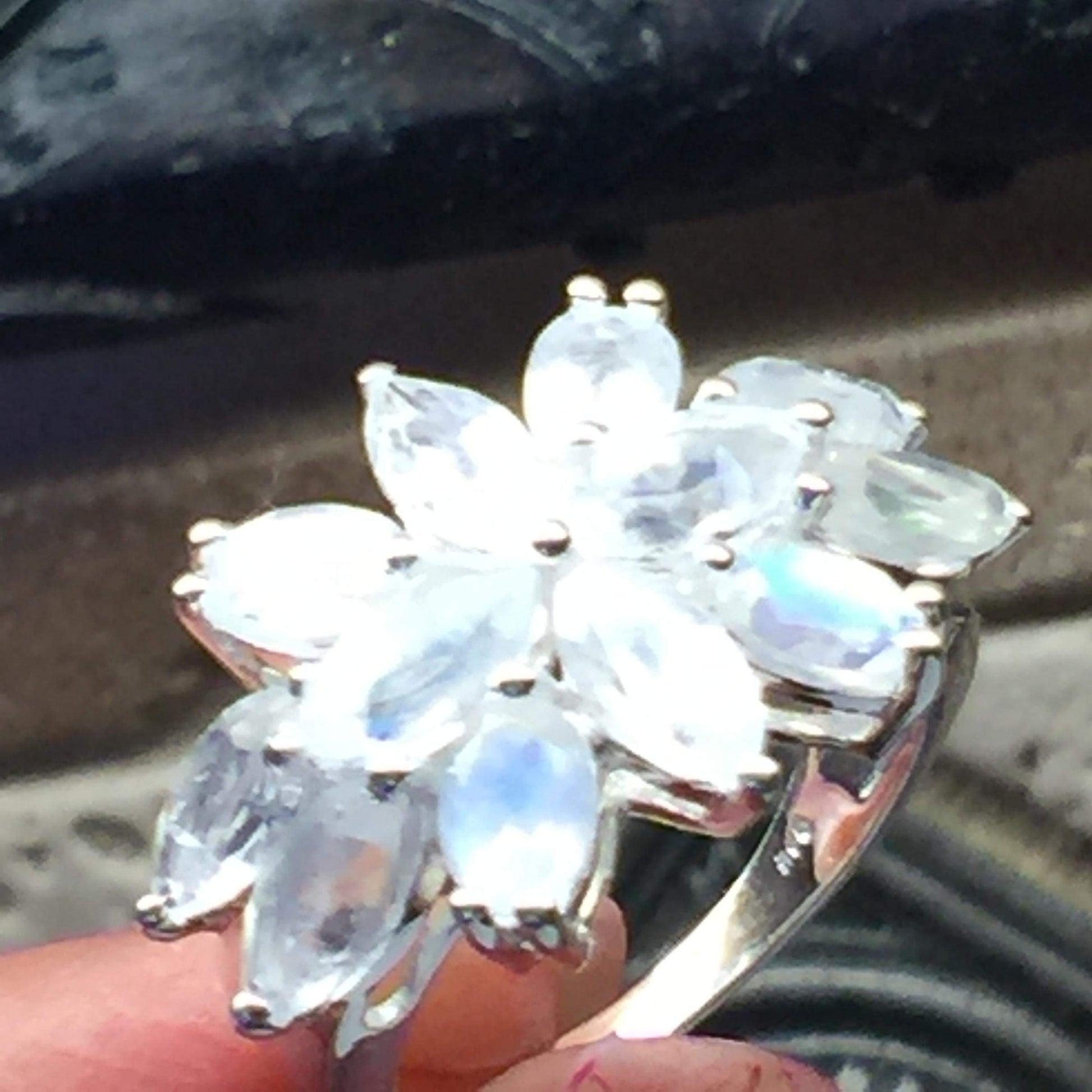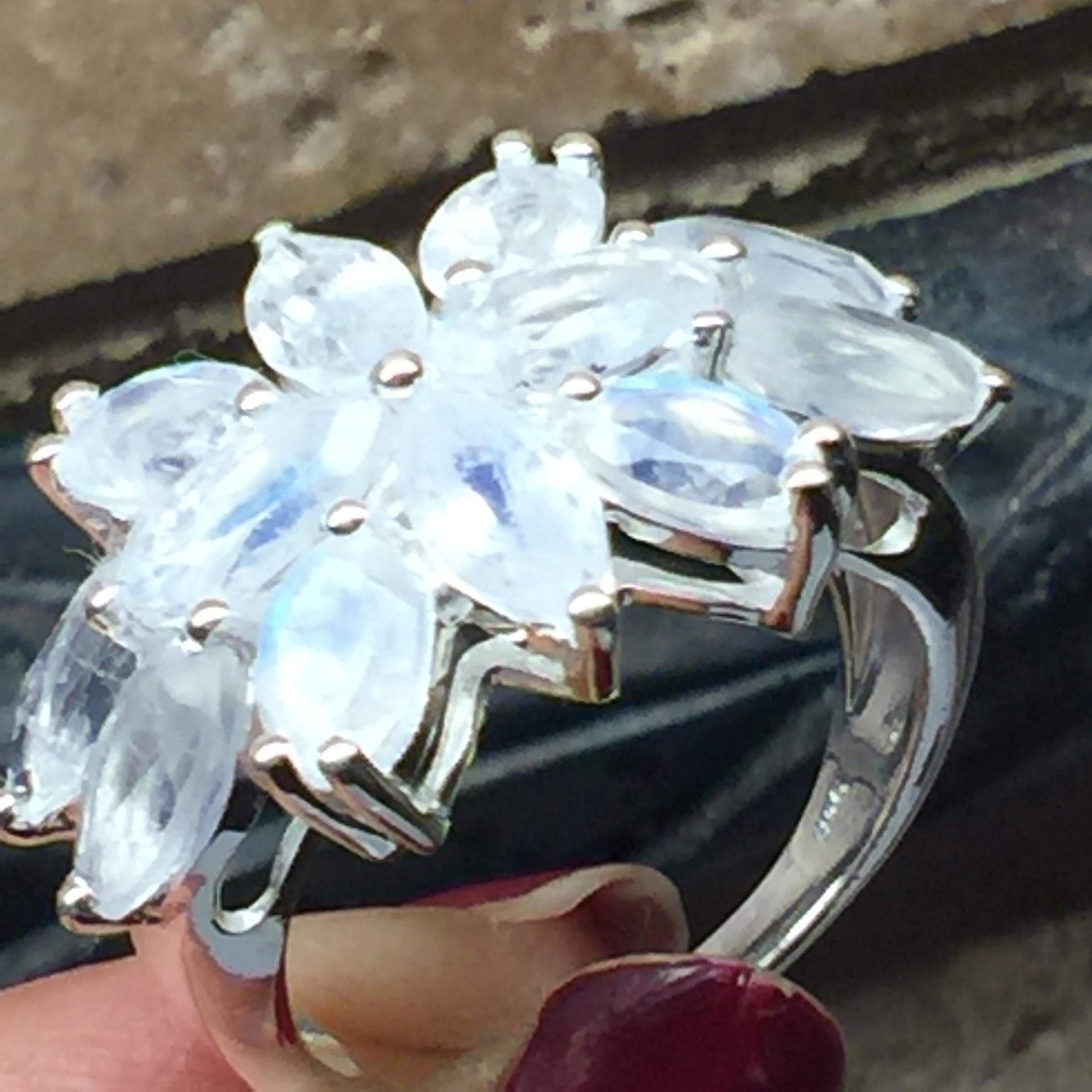 Natural Rainbow Moonstone 925 Solid Sterling Silver Ring Size 6, 7, 9, 10