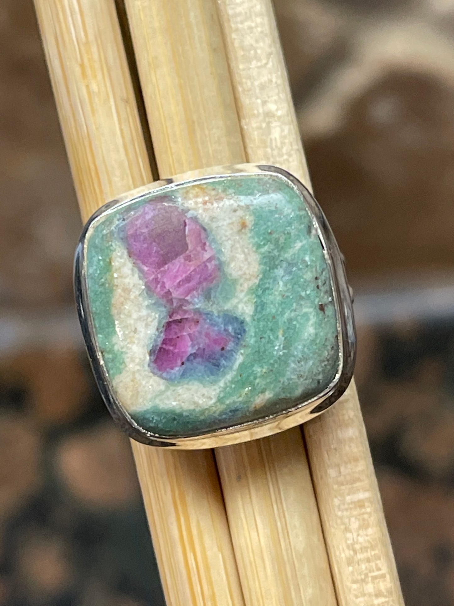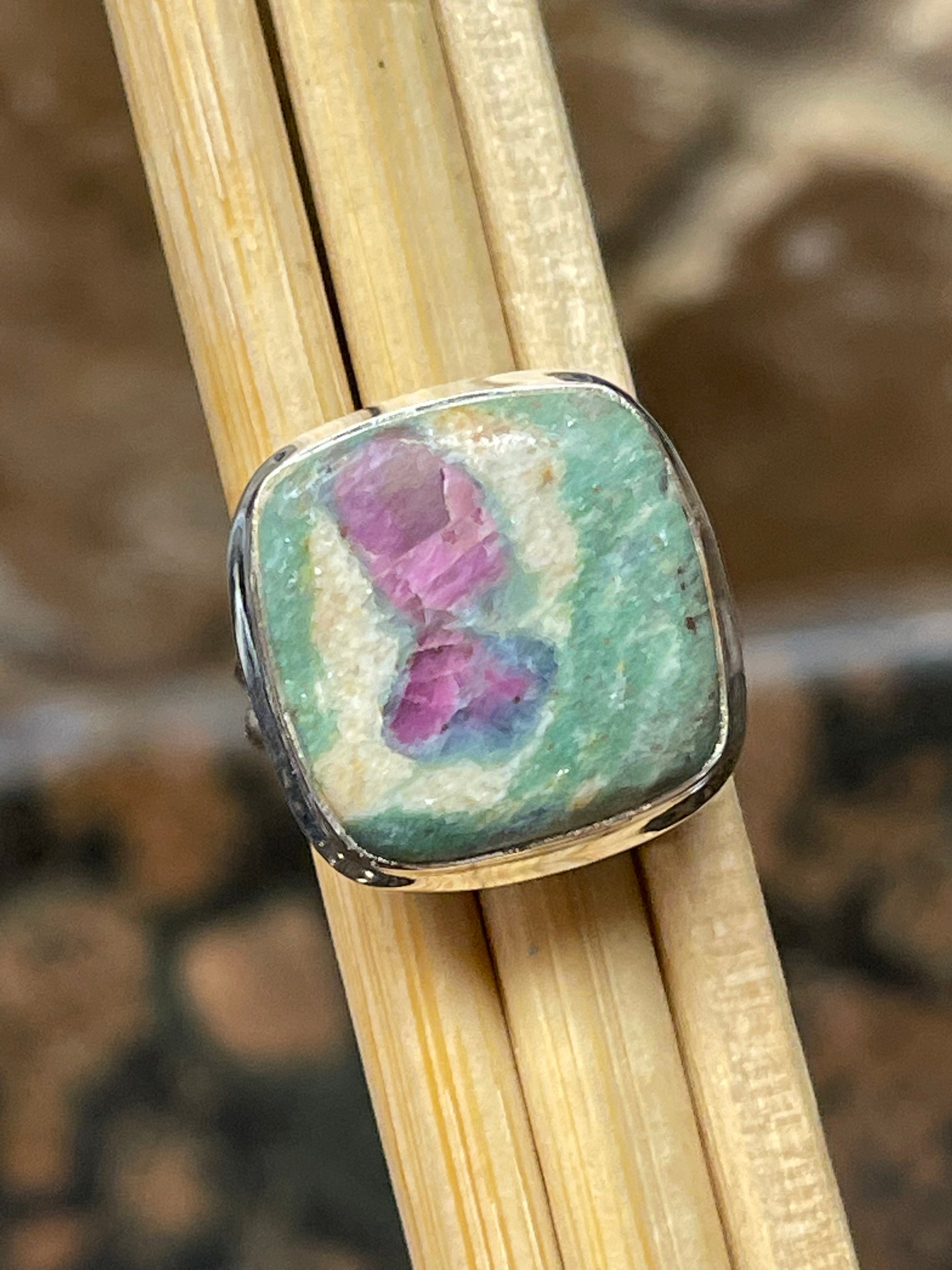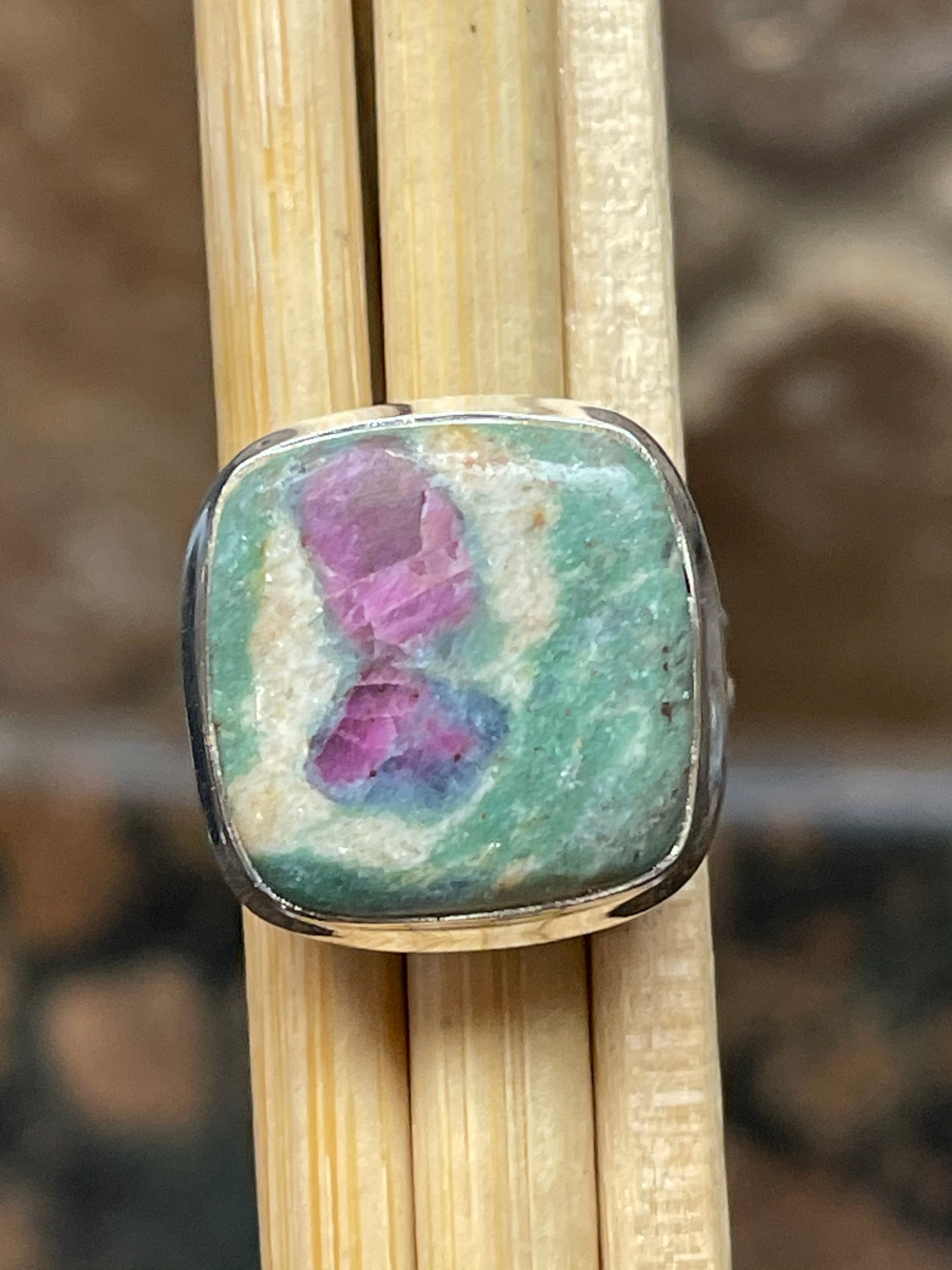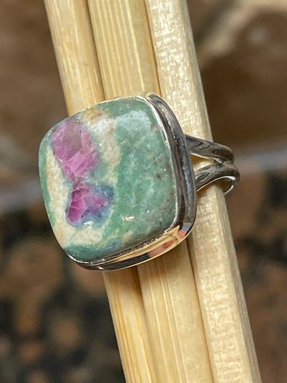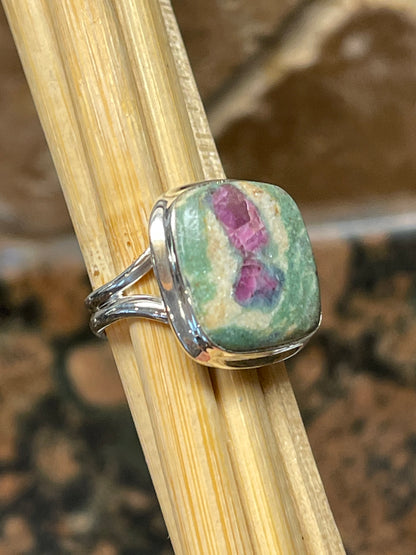 Natural Ruby in Fuchsite 925 Solid Sterling Silver Ring Size 5
