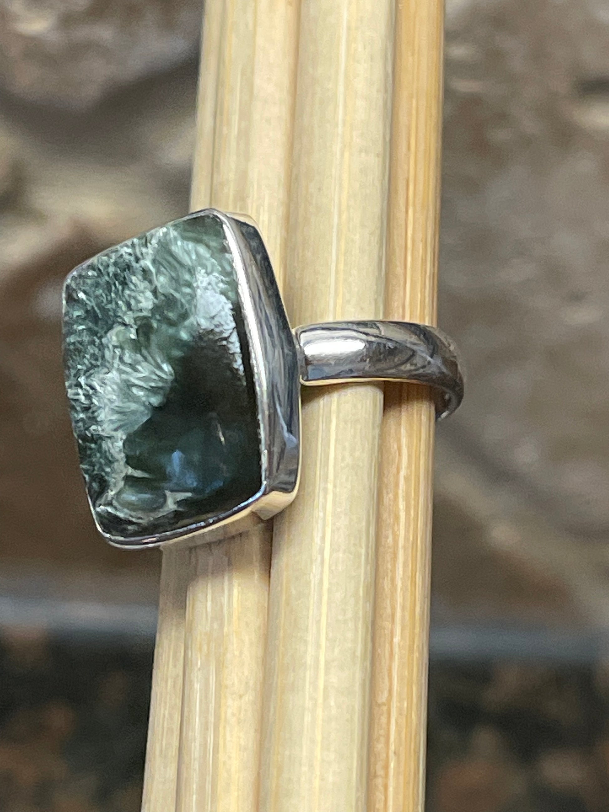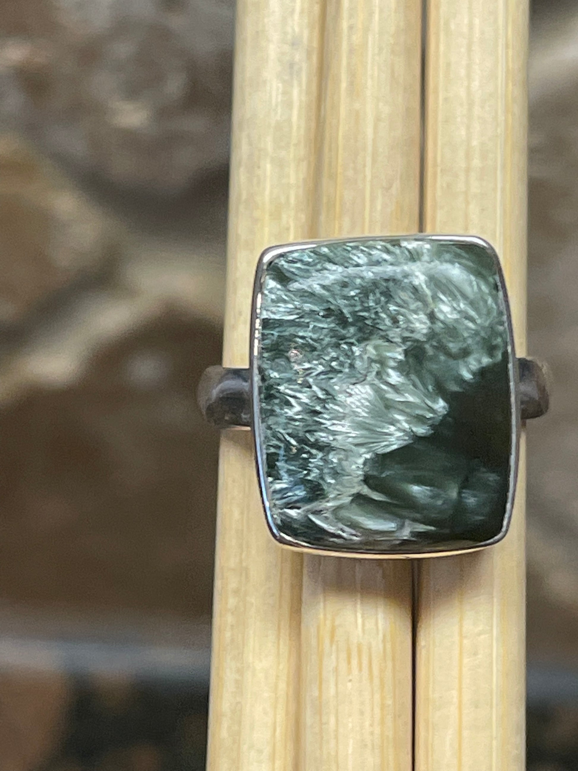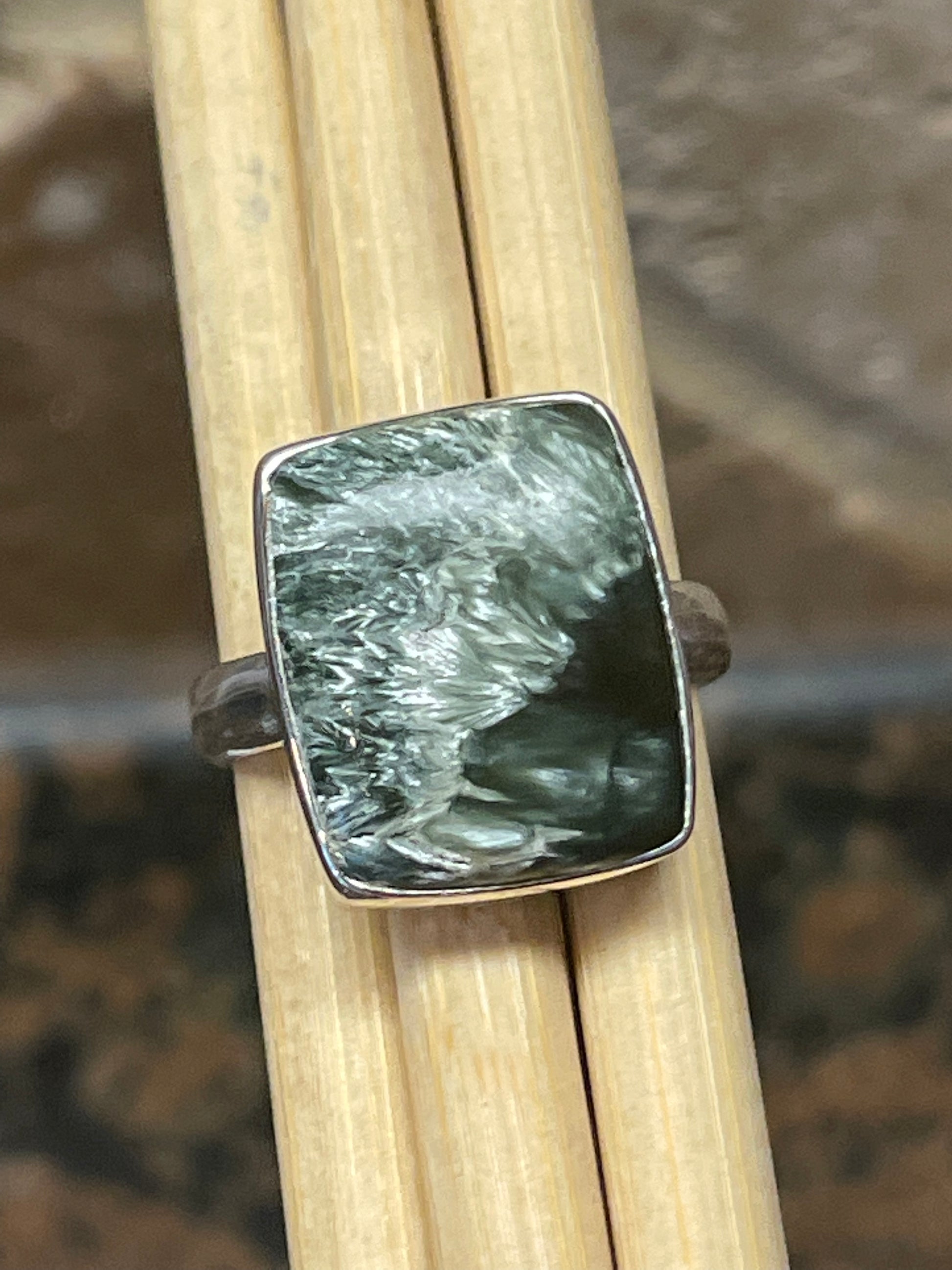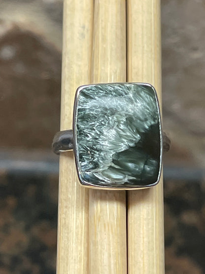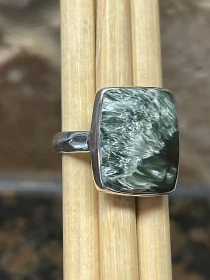 Natural Russian Seraphinite 925 Solid Sterling Silver Ring Size 8.5