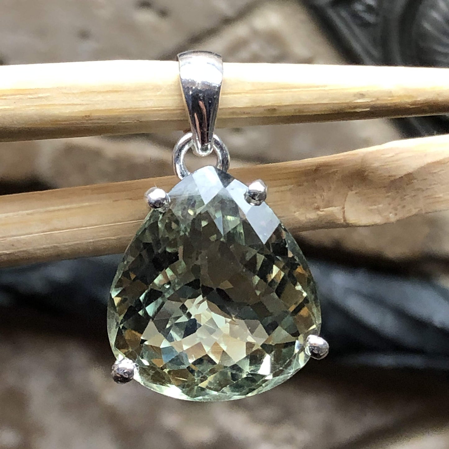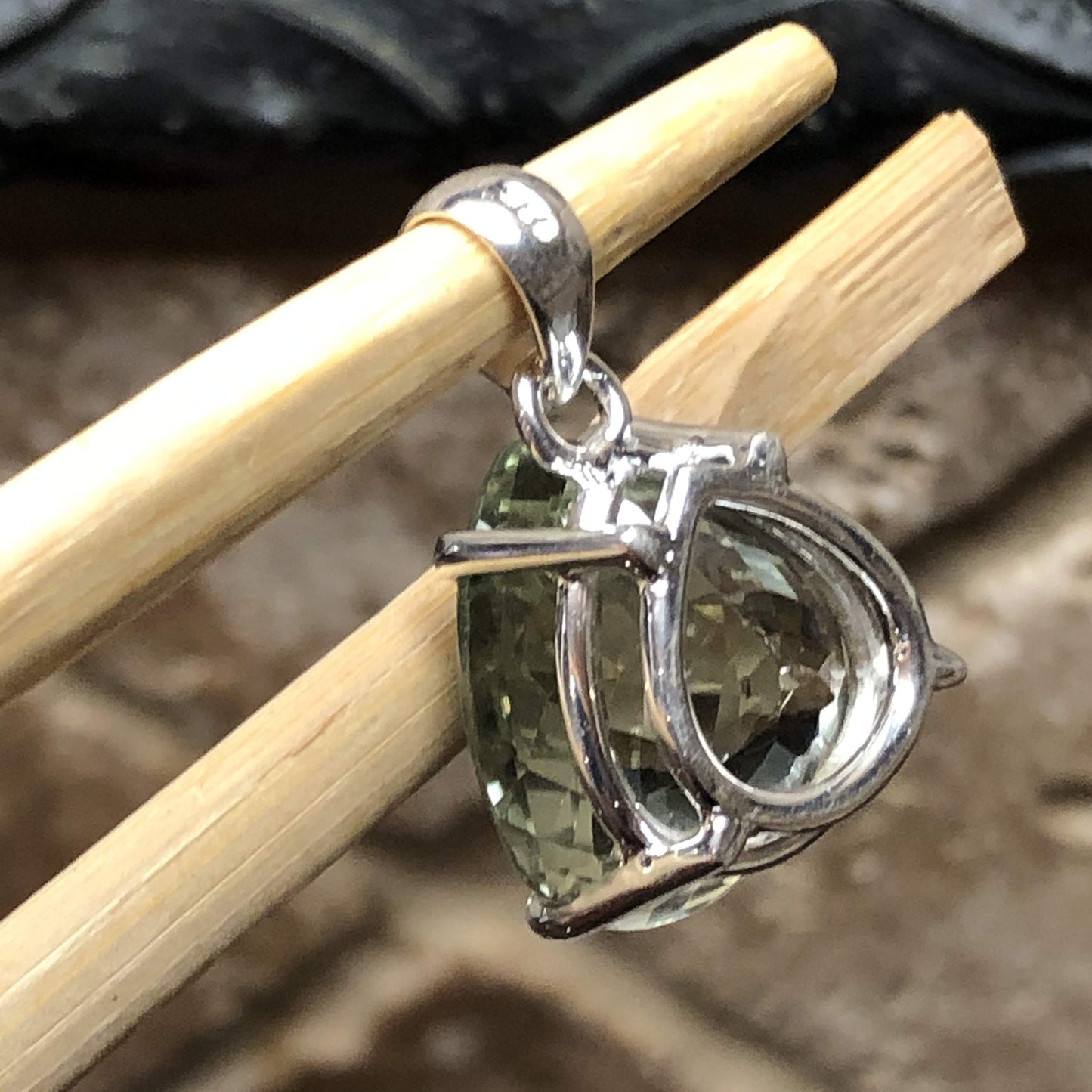 Natural 14ct Green Amethyst 925 Solid Sterling Silver Pendant 25mm