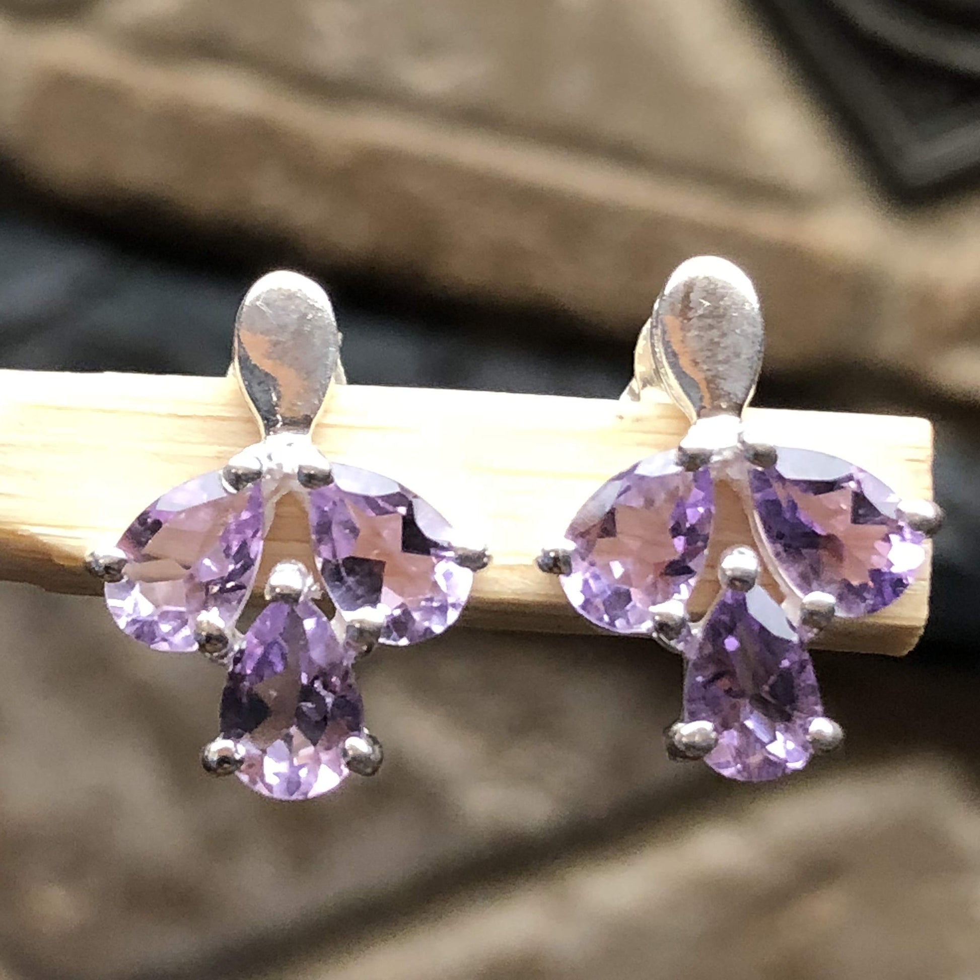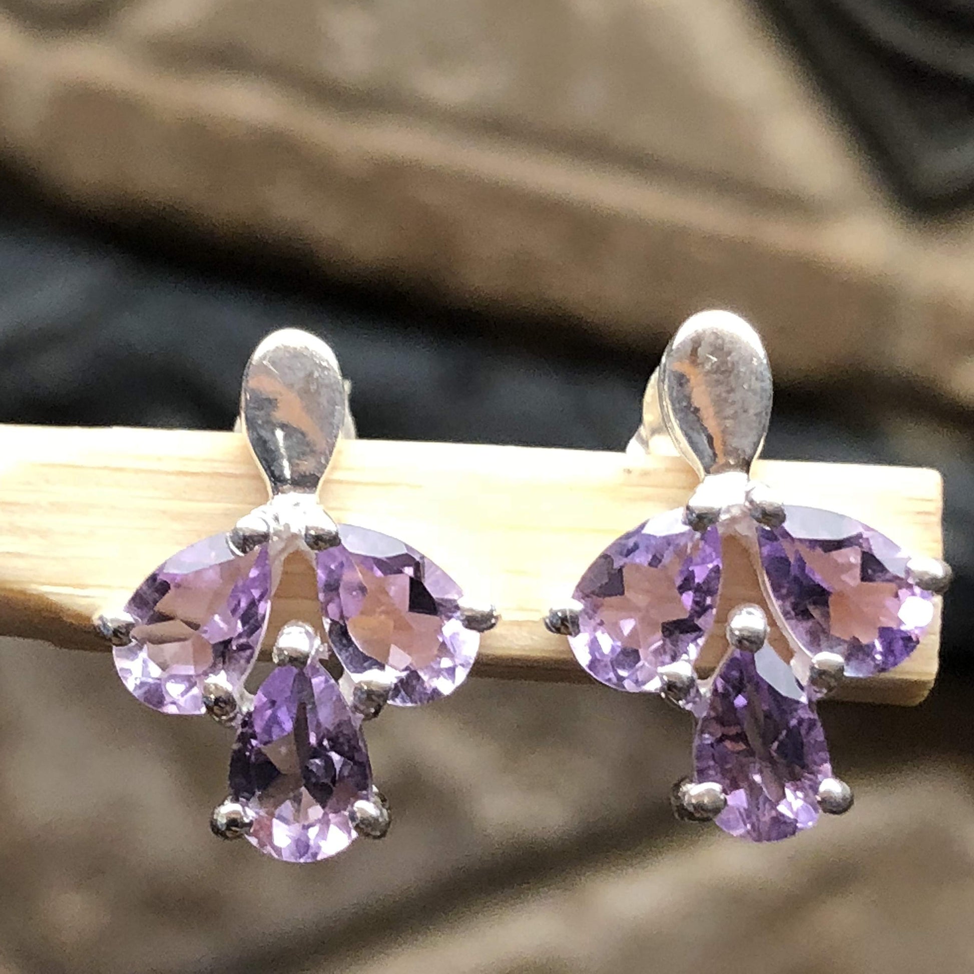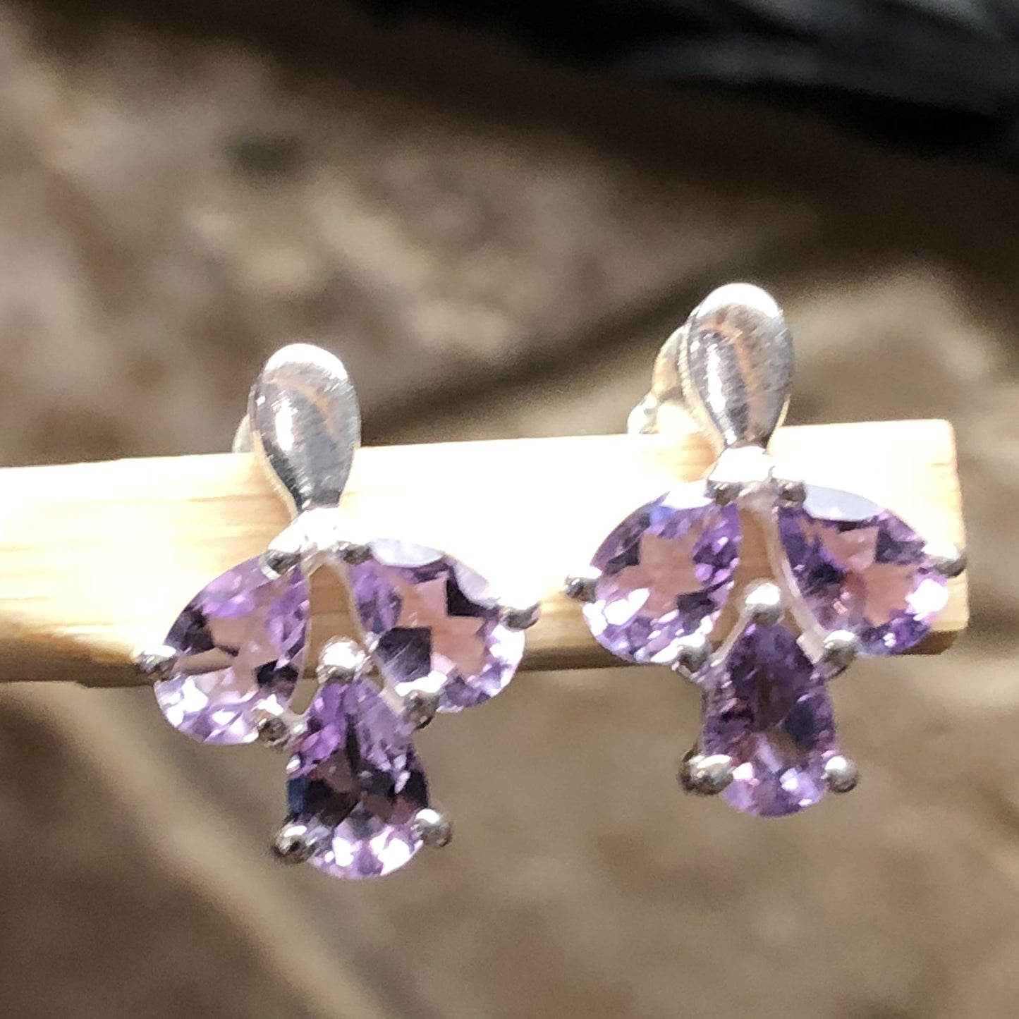 Natural 2.5ct Purple Amethyst 925 Solid Sterling Silver Earrings 15mm