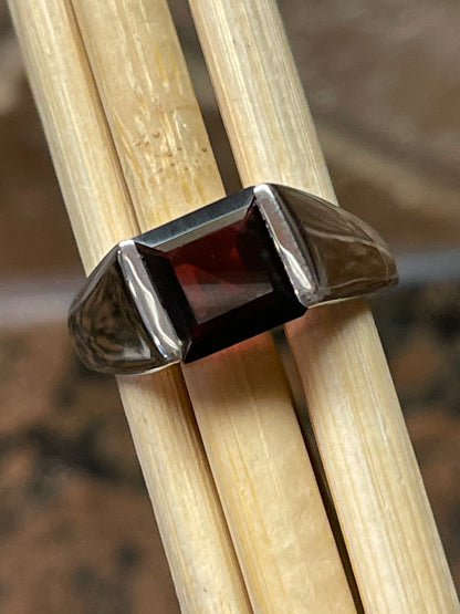 Natural 2ct Pyrope Garnet 925 Solid Sterling Silver Men's Ring Size 7, 8, 9, 10, 11, 12, 13