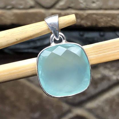 Natural Blue Chalcedony 925 Solid Sterling Silver Pendant 25mm