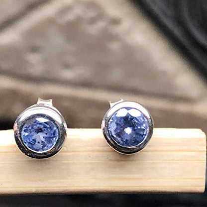 Natural Blue Tanzanite 925 Solid Sterling Silver Earrings 5mm