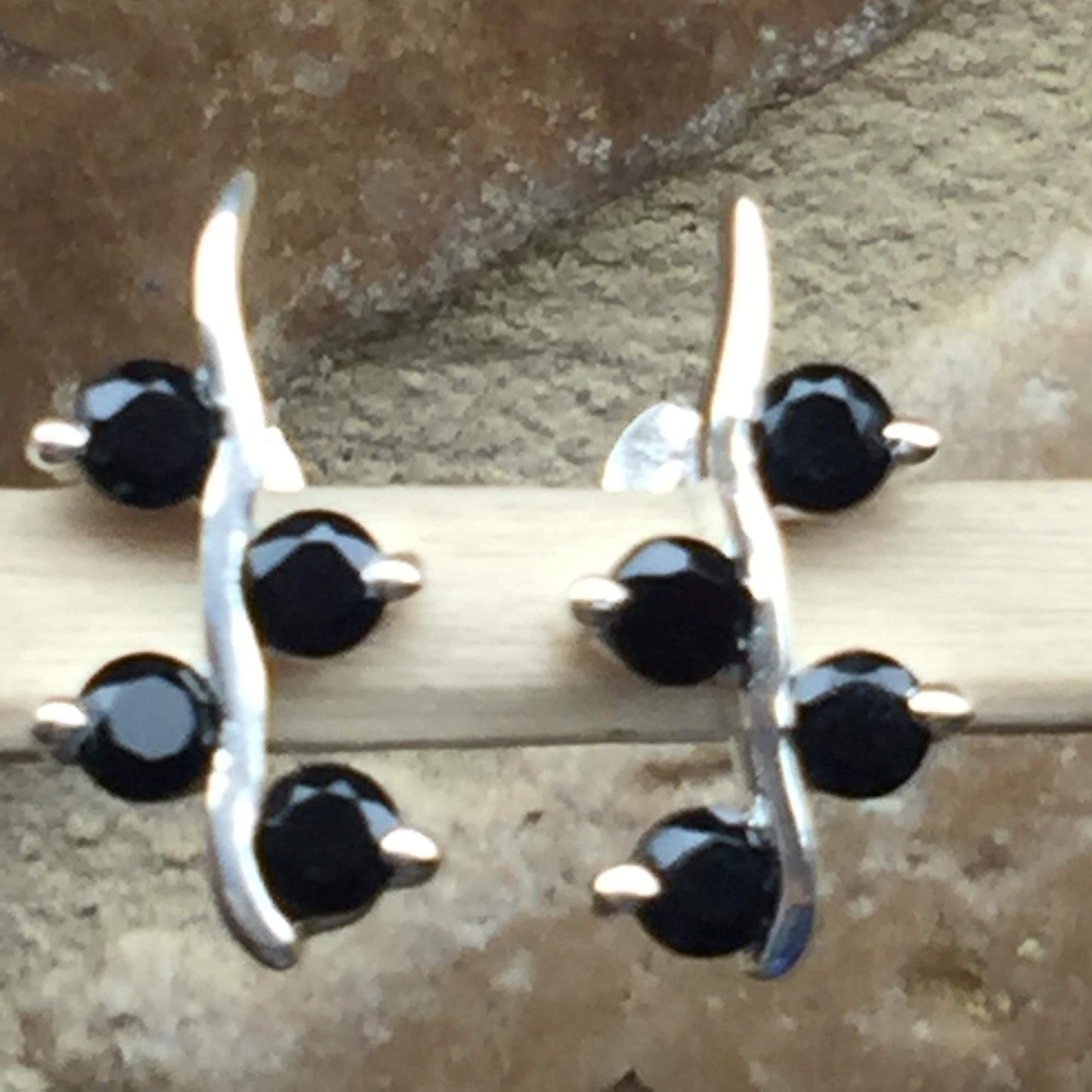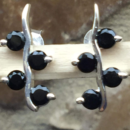 Genuine Black Onyx 925 Solid Sterling Silver Earrings 15mm