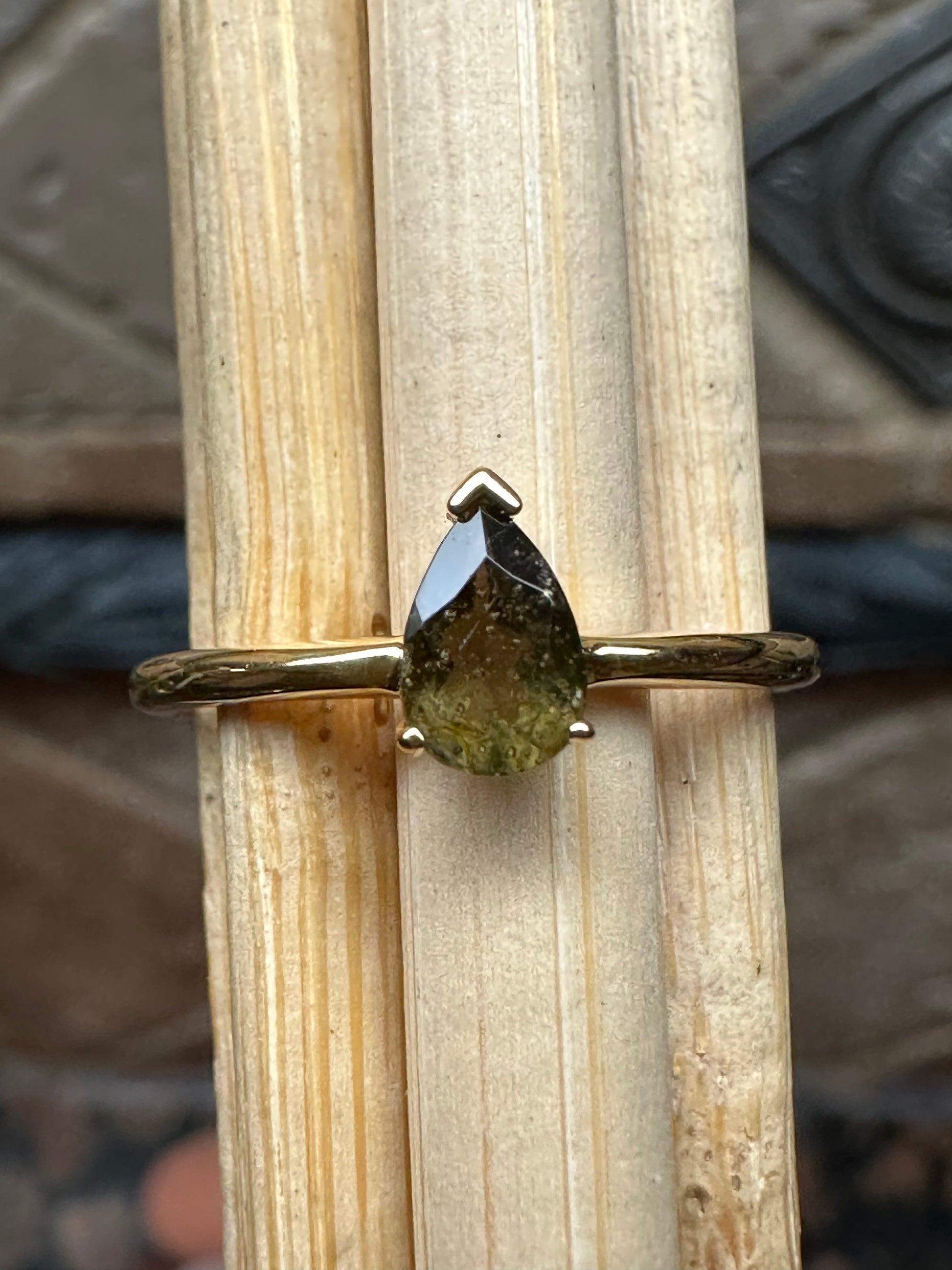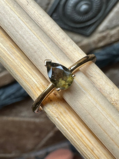 Natural Green Moldavite 925 Solid Sterling Silver Engagement Ring Size 5, 6, 7, 8, 9