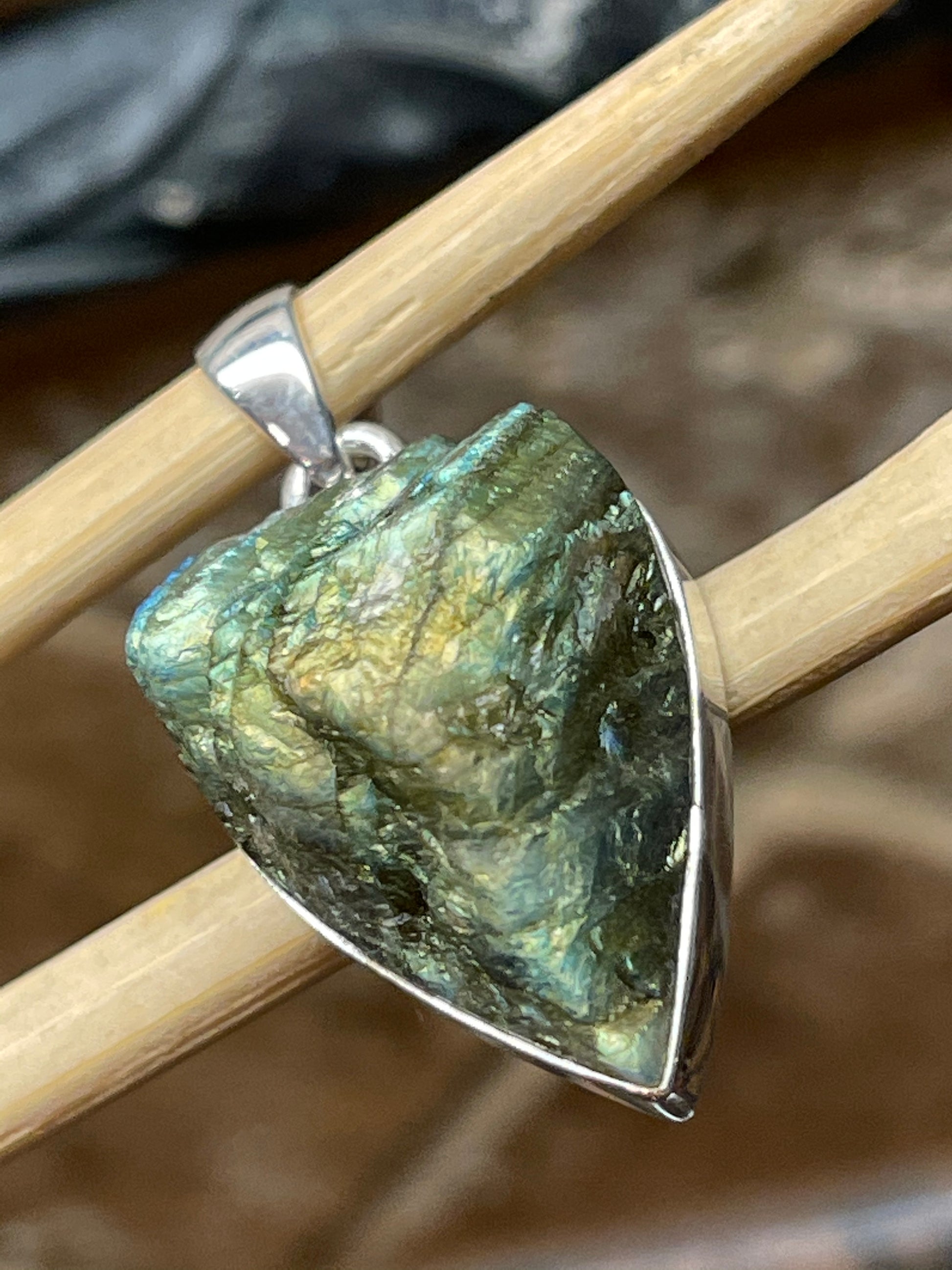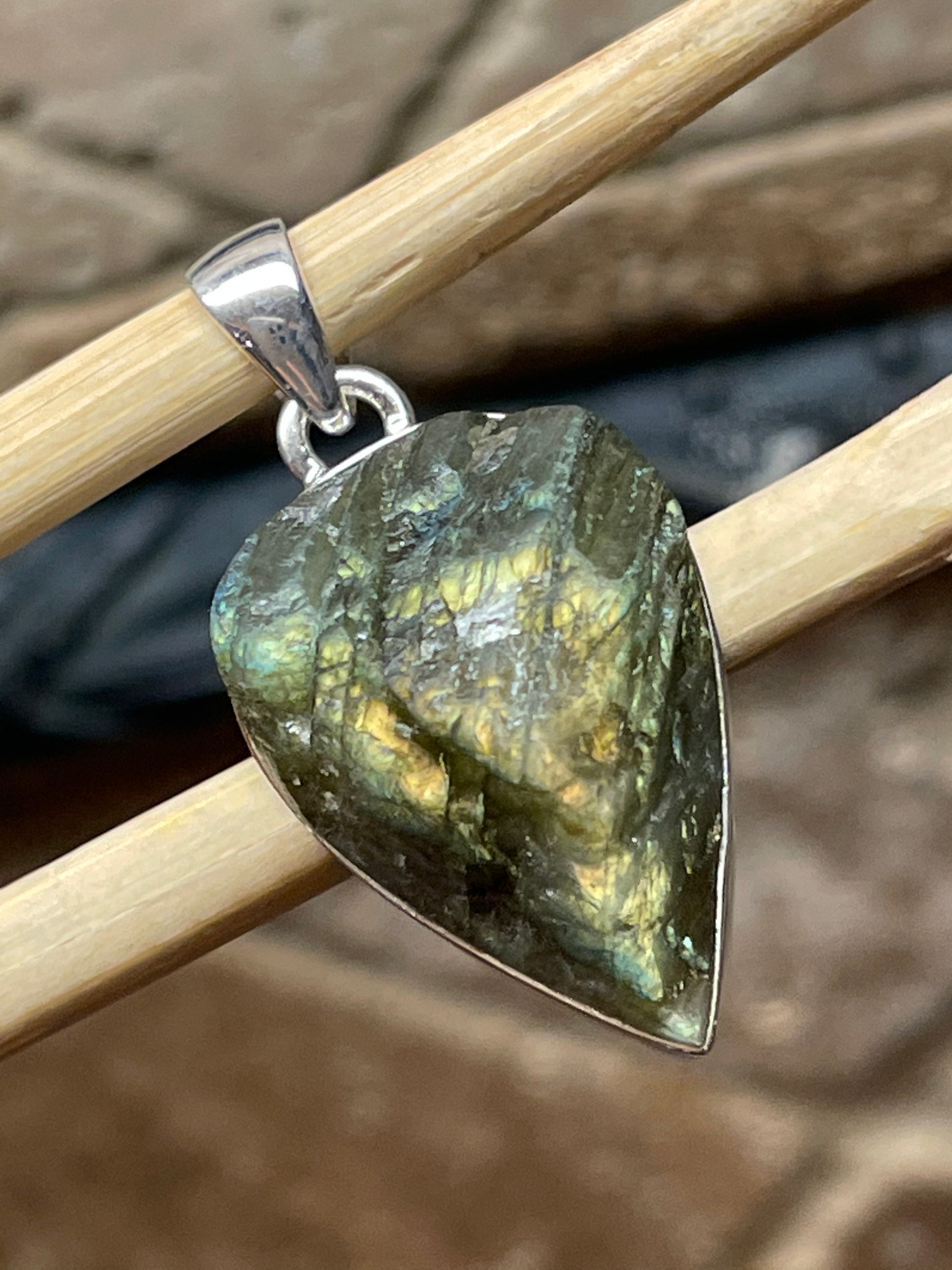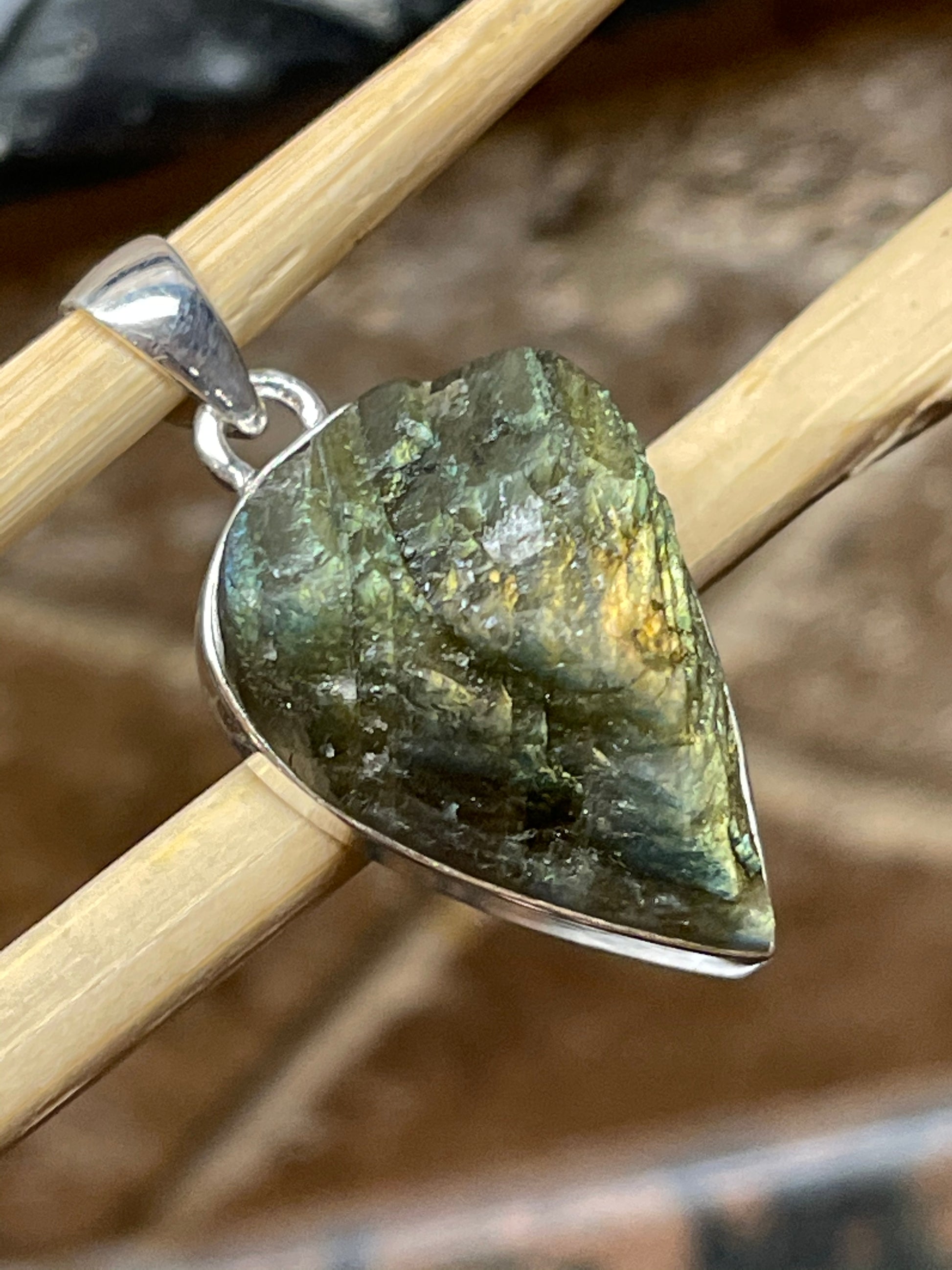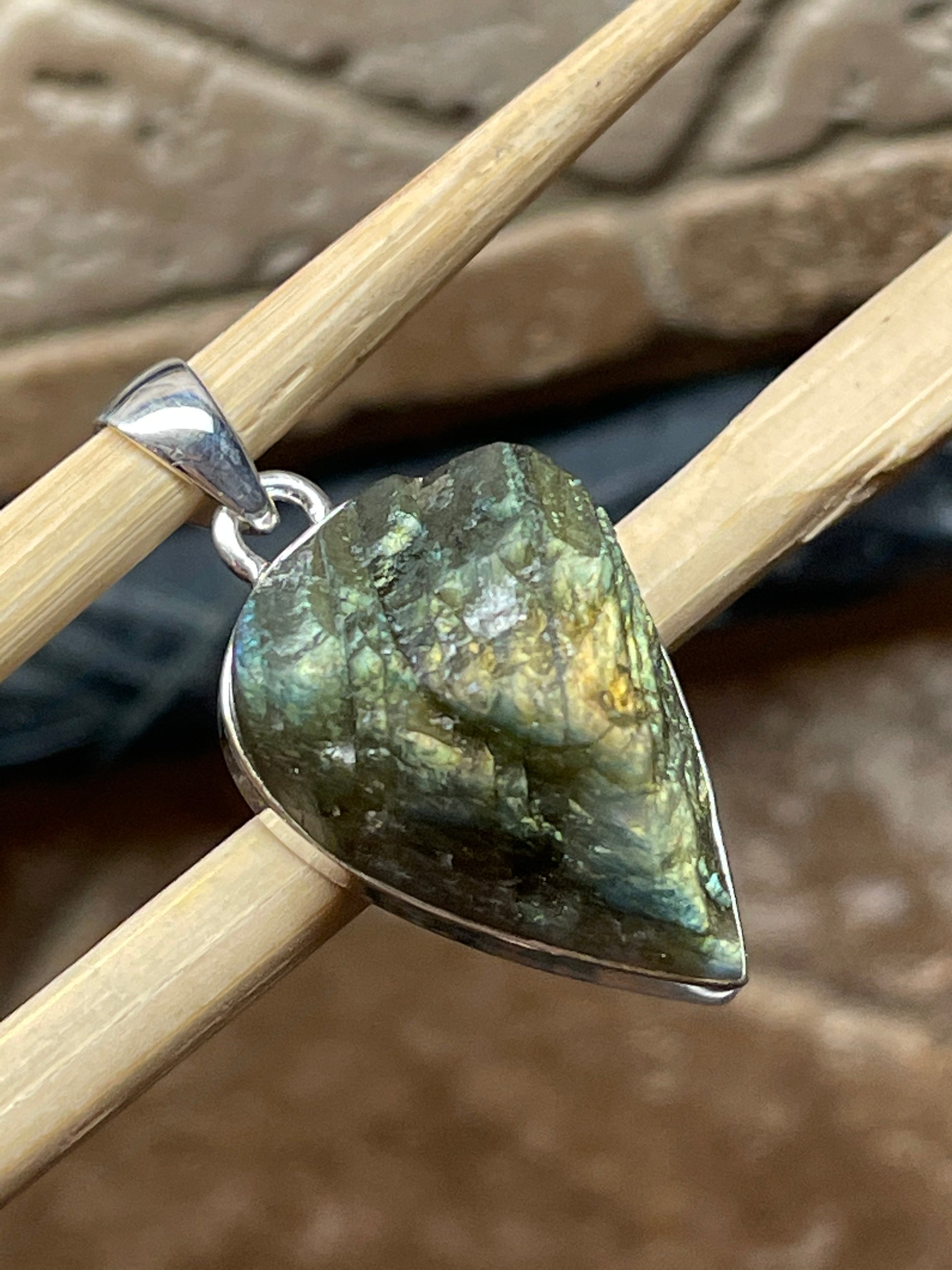 Natural Labradorite 925 Sterling Silver Pendant 40mm