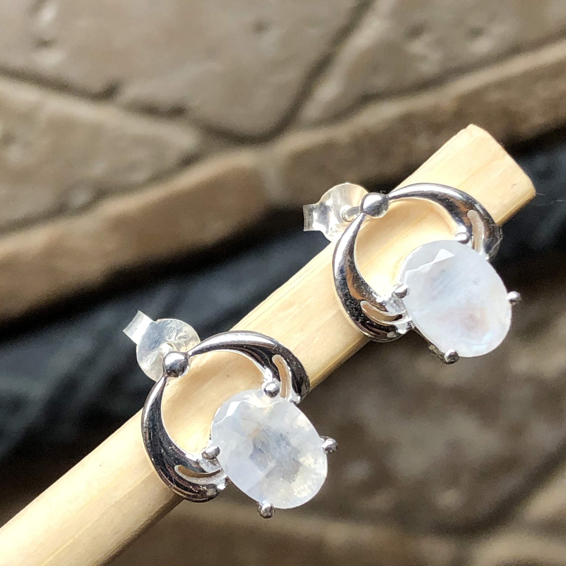 Natural Rainbow Moonstone 925 Sterling Silver Earrings 12mm