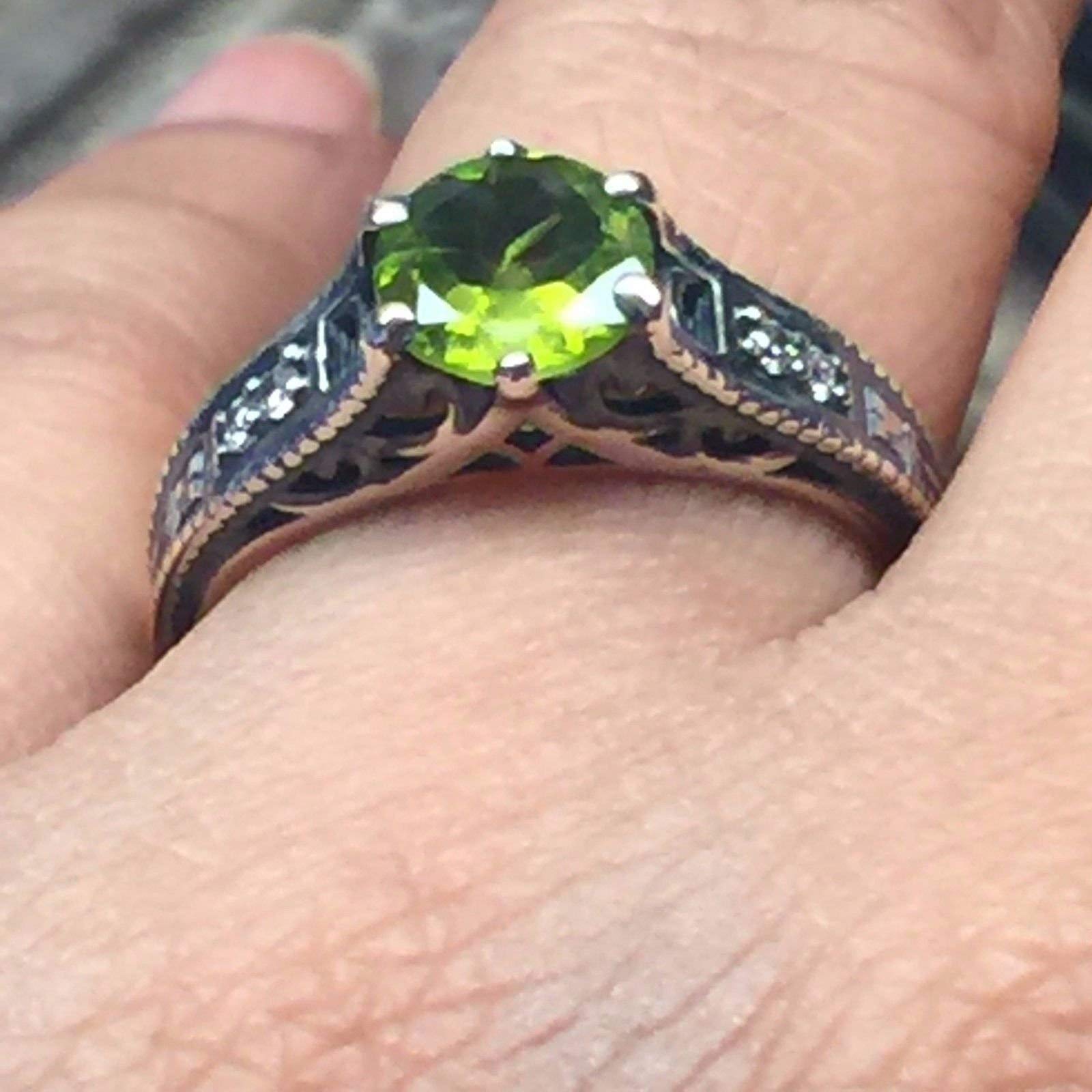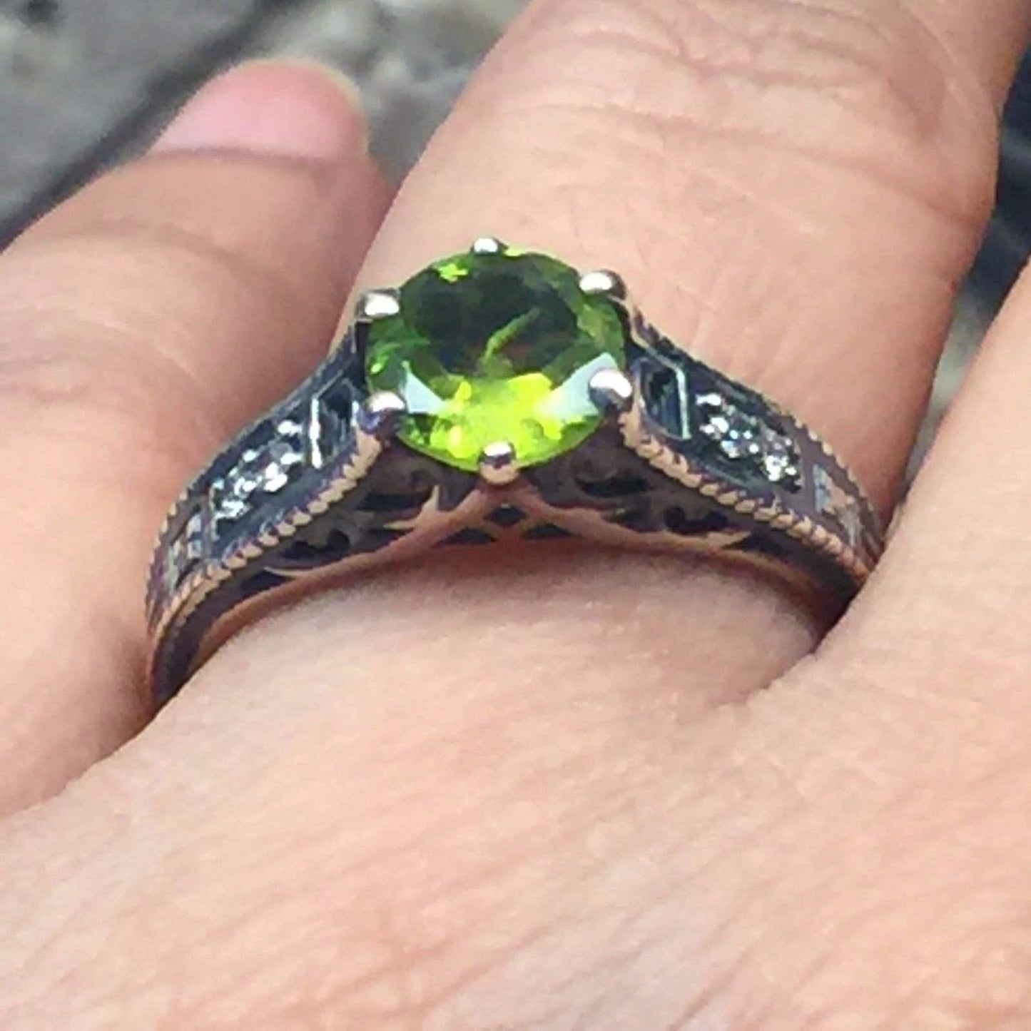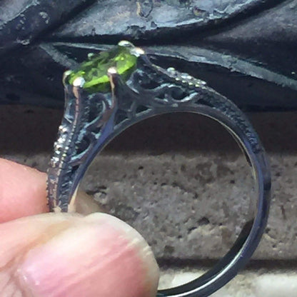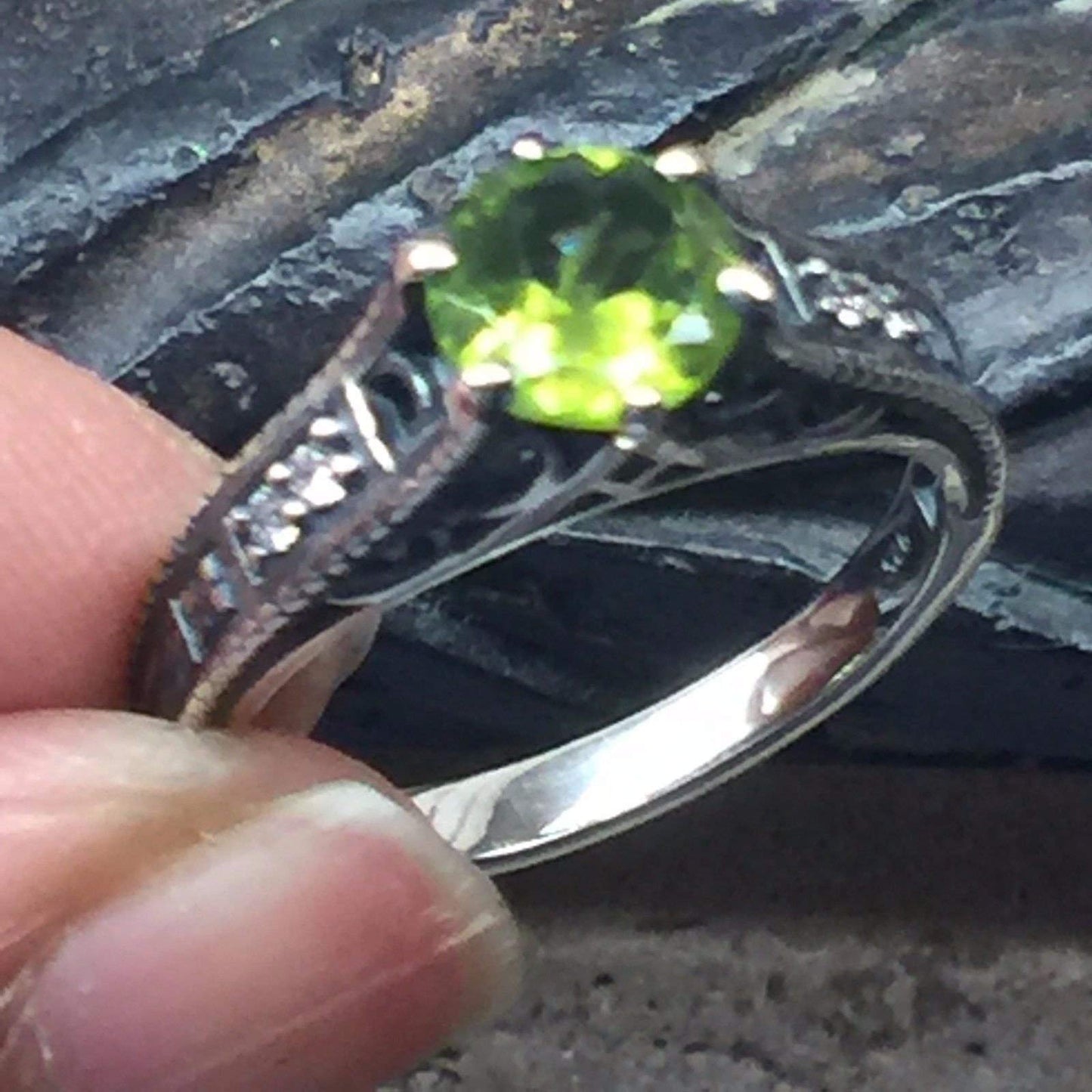 Genuine 1ct Green Peridot 925 Solid Sterling Silver Engagement Ring Size 7, 8