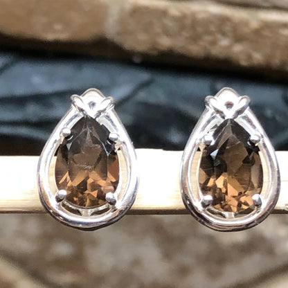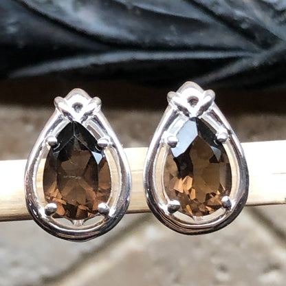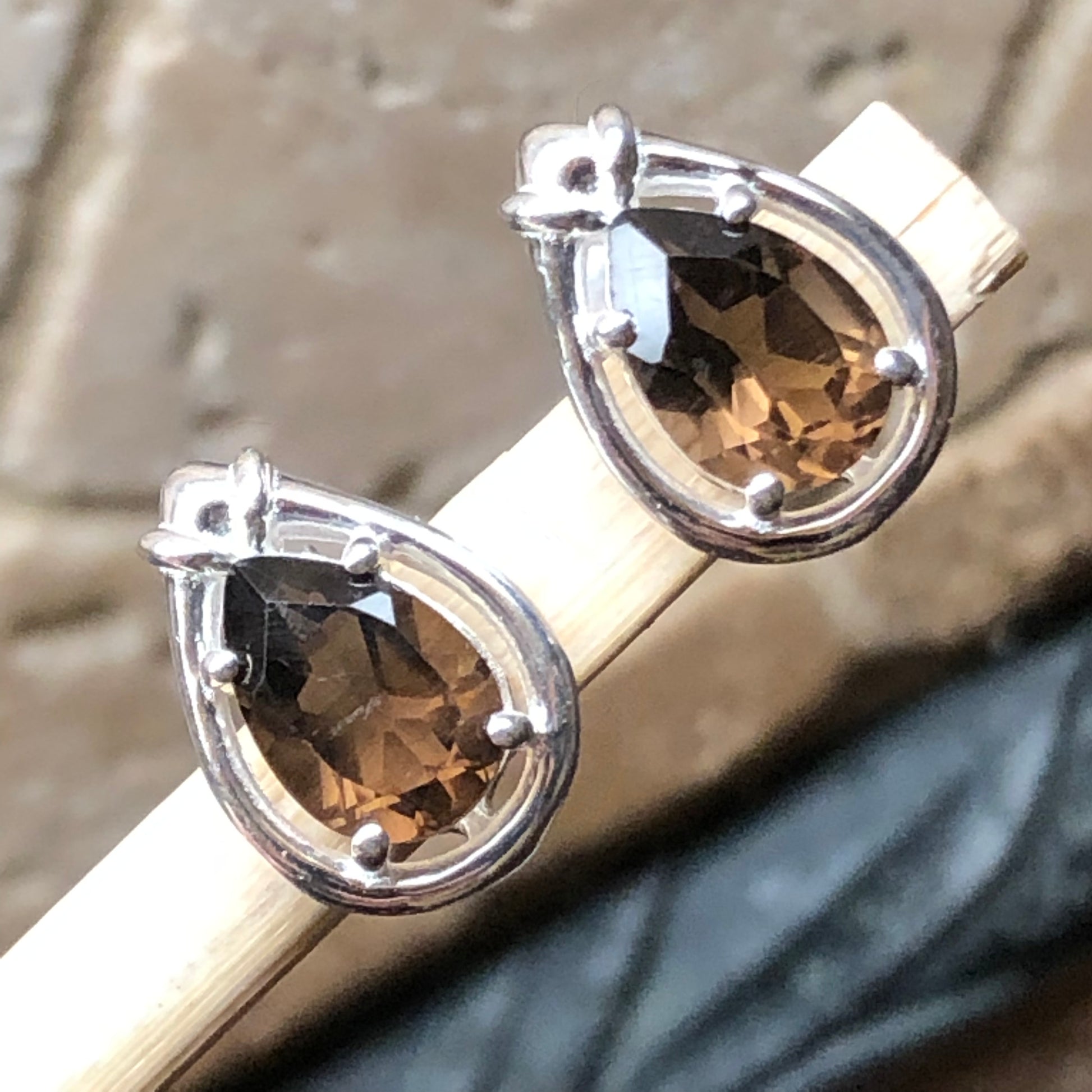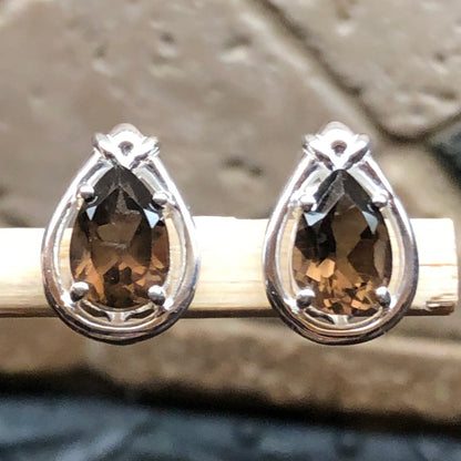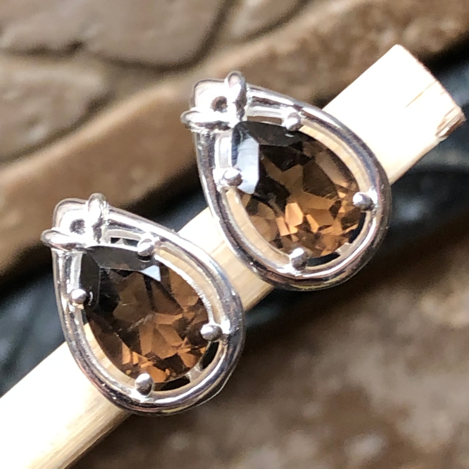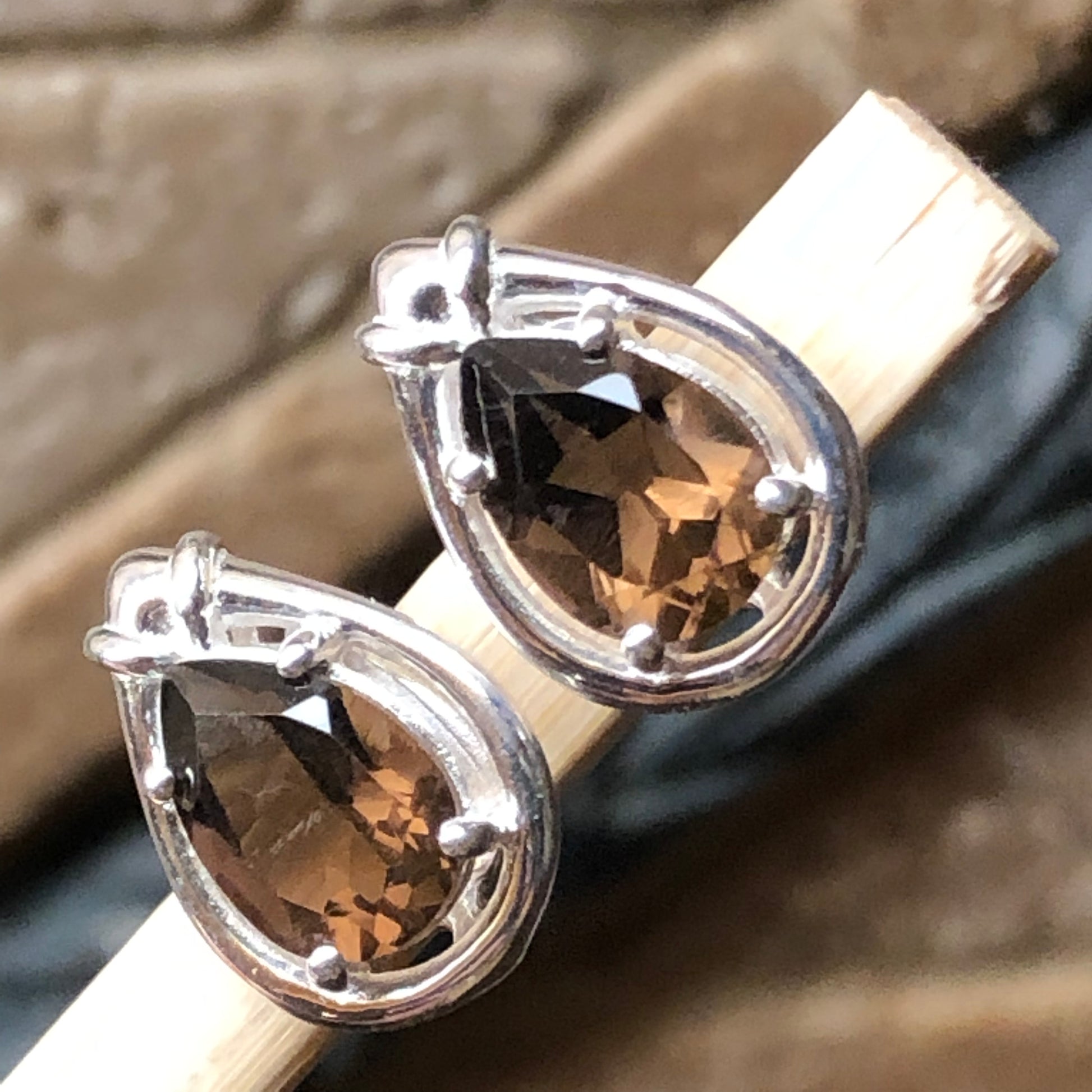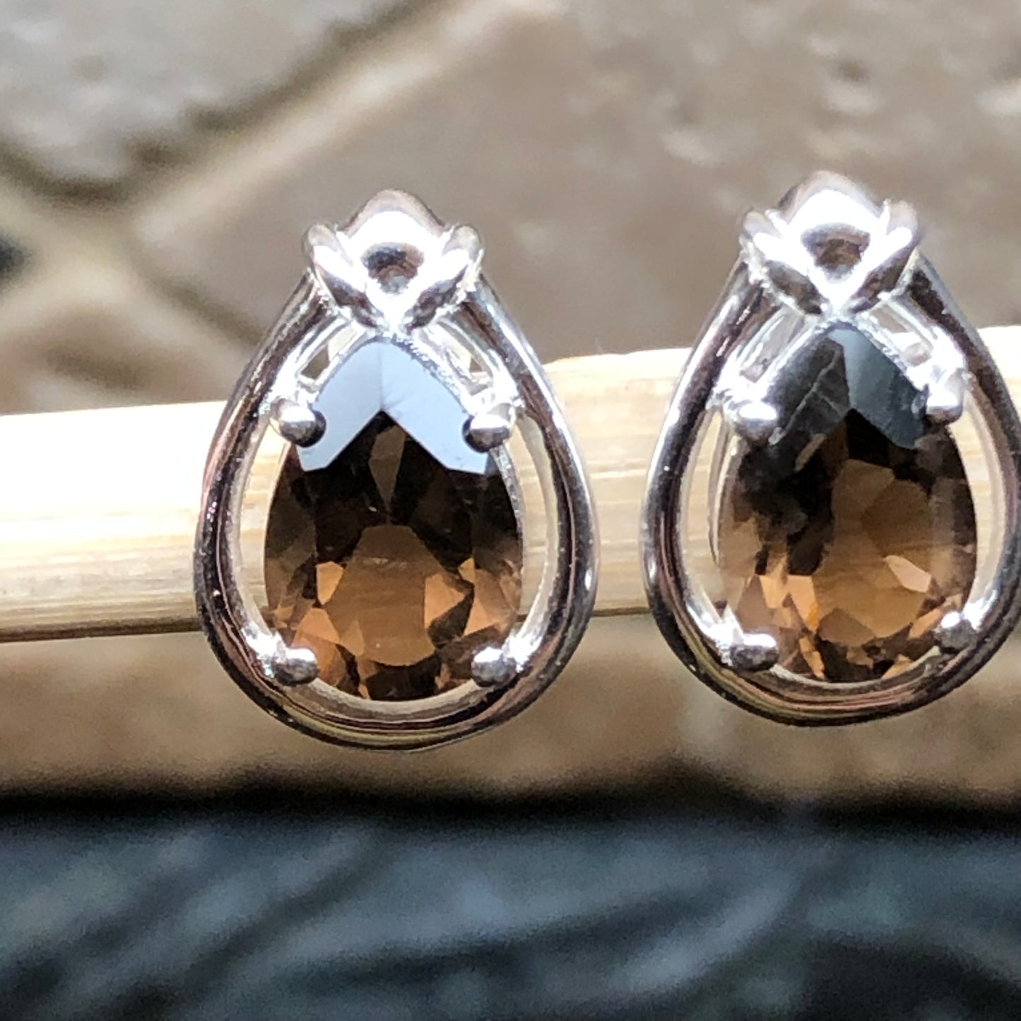 Genuine 2.25ct Smoky Topaz 925 Solid Sterling Silver Earrings 15mm