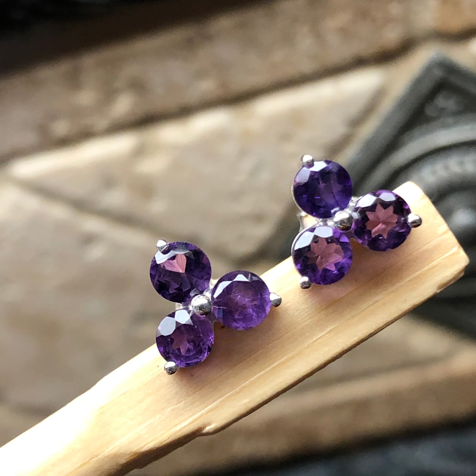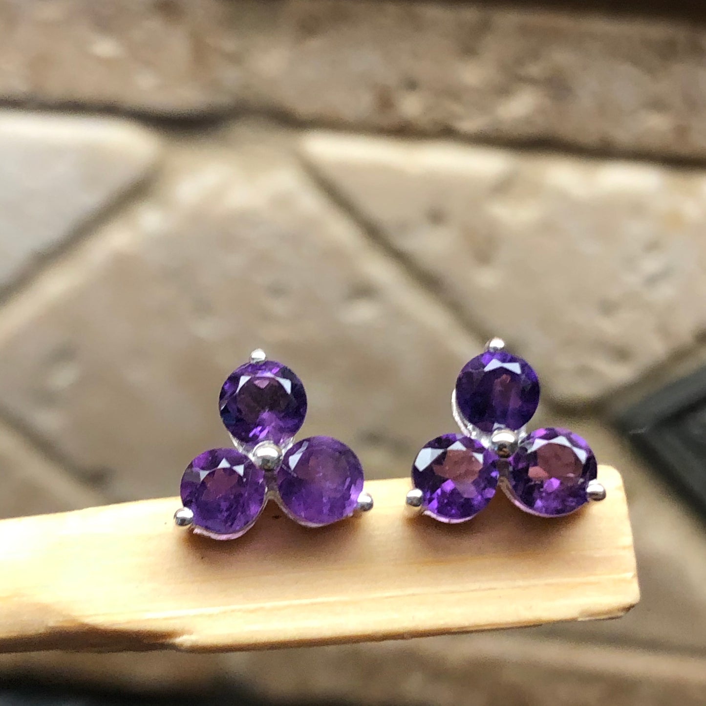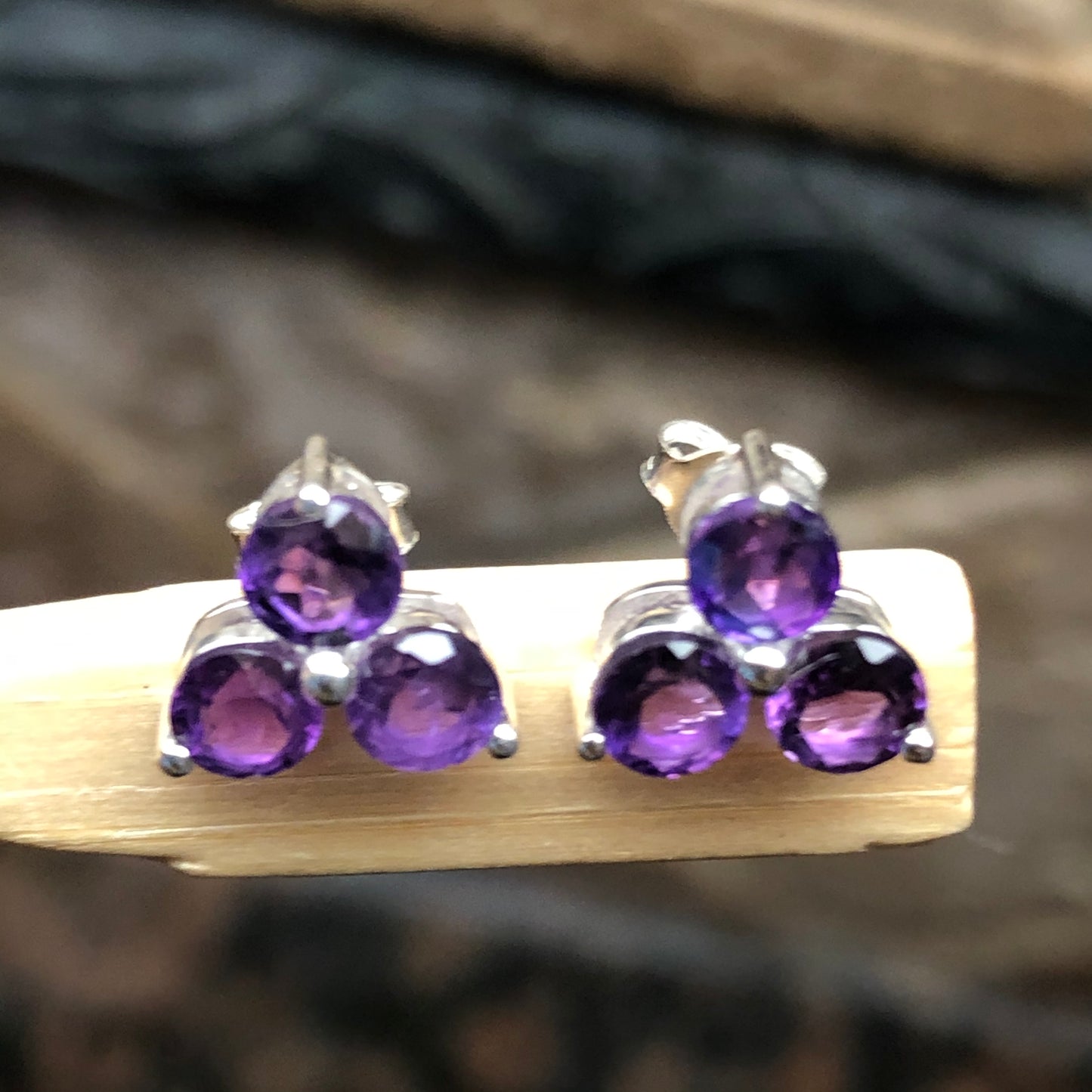 Genuine 2ct Amethyst 925 Solid Sterling Silver Stud Earrings 7mm