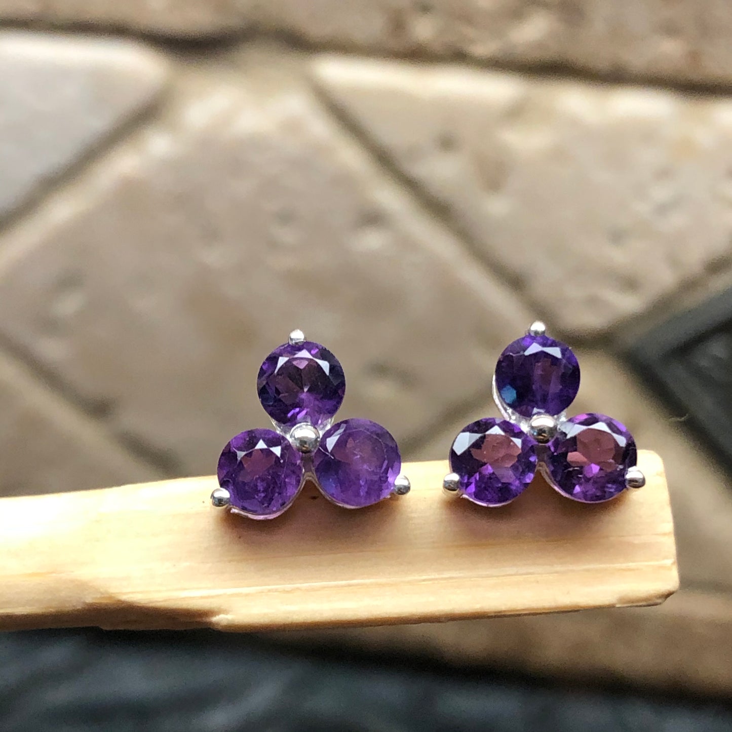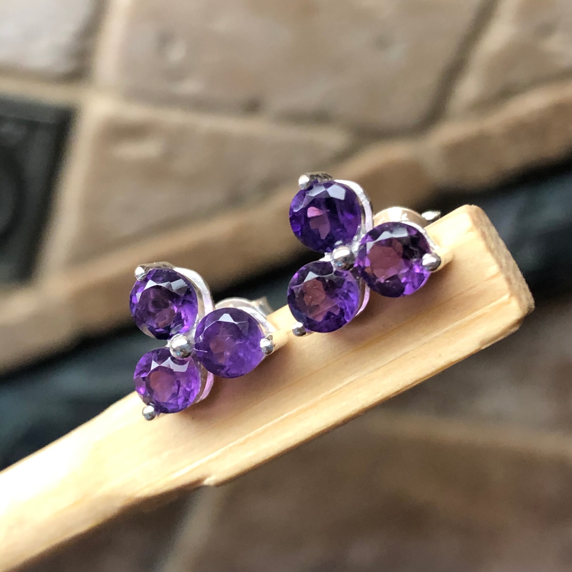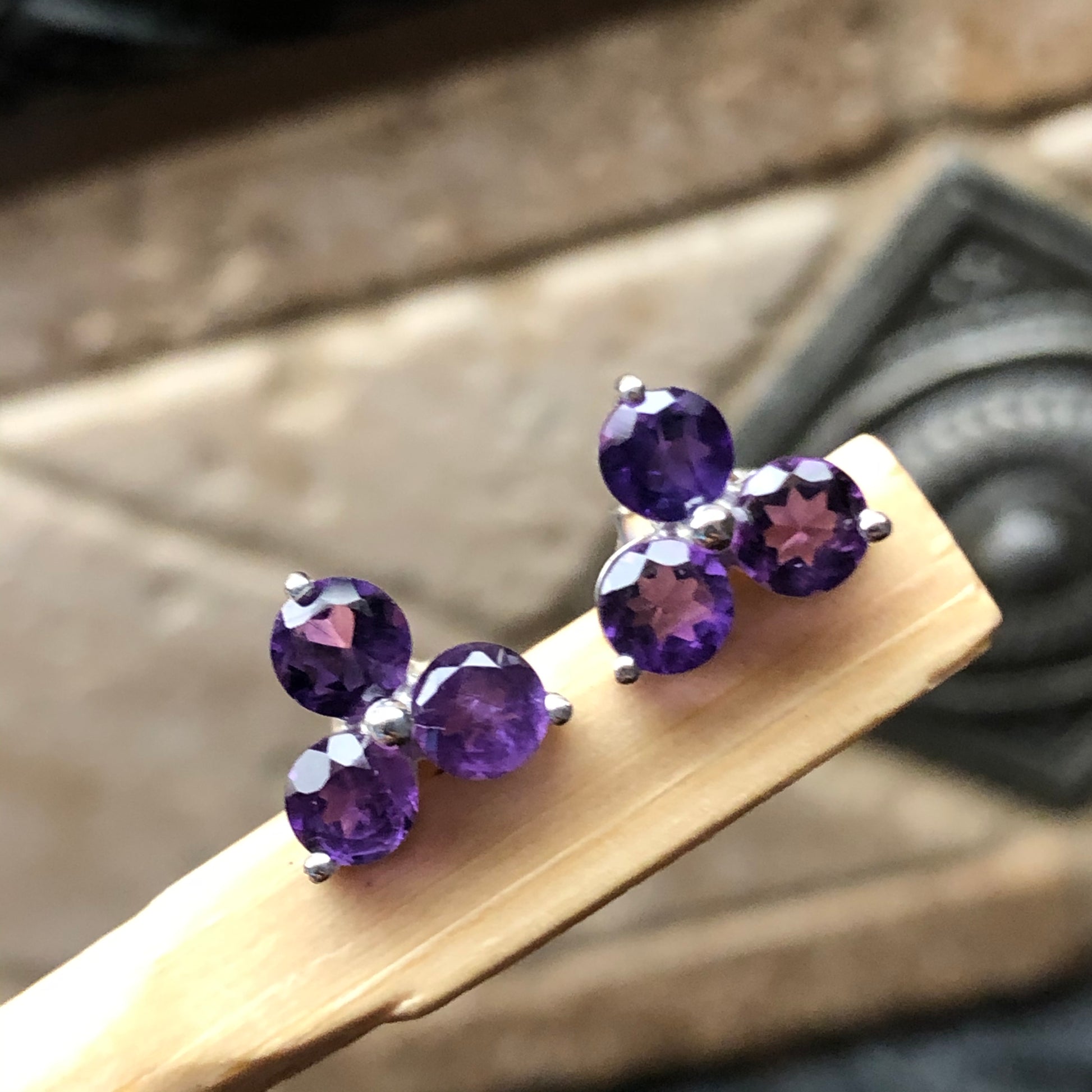 Genuine 2ct Amethyst 925 Solid Sterling Silver Stud Earrings 7mm