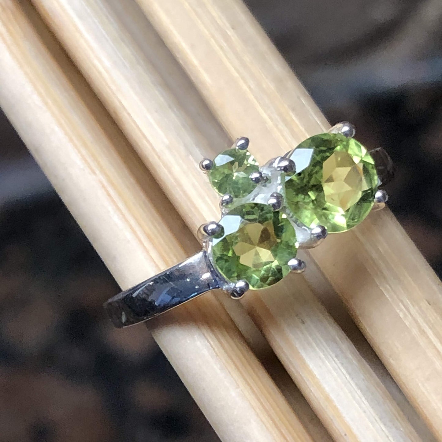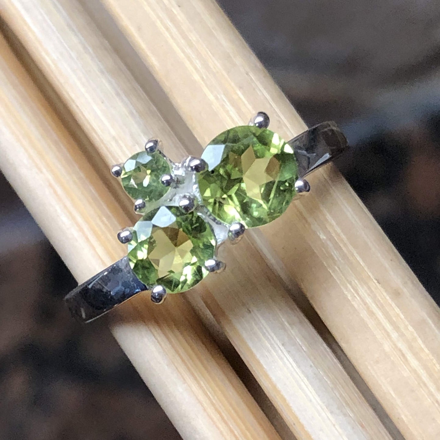 Genuine 2ct Green Peridot 925 Solid Sterling Silver Stackable Ring Size 6, 7, 8, 9