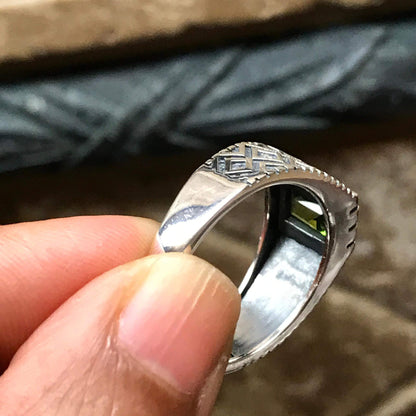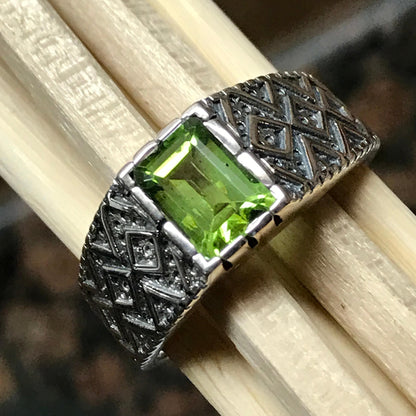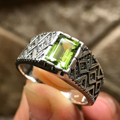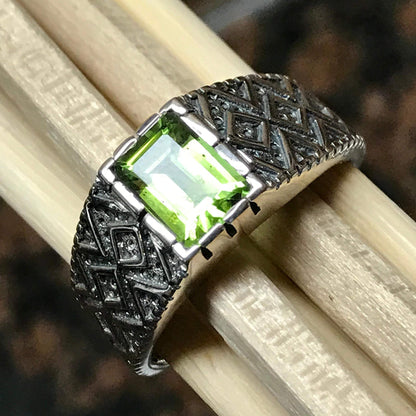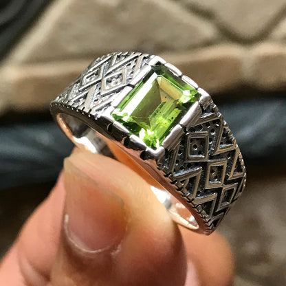 Genuine 2ct Green Peridot 925 Sterling Silver Men's Ring Size 7, 8, 9, 10, 11, 12, 13