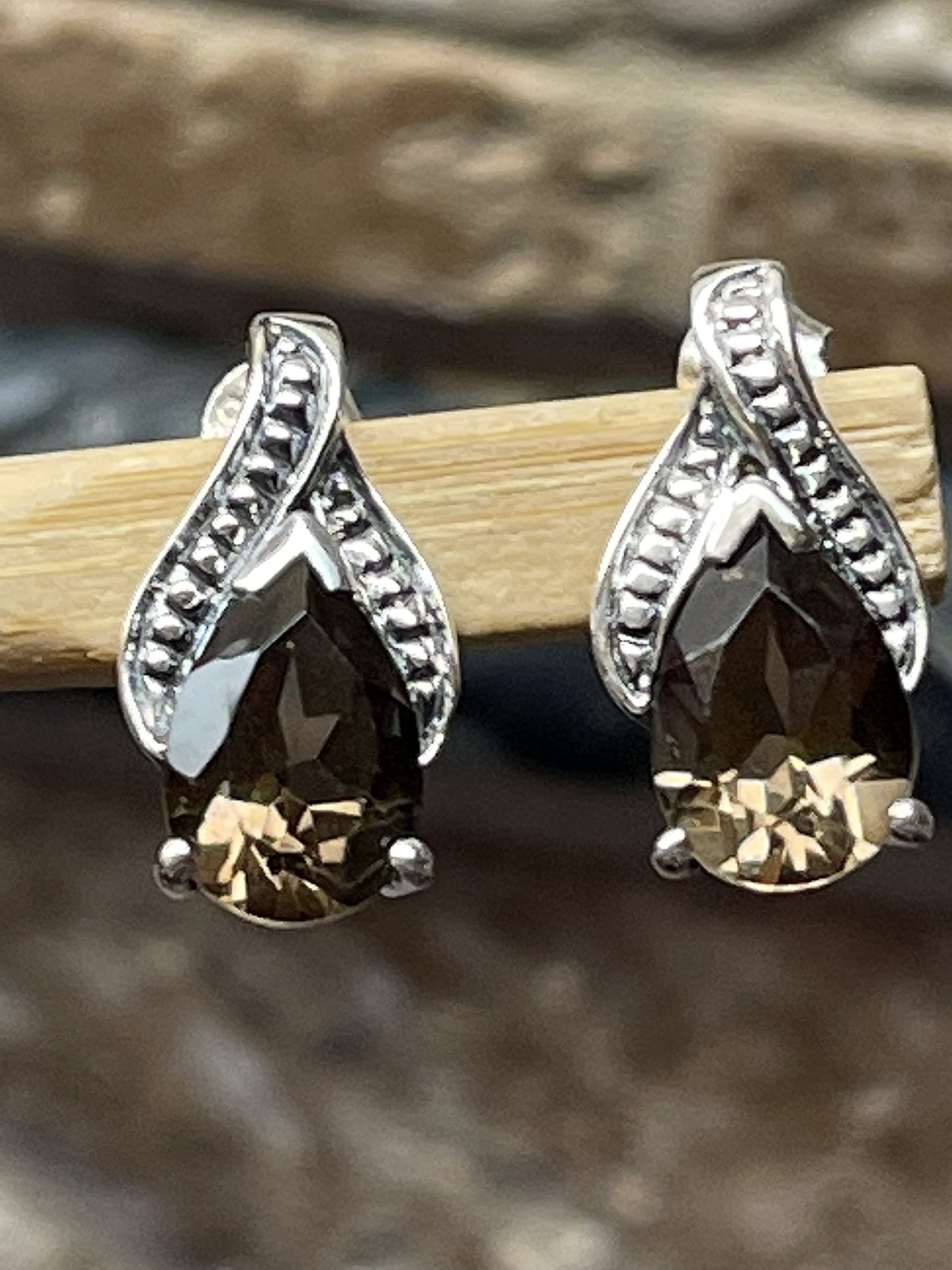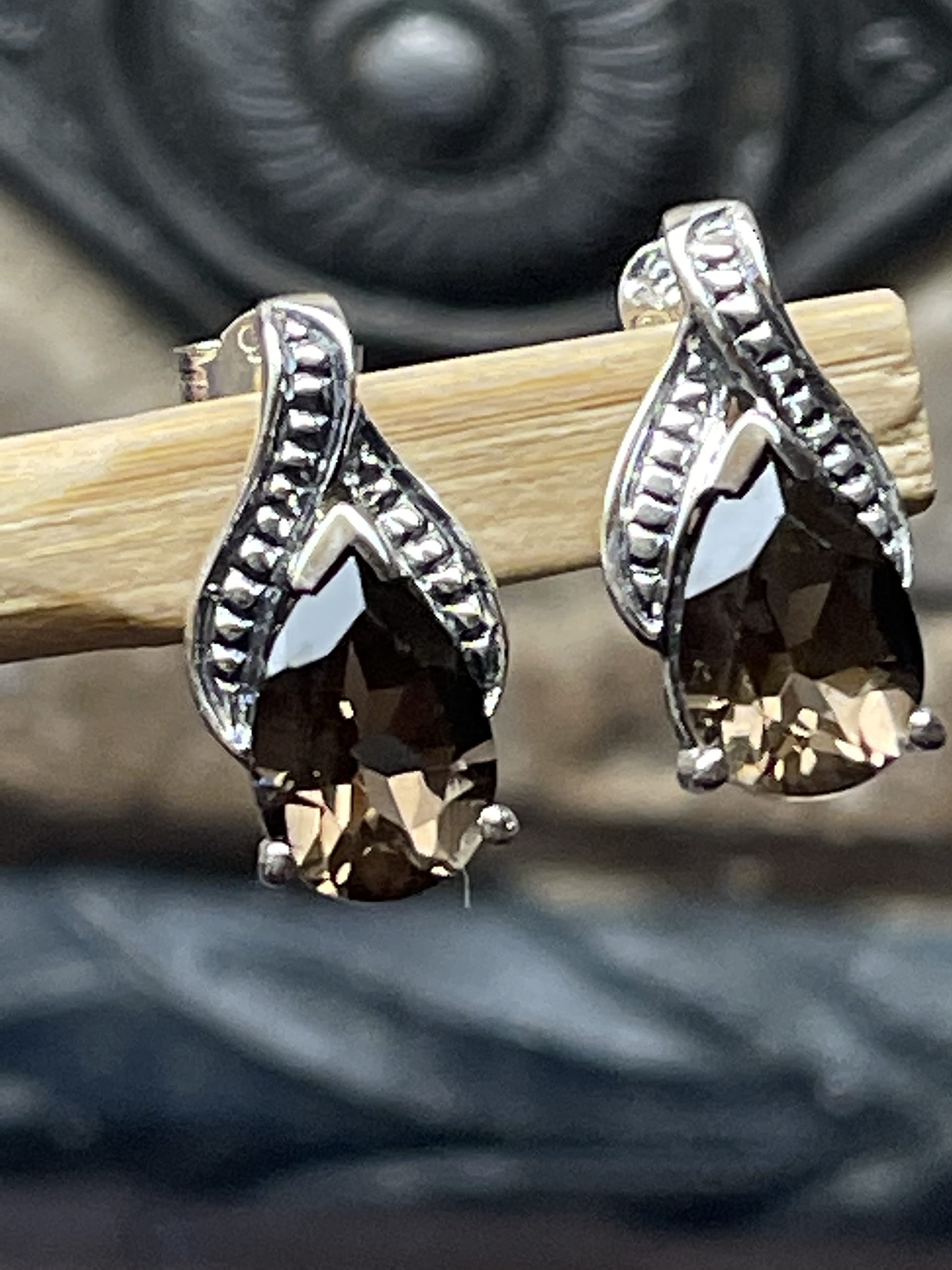 Genuine 2ct Smoky Topaz 925 Solid Sterling Silver Earrings 15mm