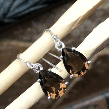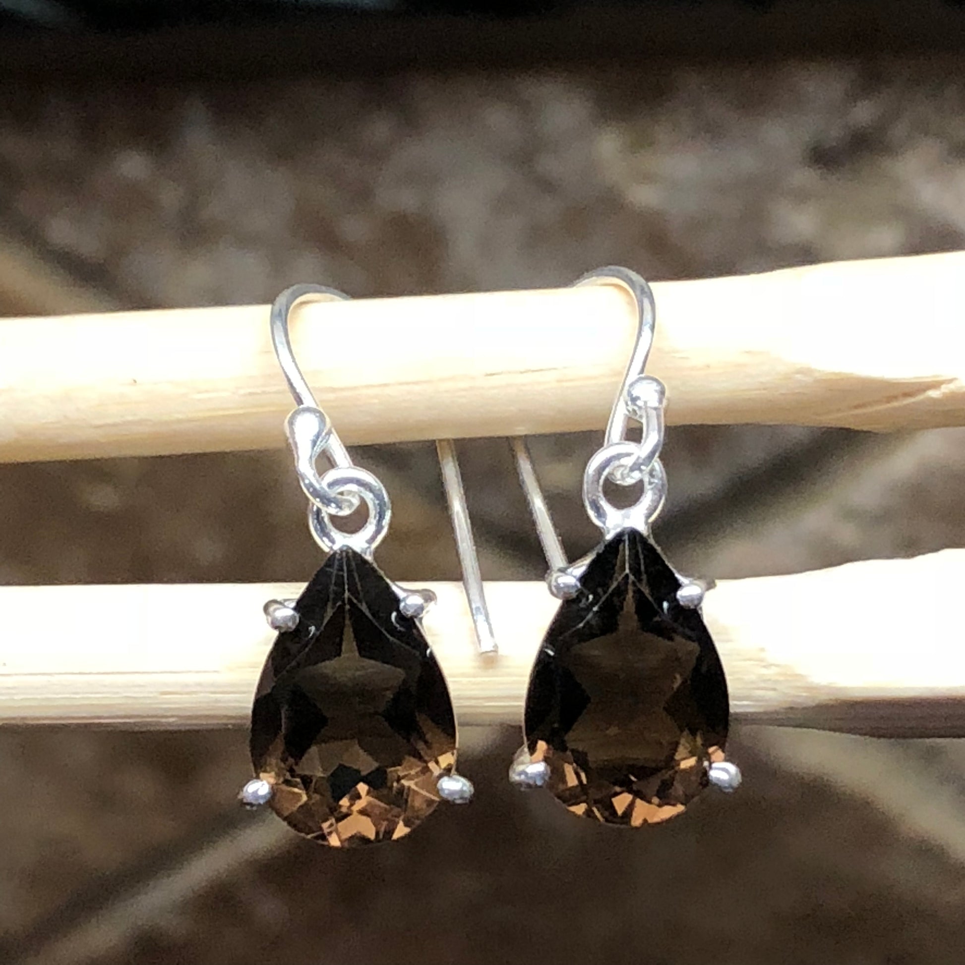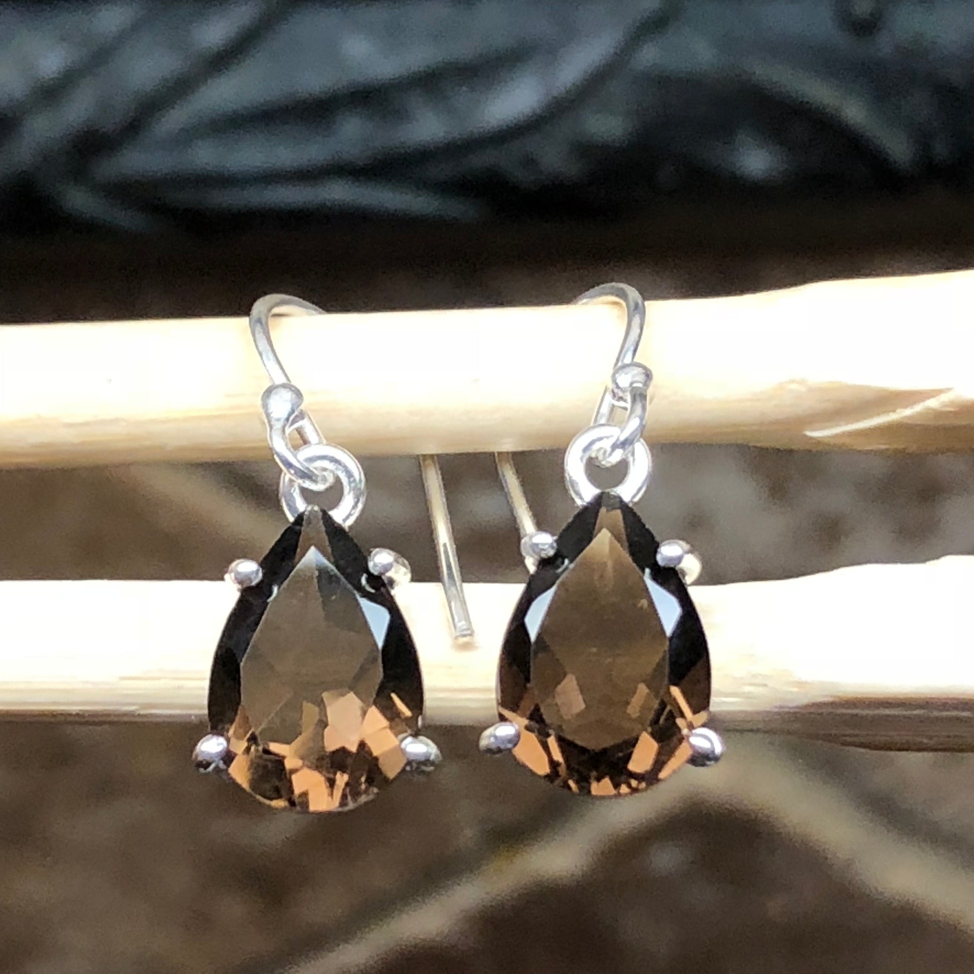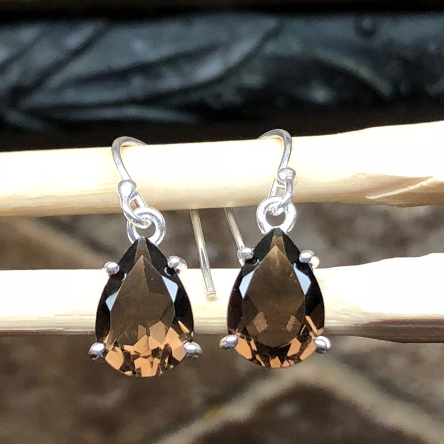Genuine 2ct Smoky Topaz 925 Solid Sterling Silver Earrings 22mm