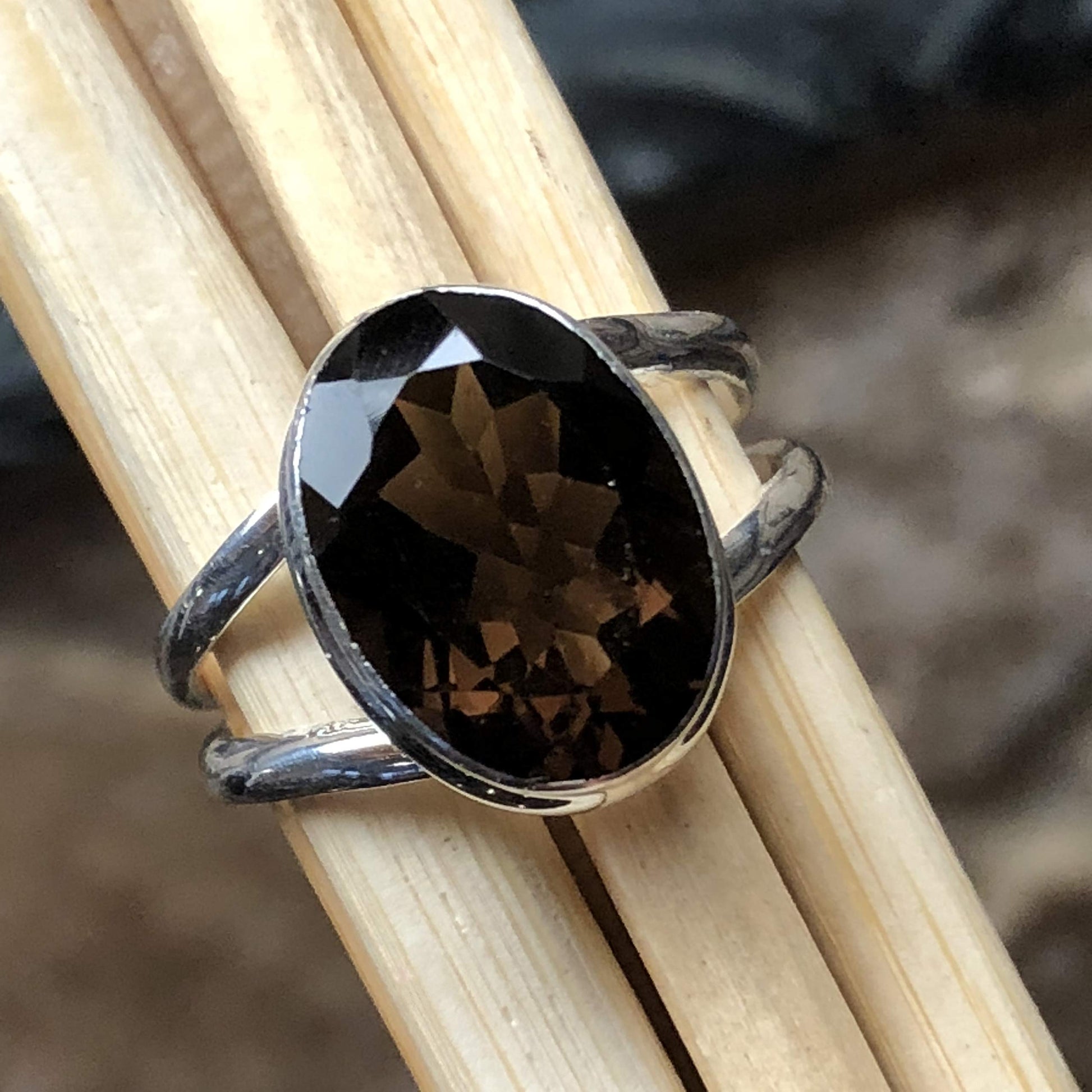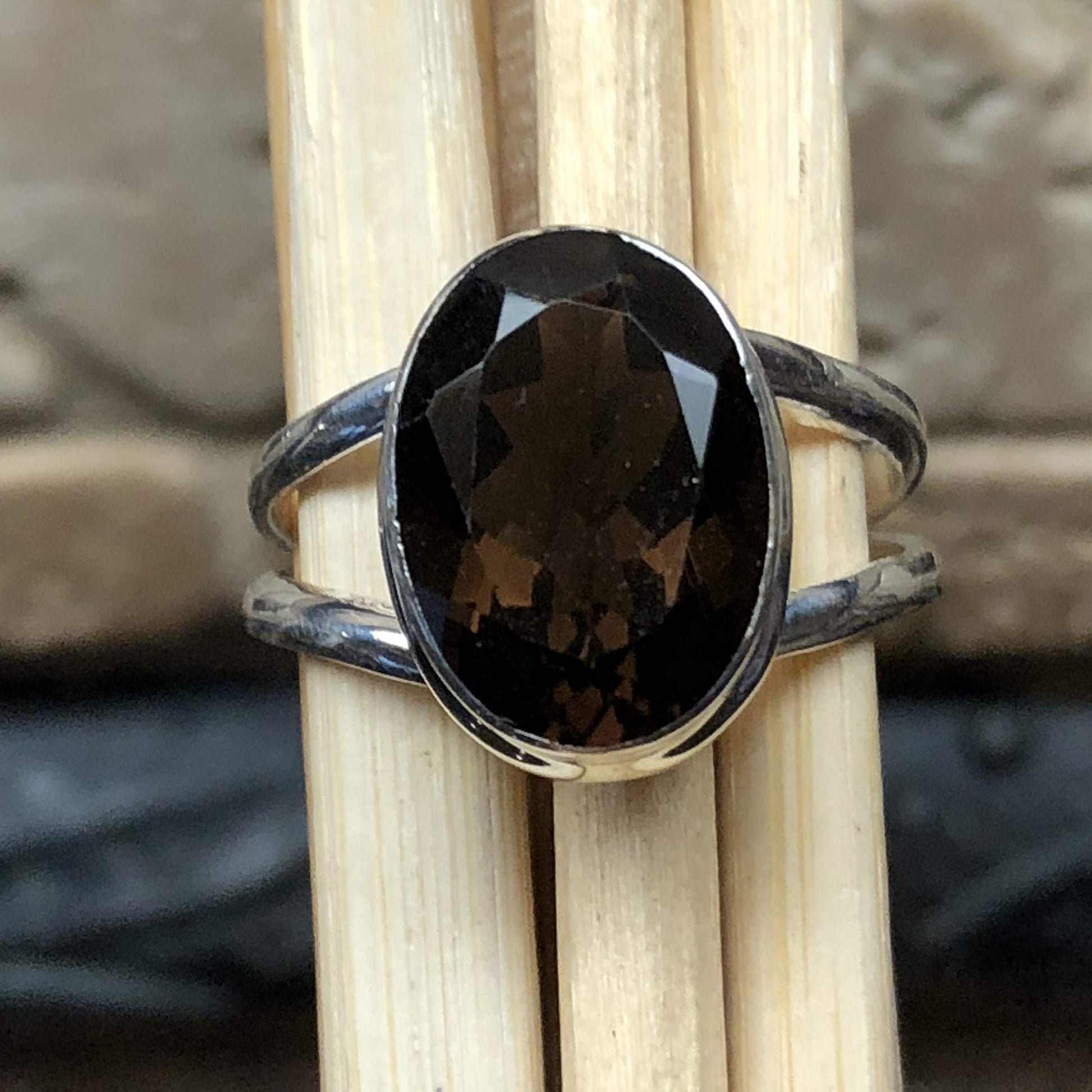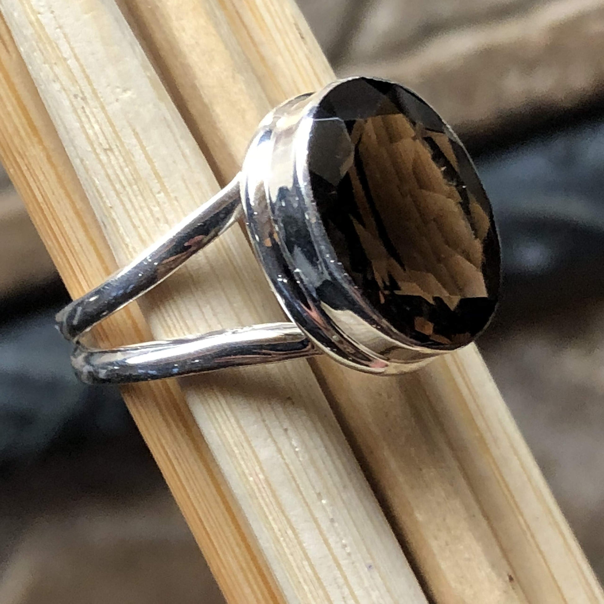 Genuine 6ct Smoky Topaz 925 Solid Sterling Silver Ring Size 7, 9