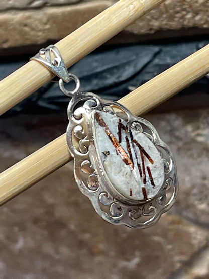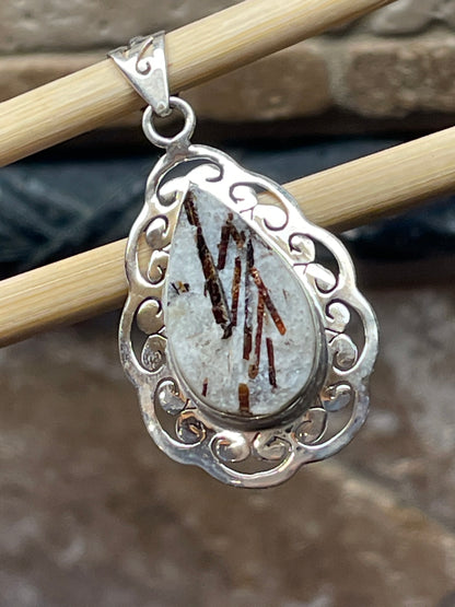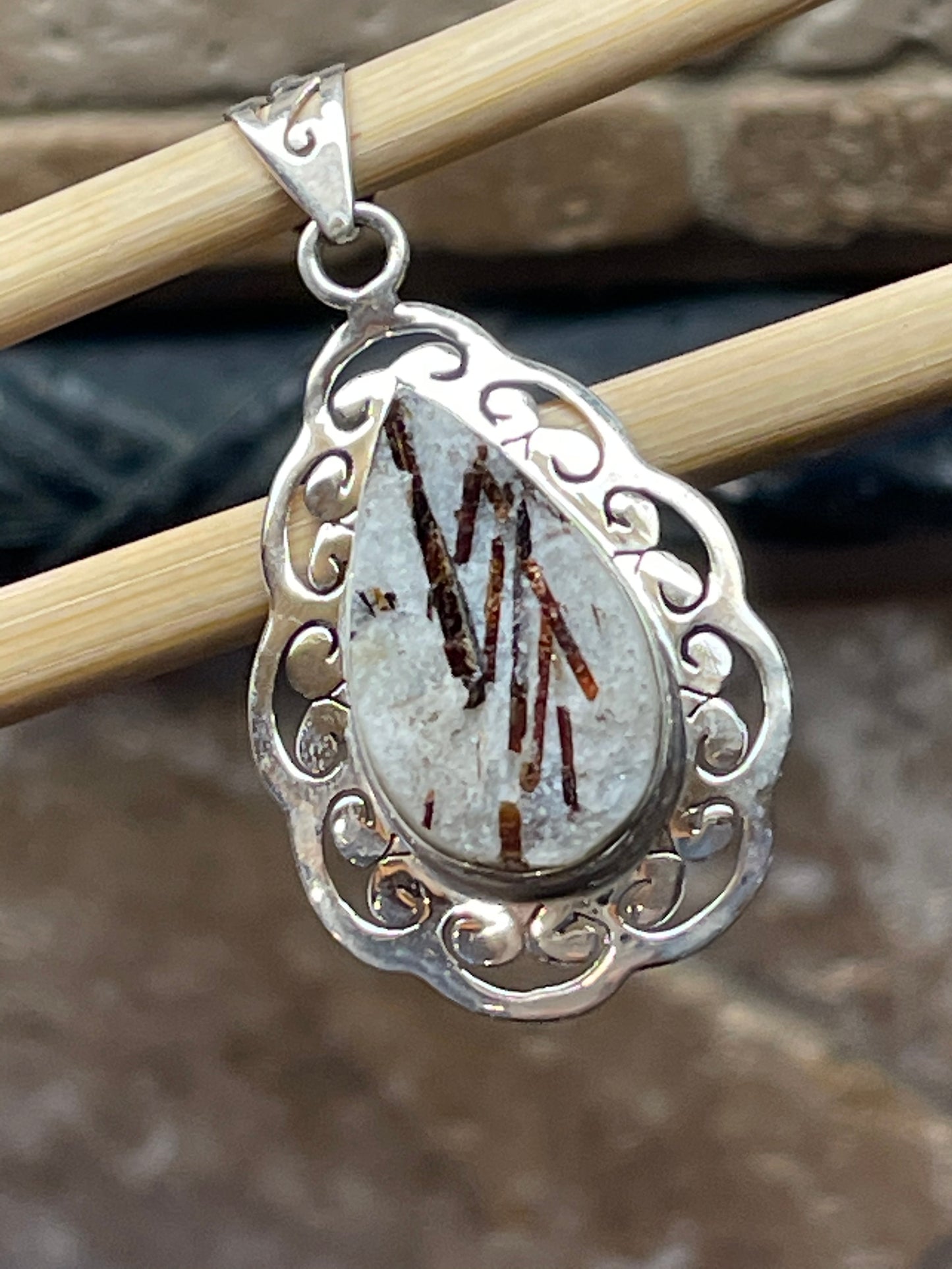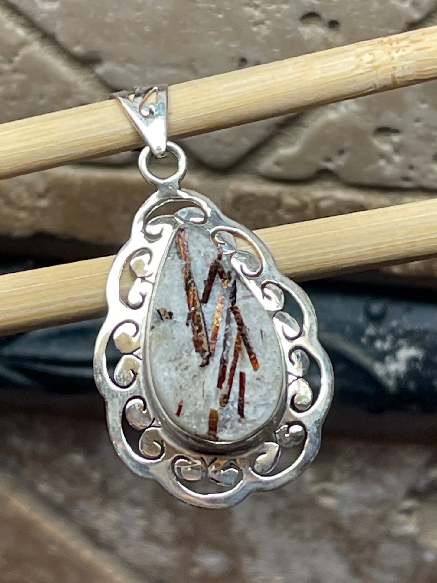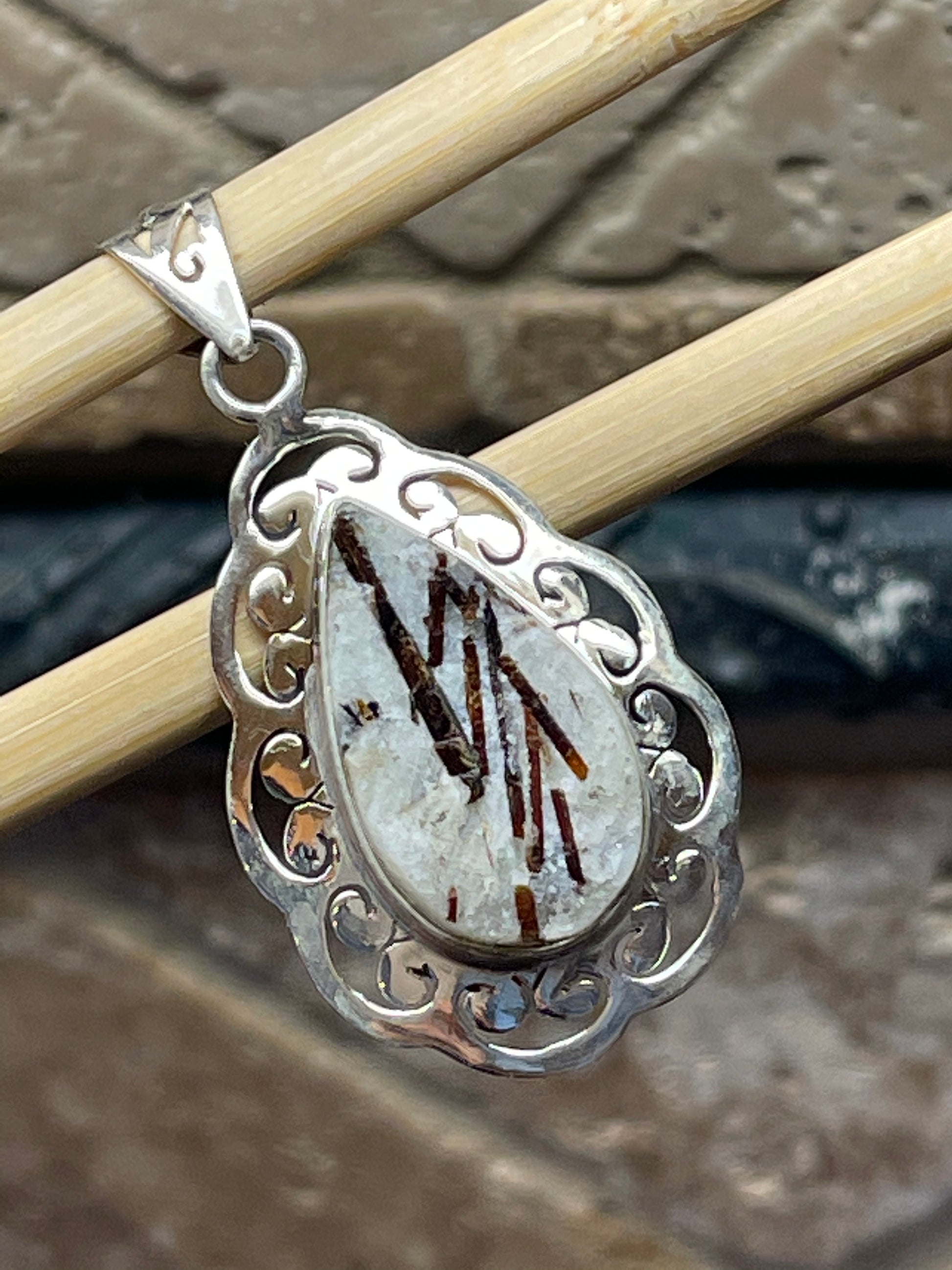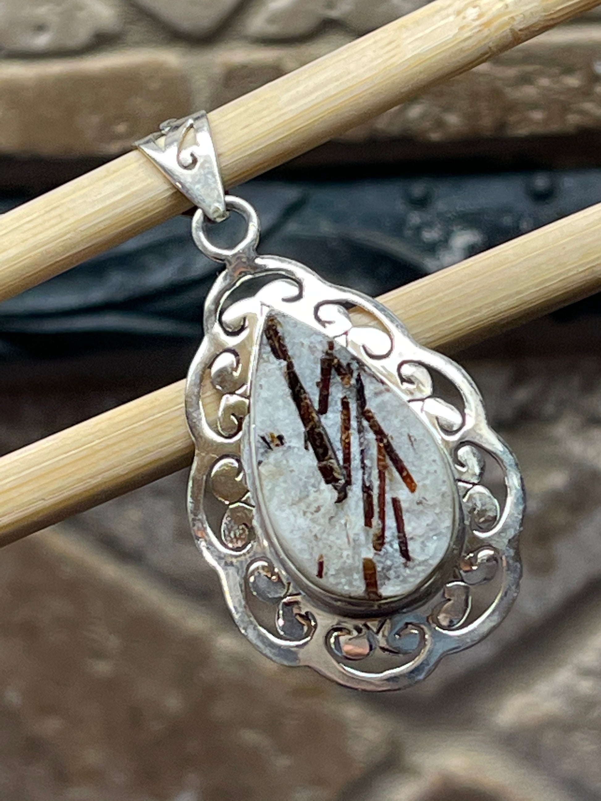 Genuine Astrophyllite 925 Solid Sterling Silver Pendant 45mm