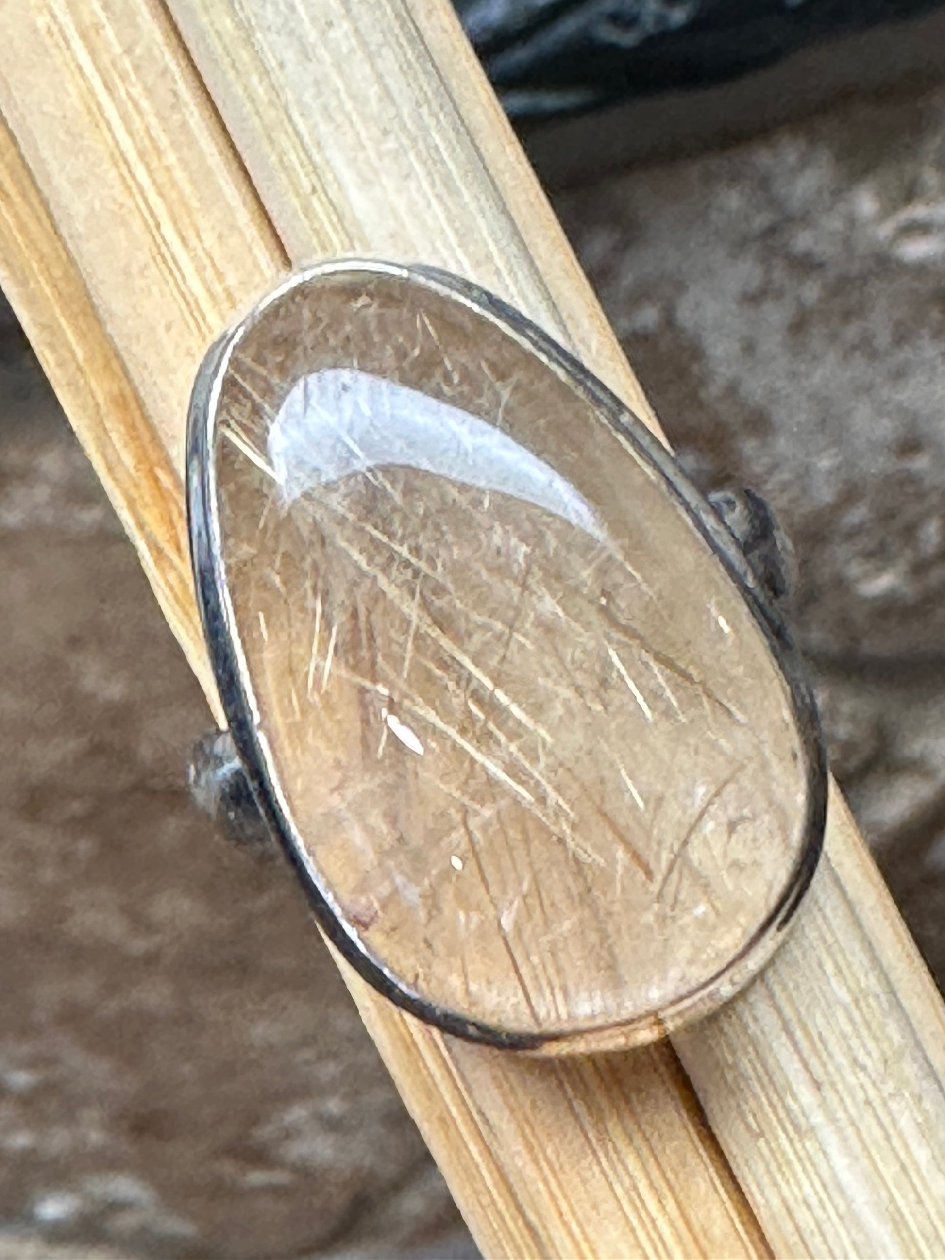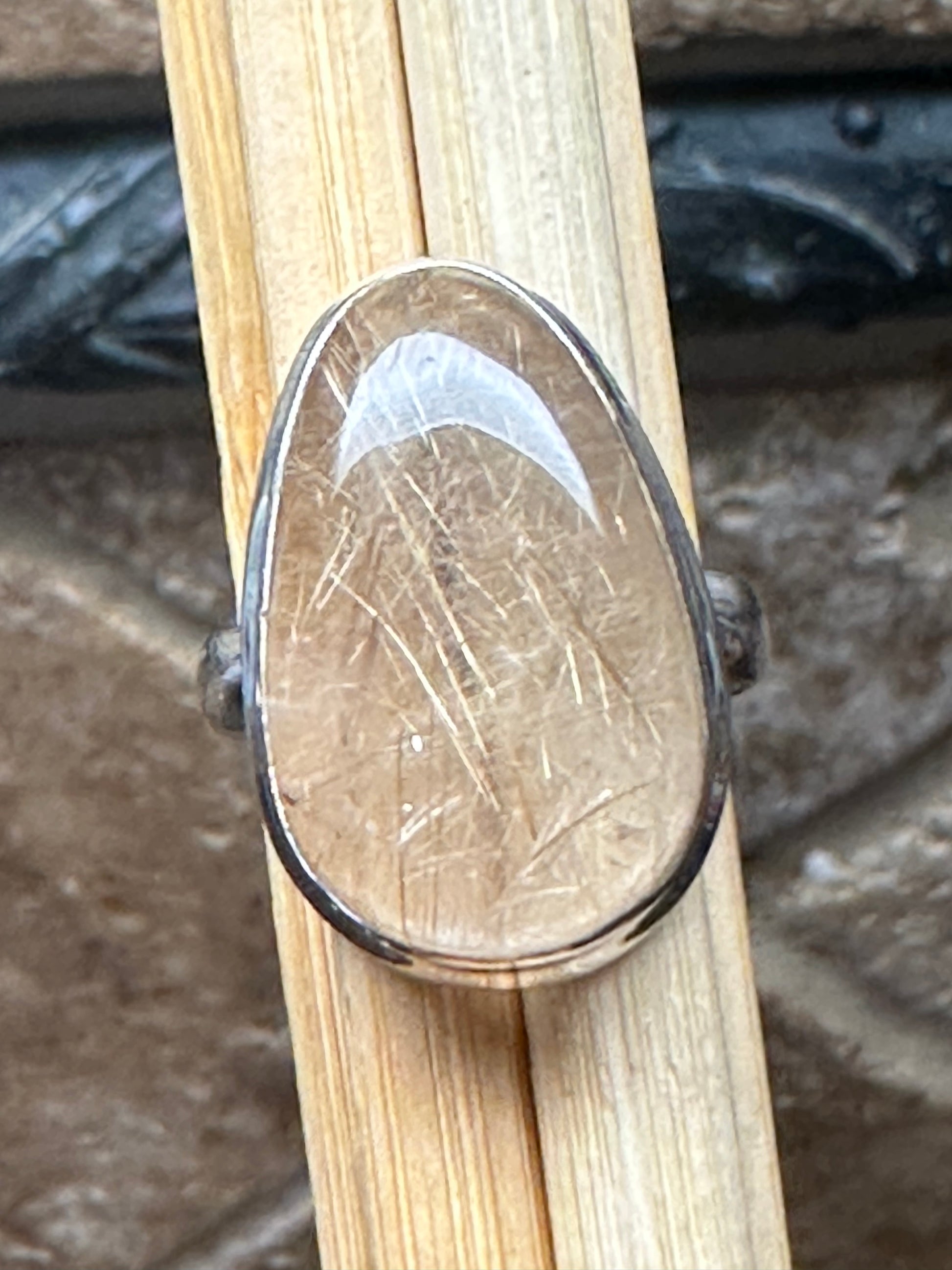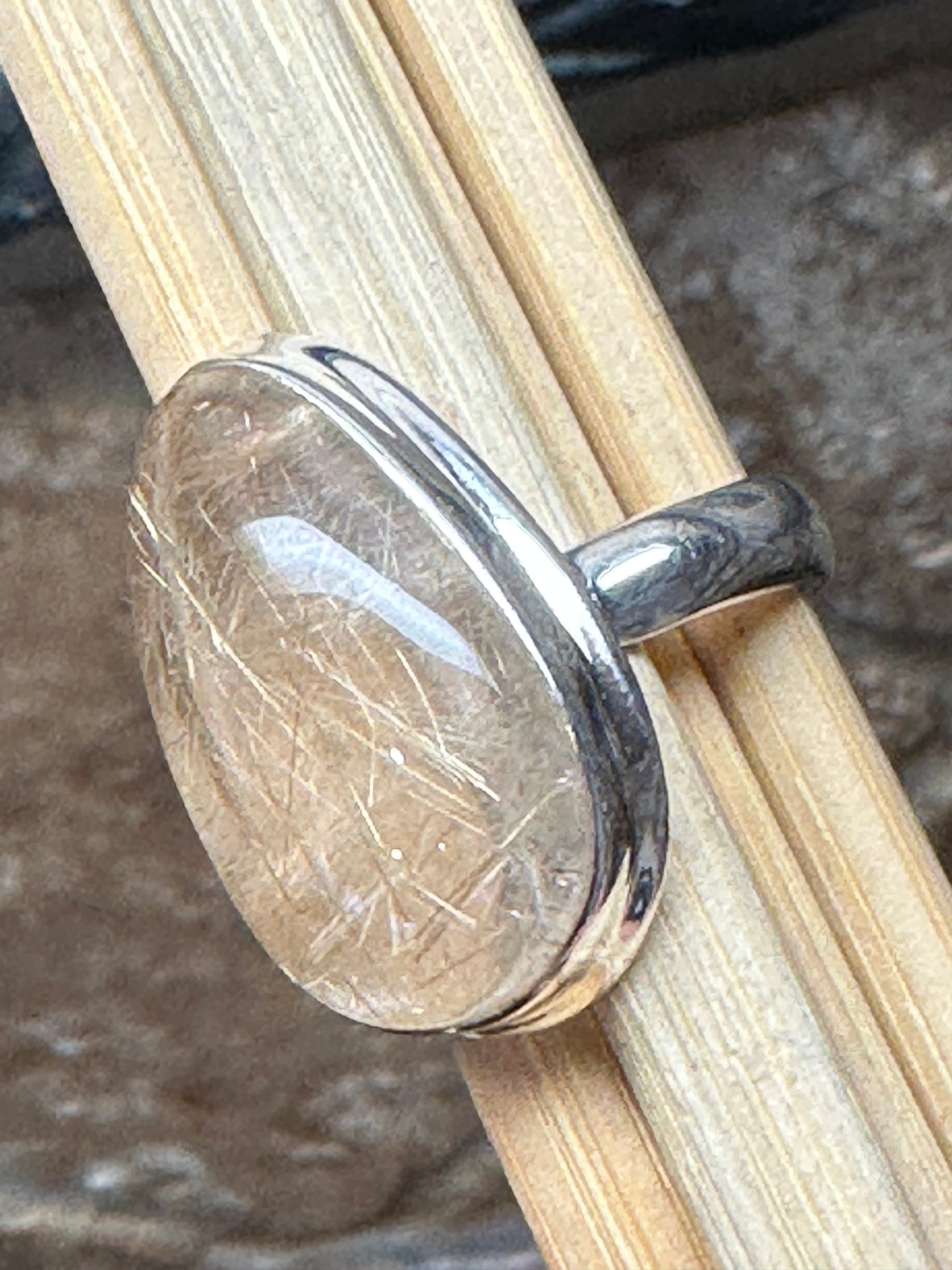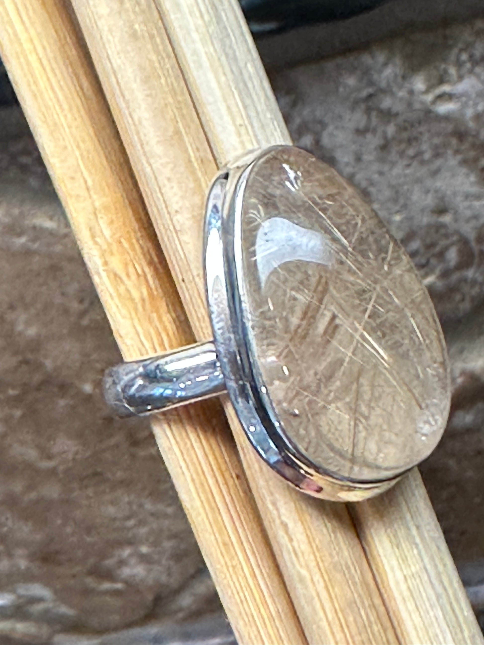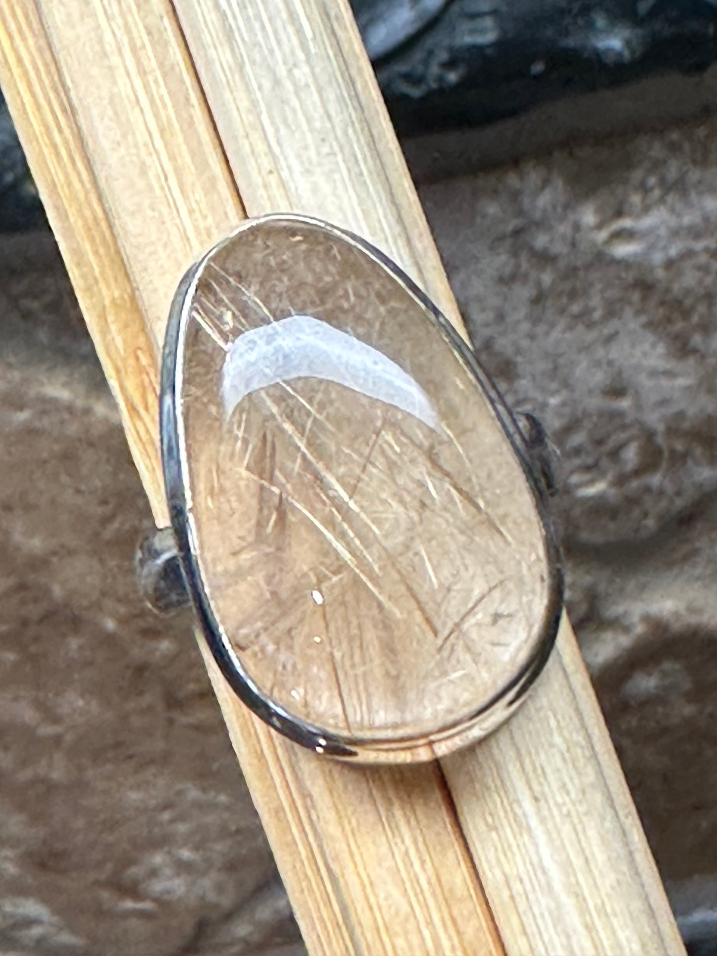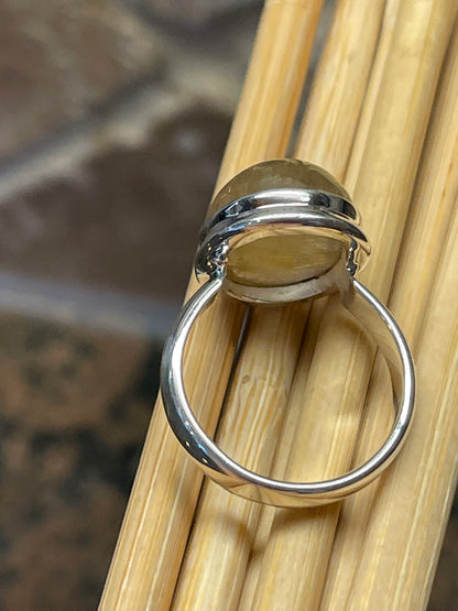 Genuine Golden Rutilated Quartz 925 Solid Sterling Silver Ring Size 6.75