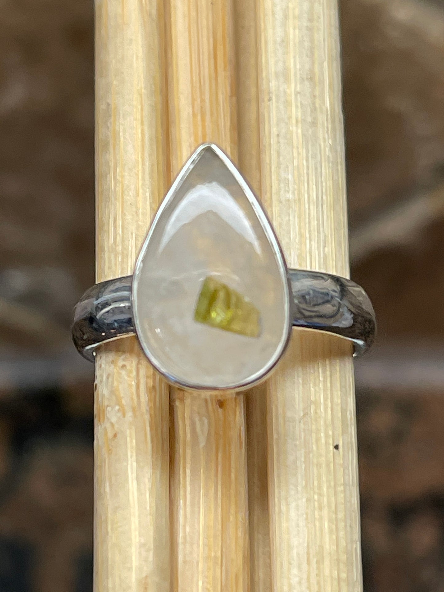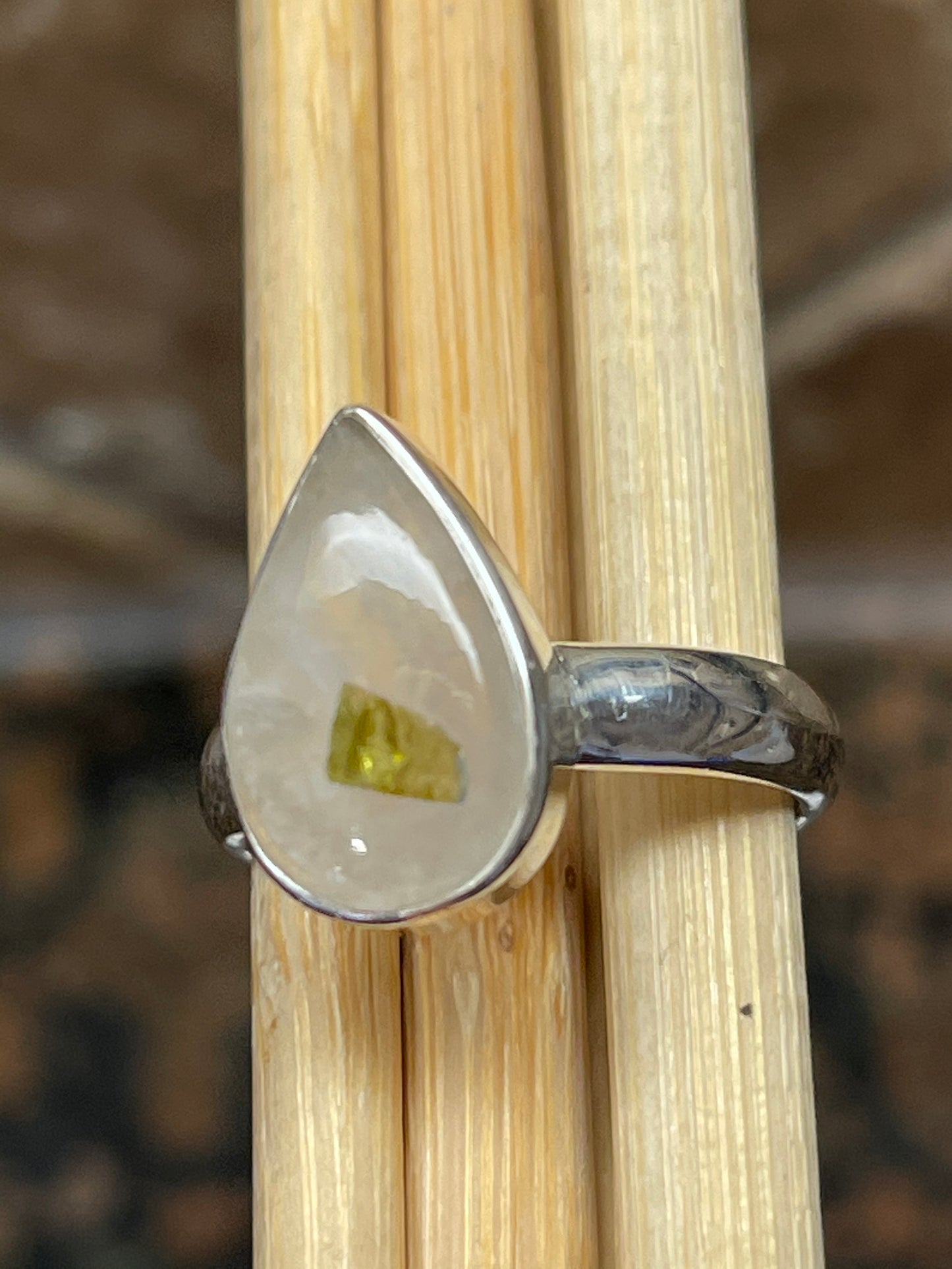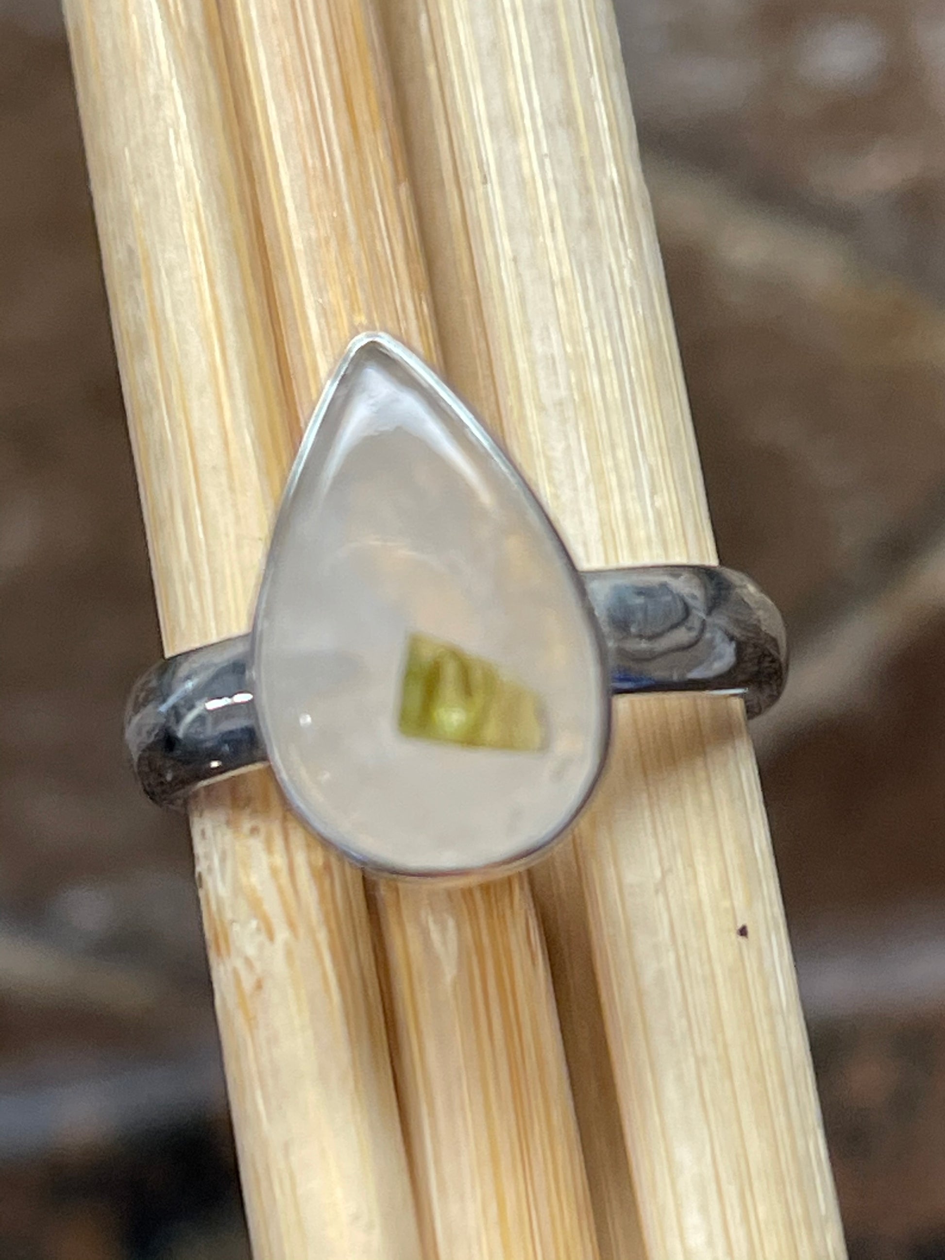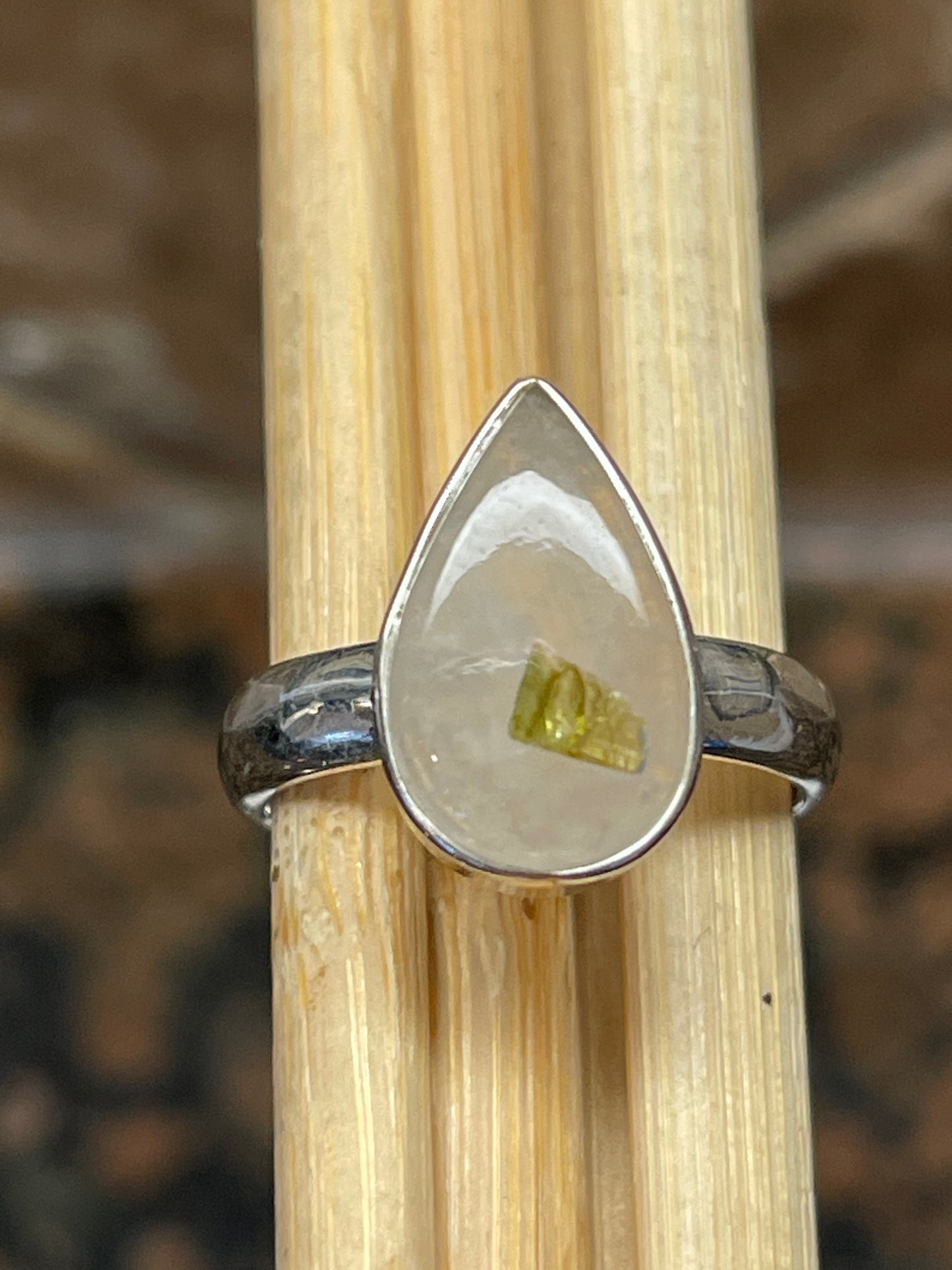 Genuine Green Tourmaline In Quartz Cab Ring Size 8