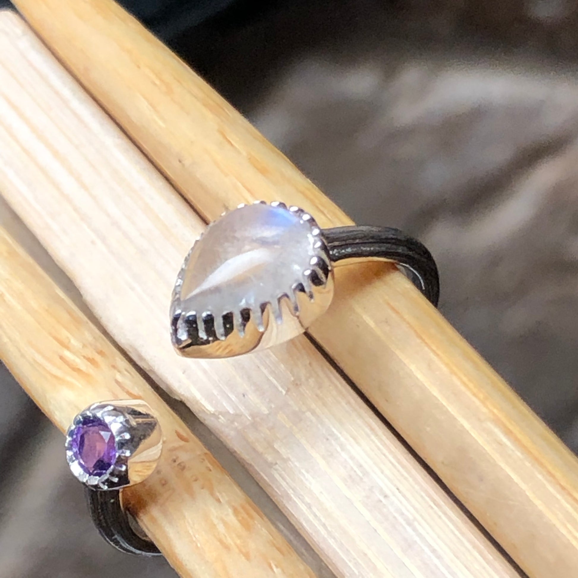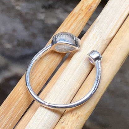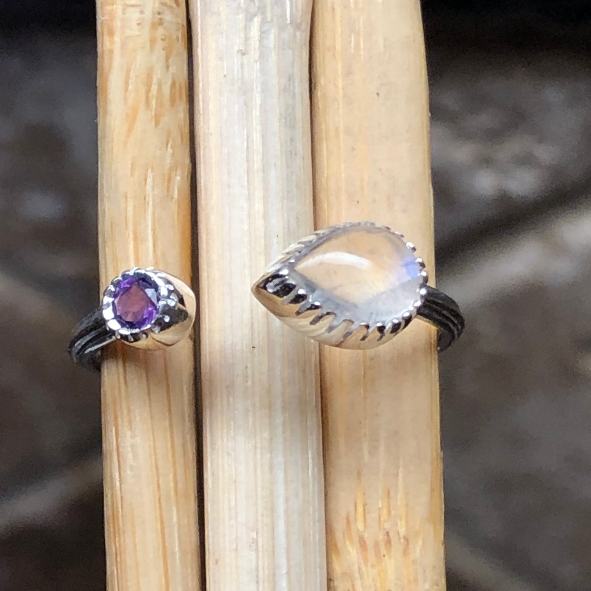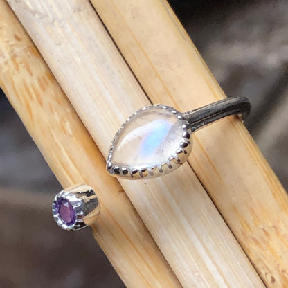 Genuine Rainbow Moonstone, Amethyst 925 Solid Sterling Silver Open Band Ring Size 5, 6, 7, 8, 9