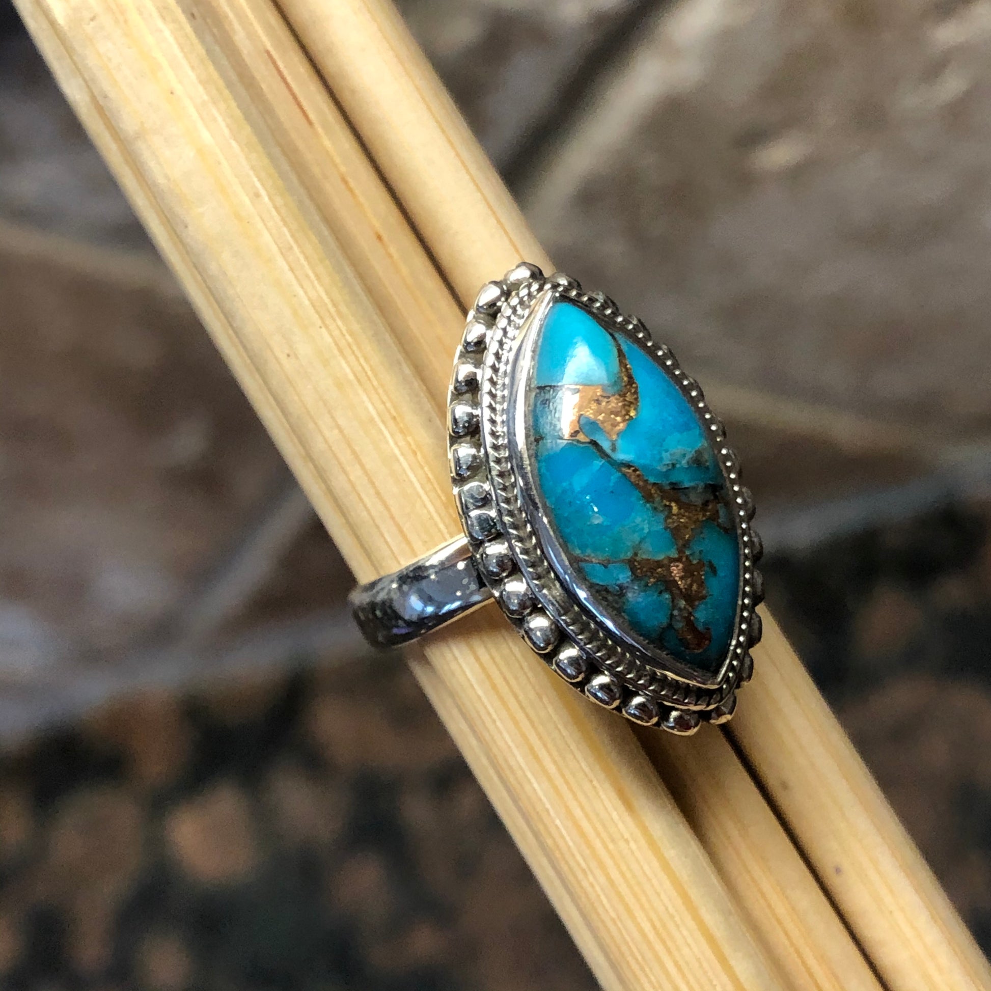 Gorgeous Blue Mohave Turquoise 925 Solid Sterling Silver Ring Size 6