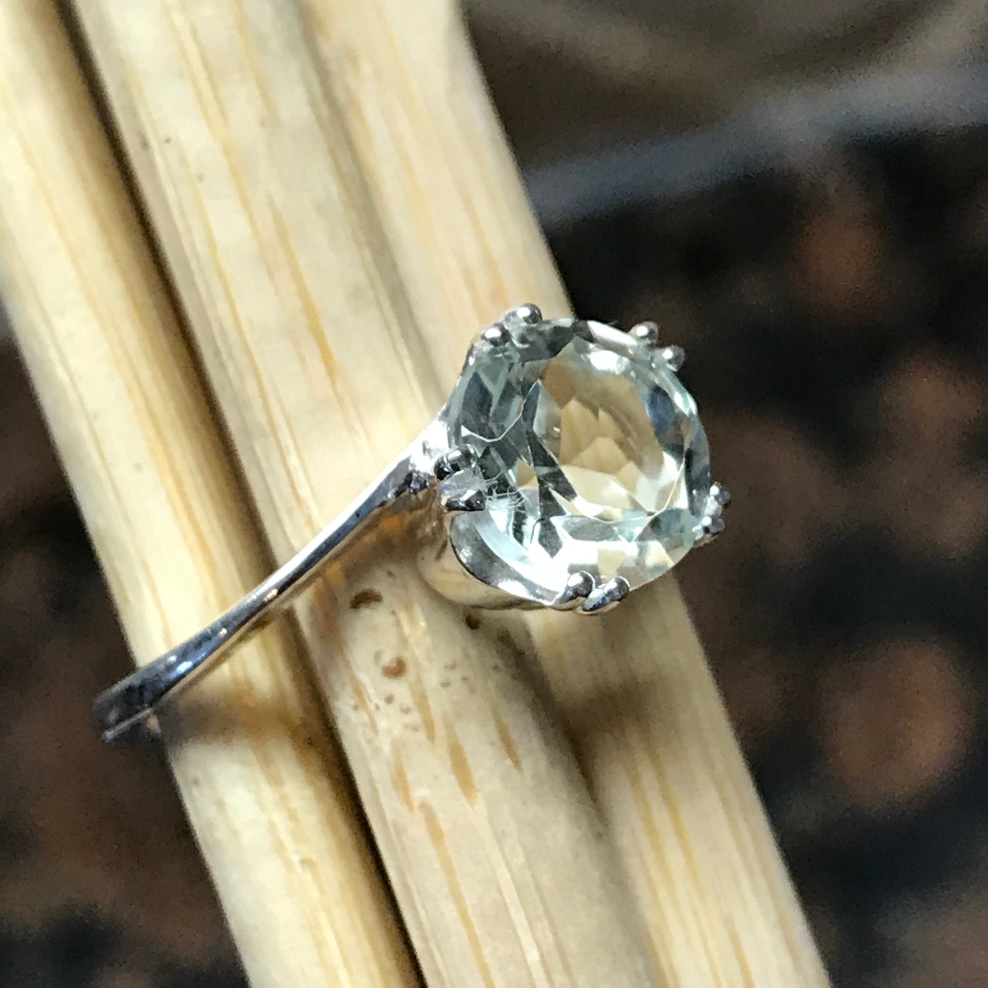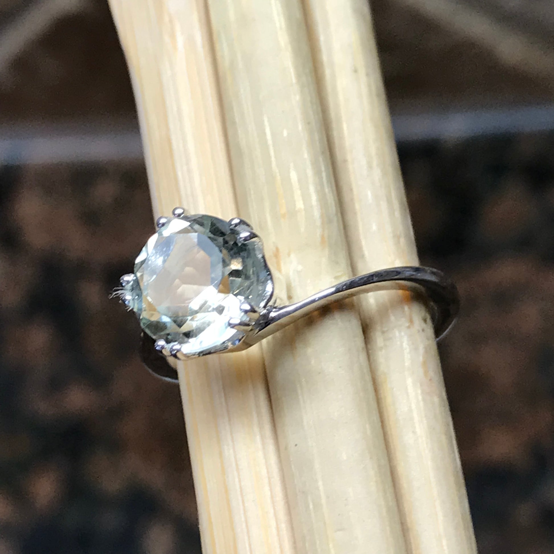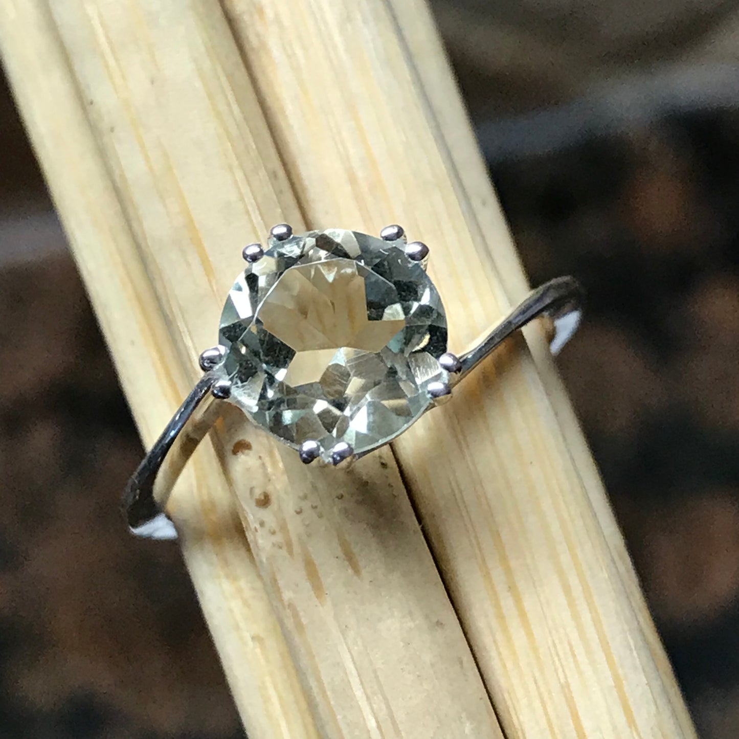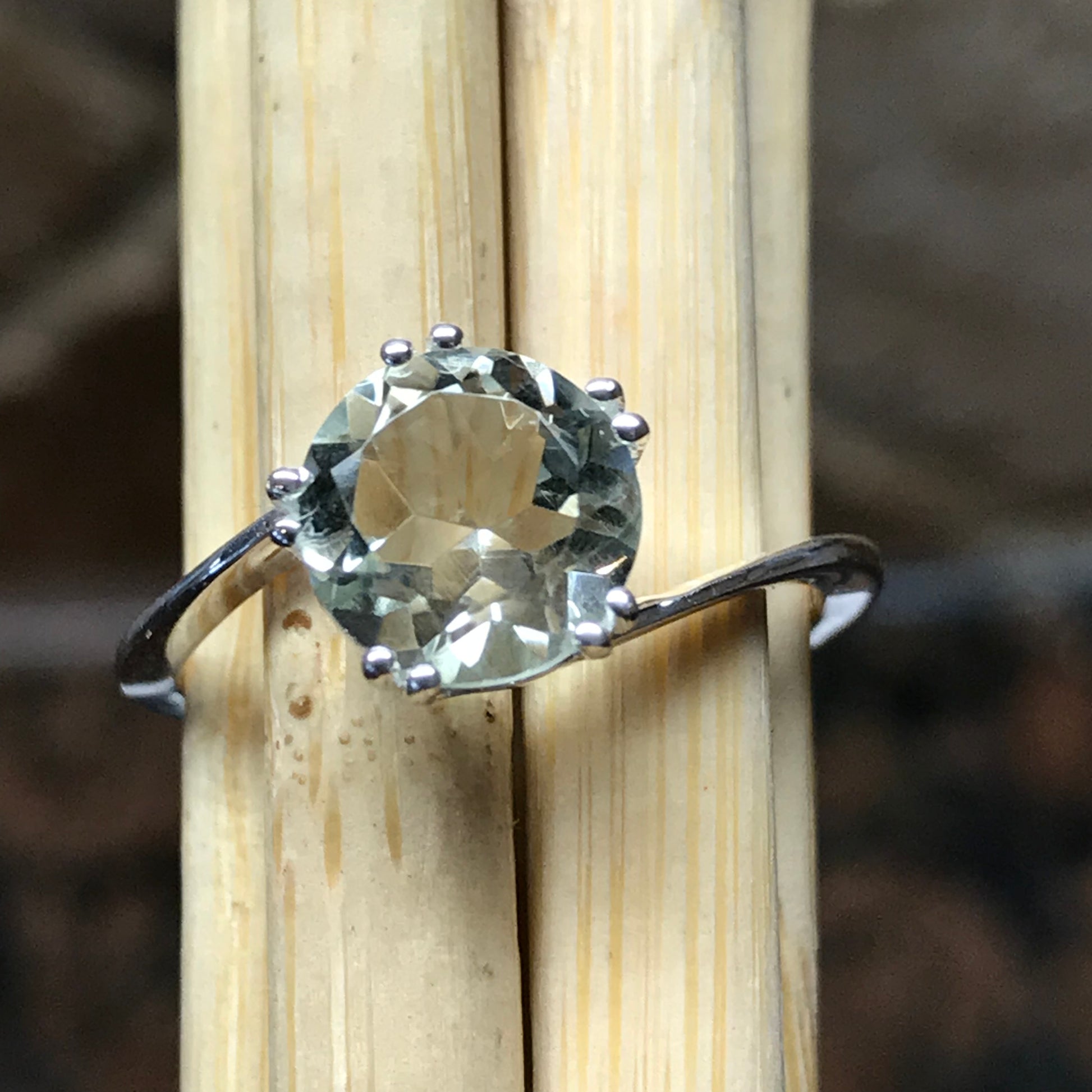 Natural 1.25ct Green Amethyst 925 Solid Sterling Silver Engagement Ring Size 5, 6, 7