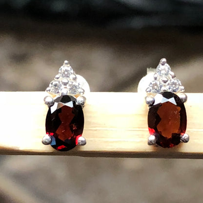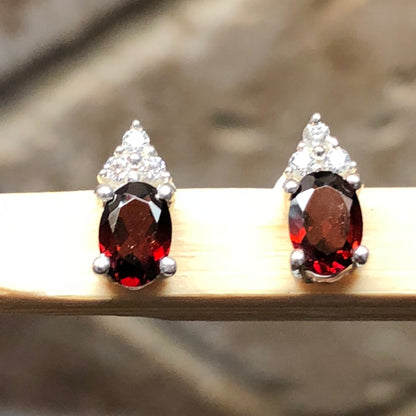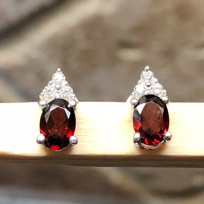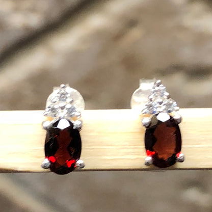Natural 1.5ct Garnet 925 Solid Sterling Silver Earrings 10mm