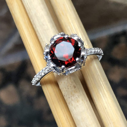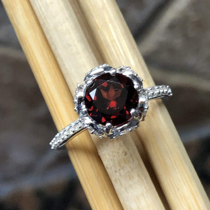 Natural 1.5ct Pyrope Garnet 925 Solid Sterling Silver Engagement Ring Size 5, 6, 7, 8, 9