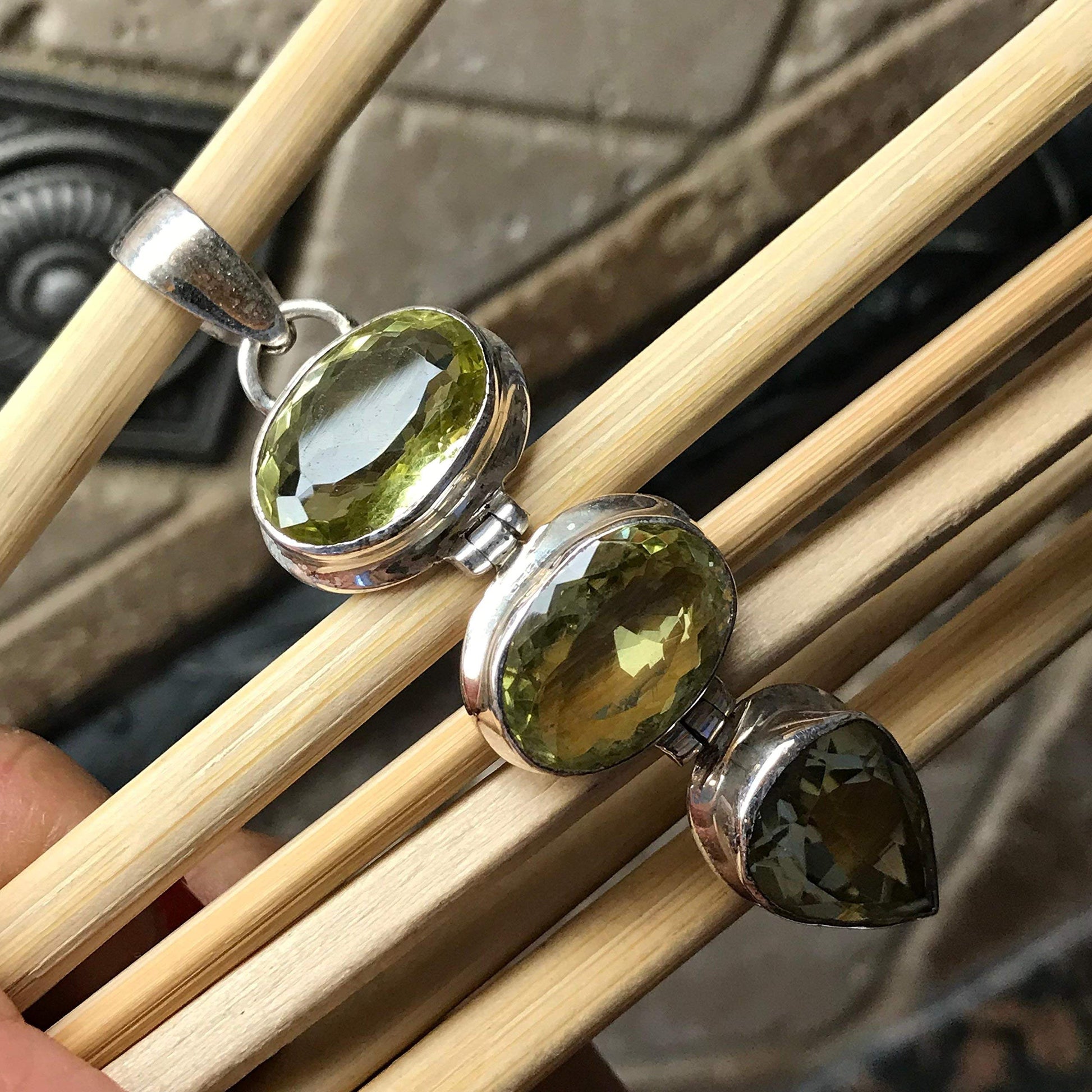 Natural 20ct Lemon Topaz 925 Solid Sterling Silver Pendant 65mm