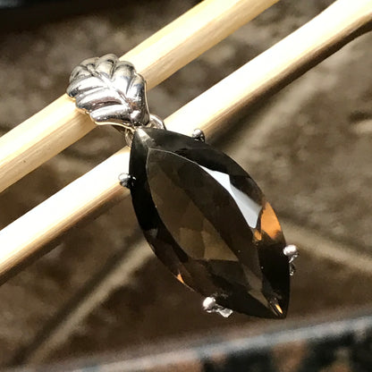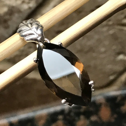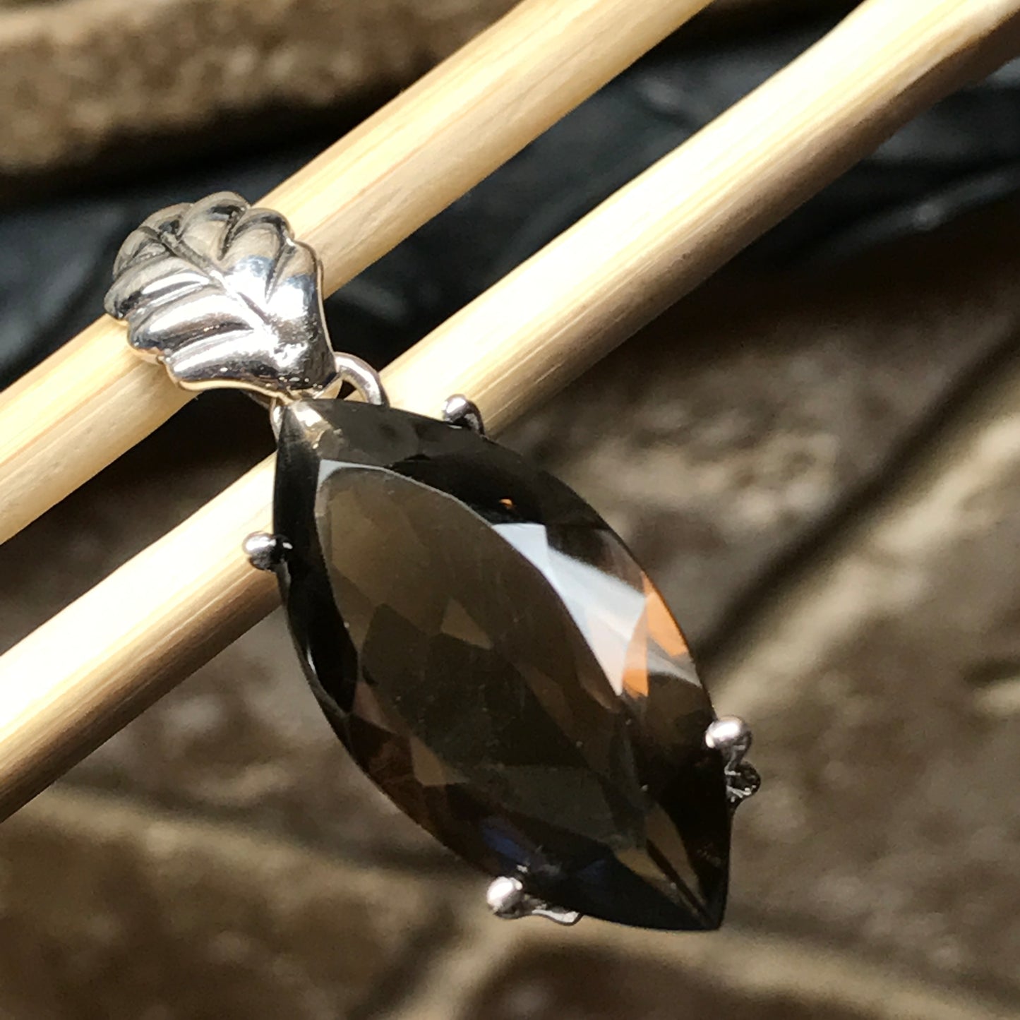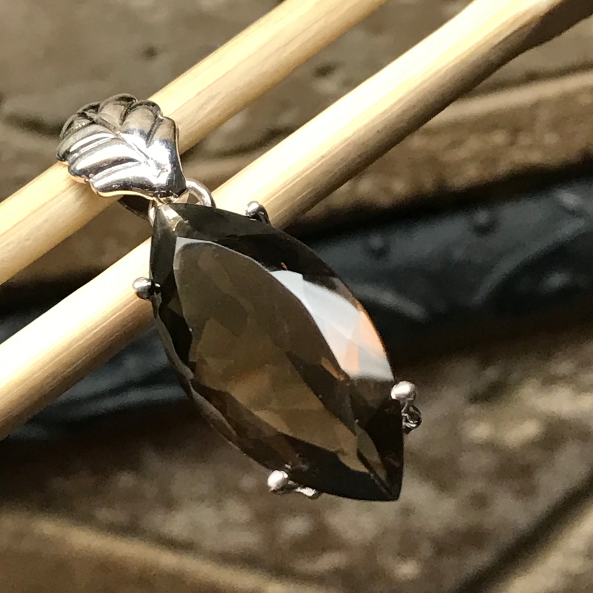 Natural 10ct Smoky Topaz 925 Solid Sterling Silver Pendant 35mm