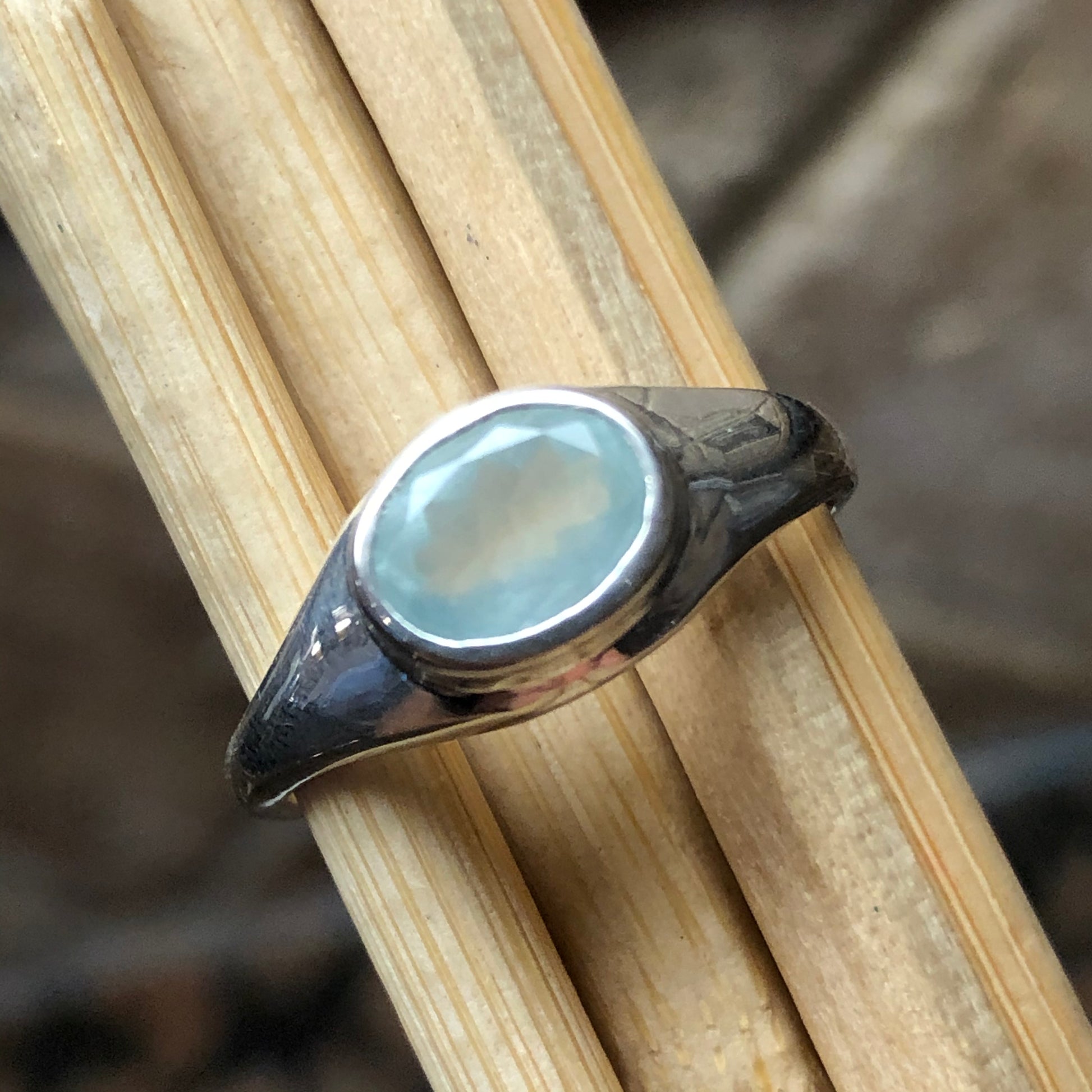 Natural 1ct Blue Aquamarine 925 Solid Sterling Silver Men's Ring Size 8.5