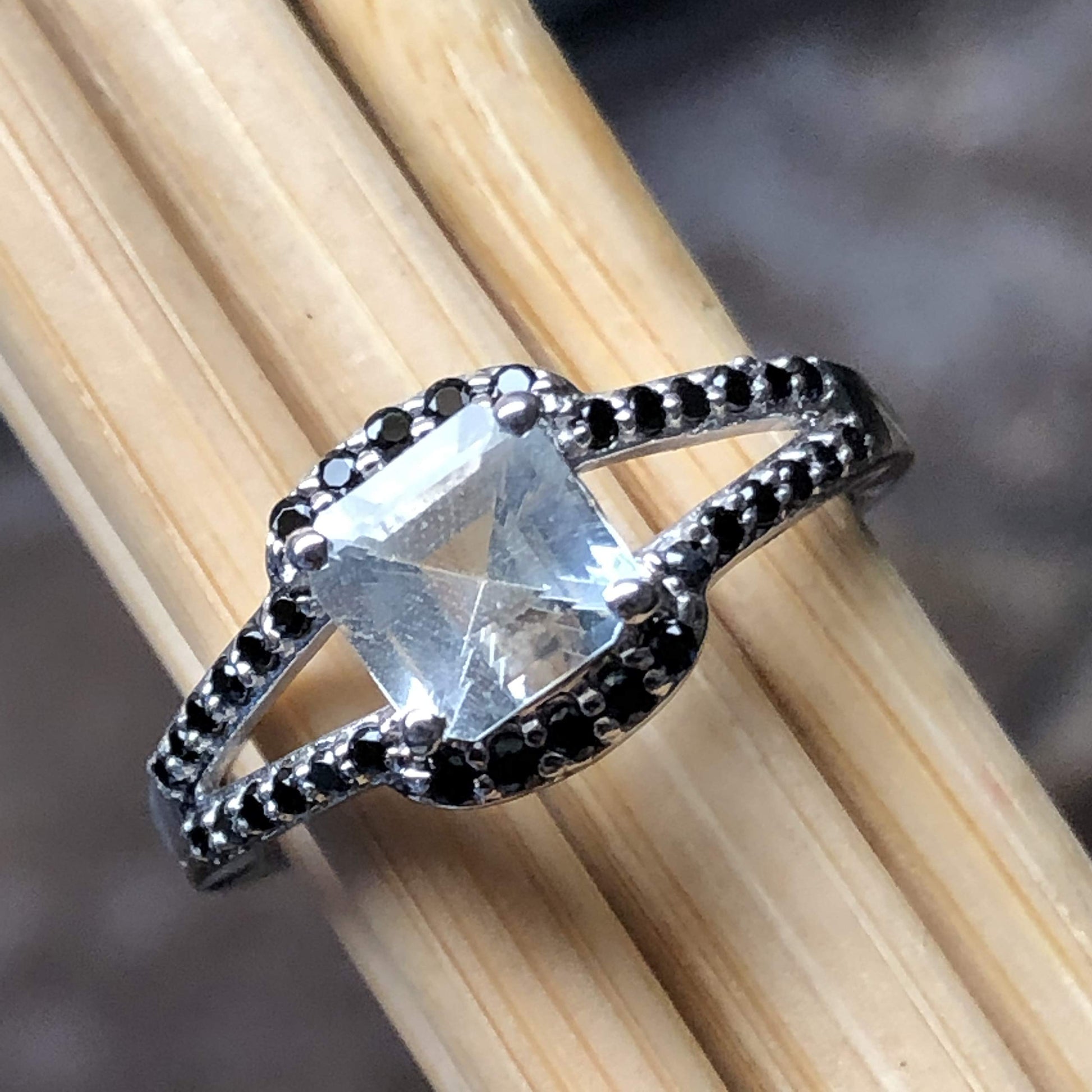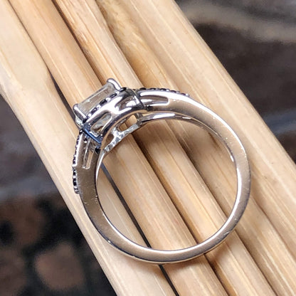 Natural 1ct Blue Aquamarine, Spinel 925 Solid Sterling Silver Engagement Ring Size 6, 7, 8, 9