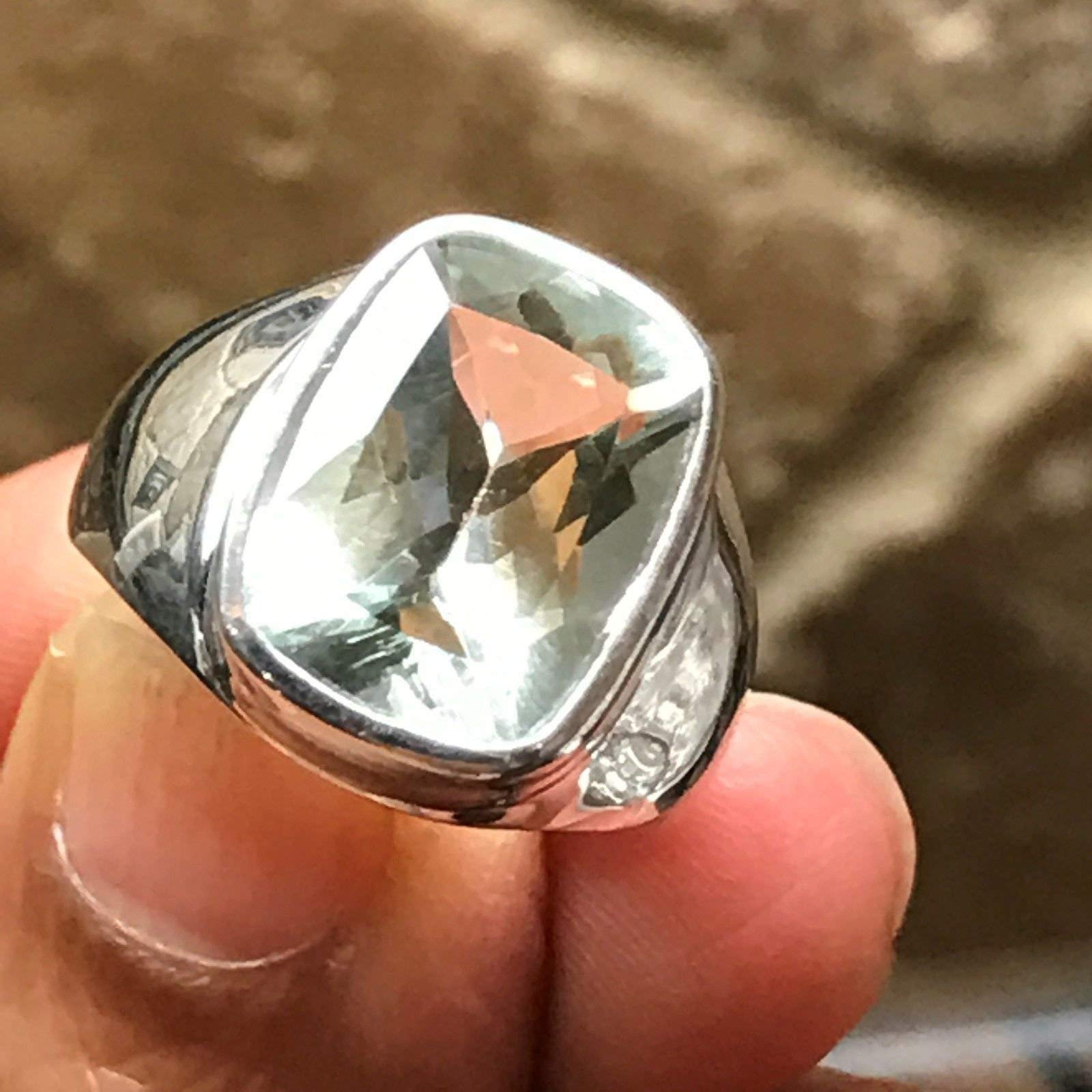 Natural 2.5ct Green Amethyst 925 Solid Sterling Silver Men's Ring Size 8.25