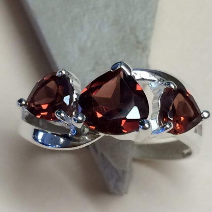 Natural 2.5ct Pyrope Garnet 925 Solid Sterling Silver Ring Size 6, 7, 8