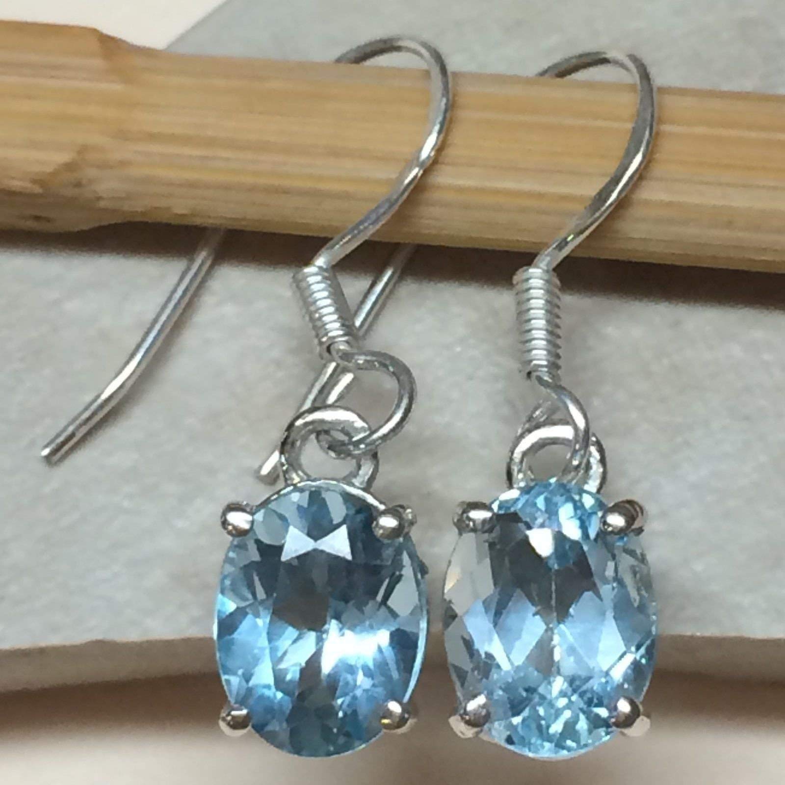 Natural 2ct Blue Aquamarine 925 Solid Sterling Silver Earrings 20mm