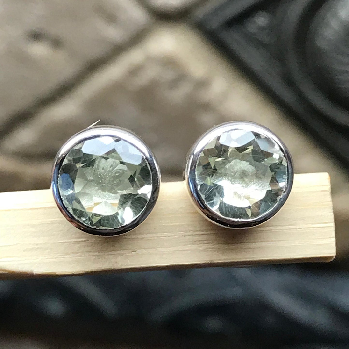 Natural 2ct Green Amethyst 925 Solid Sterling Silver Earrings 7mm