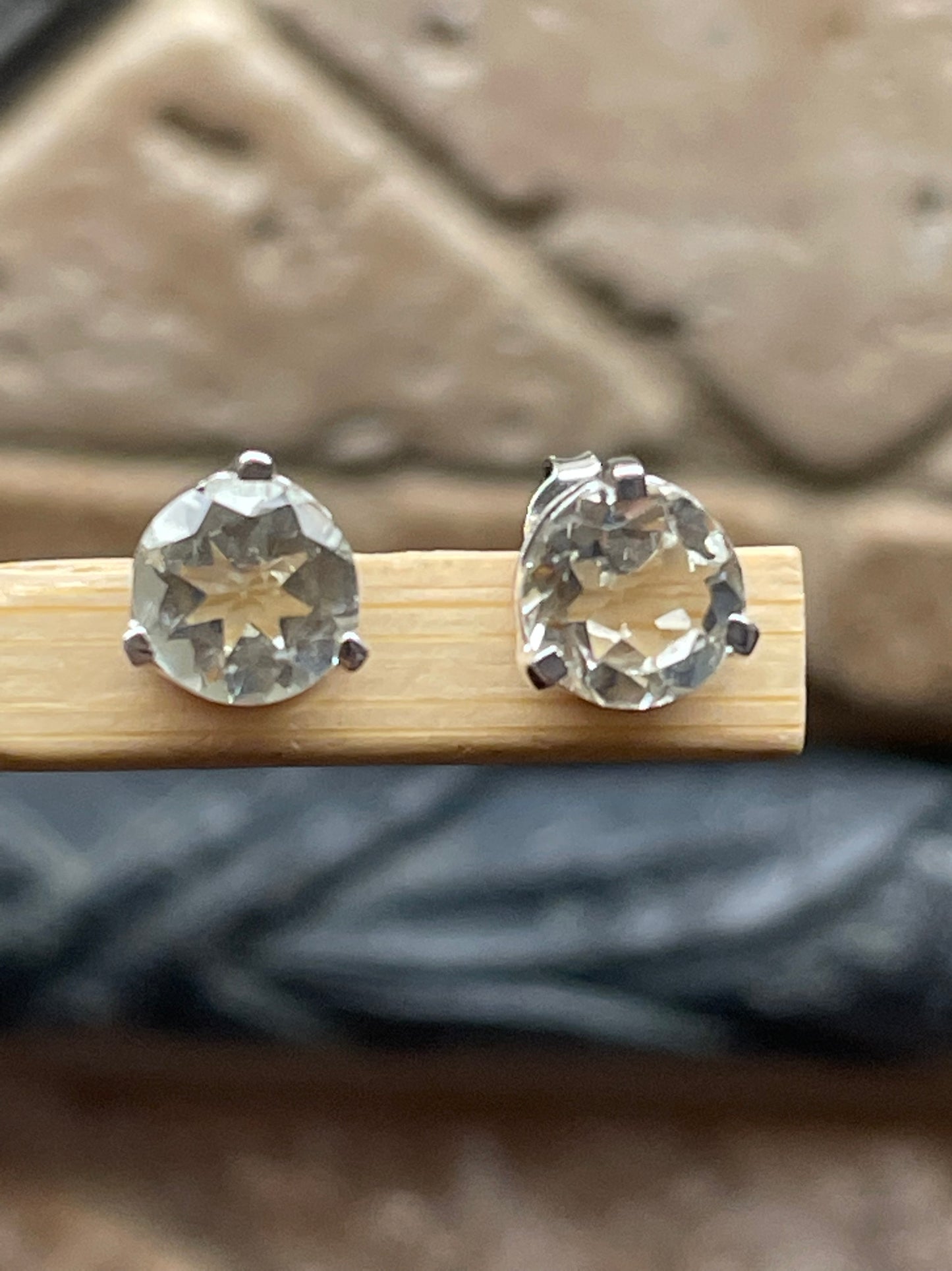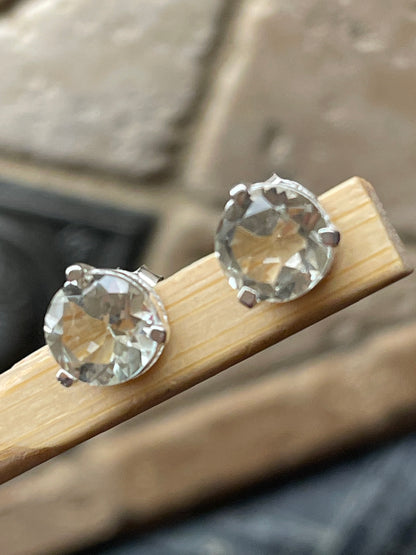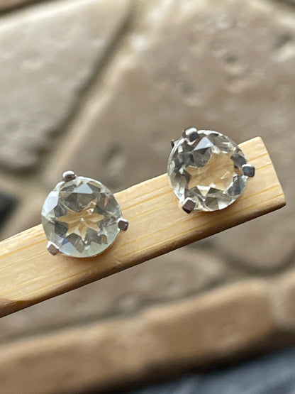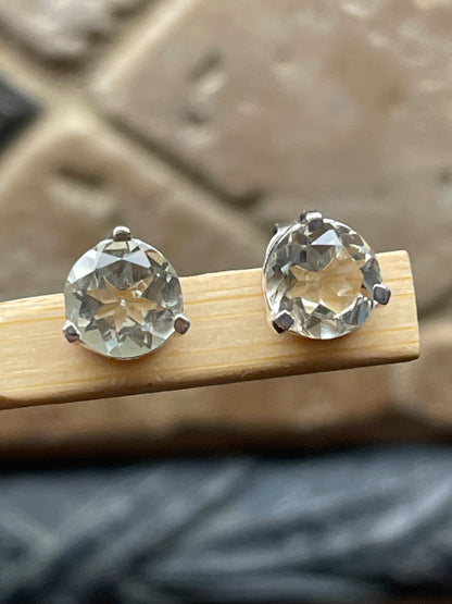 Natural 2ct Green Amethyst 925 Solid Sterling Silver Earrings 7mm