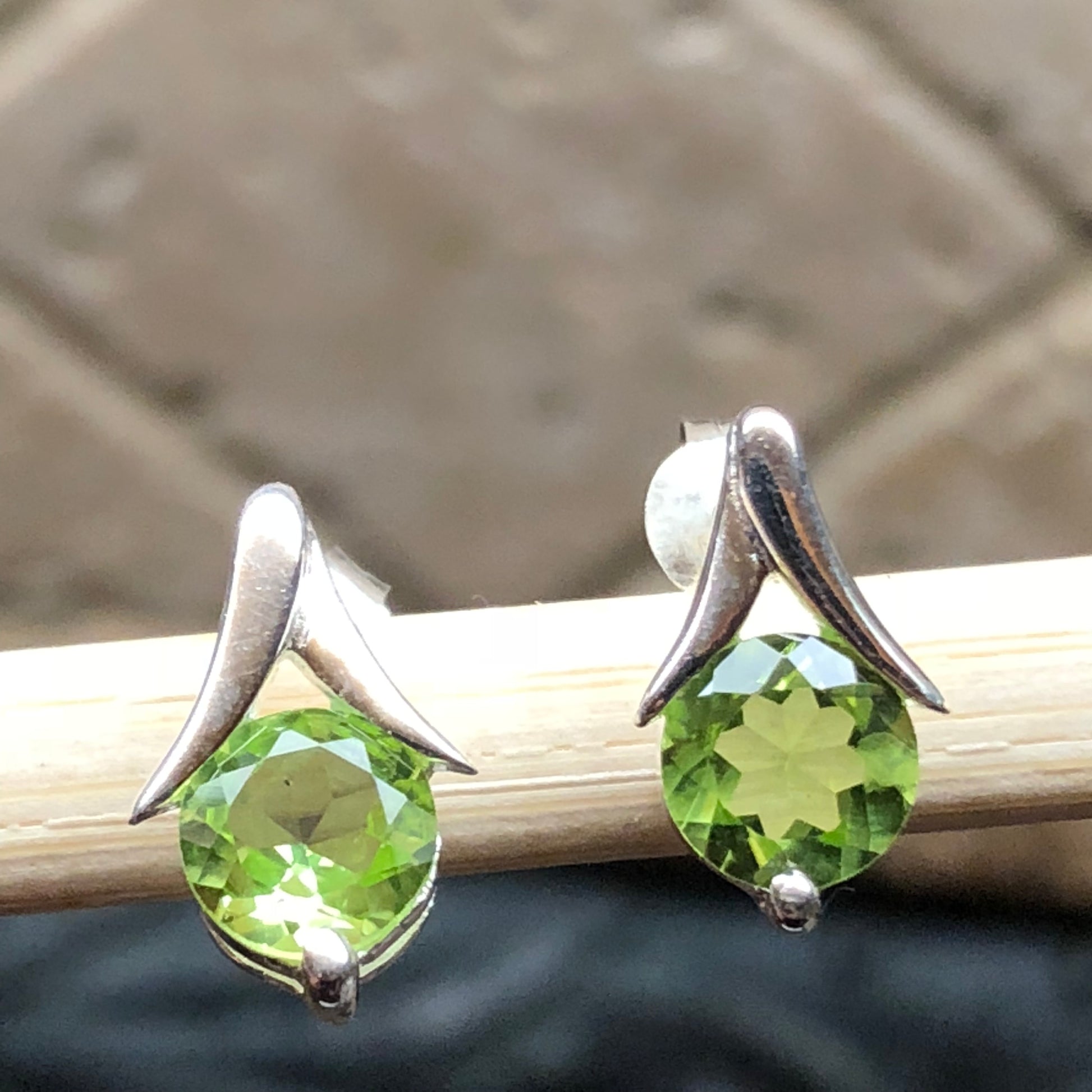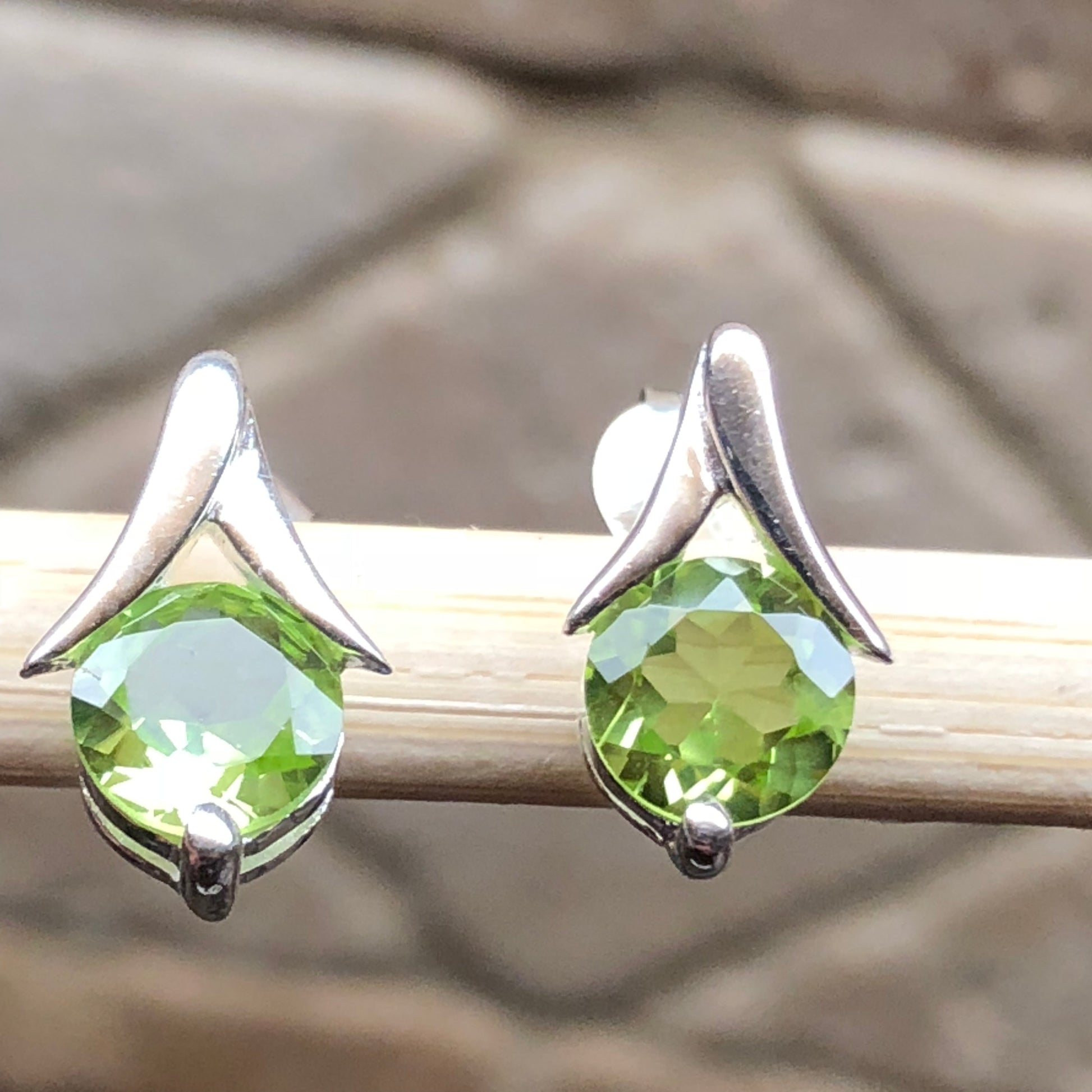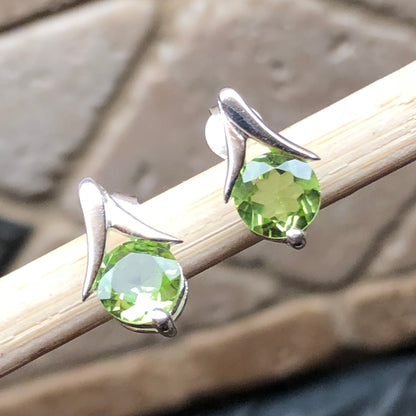 Natural 2ct Peridot 925 Solid Sterling Silver Earrings 25mm