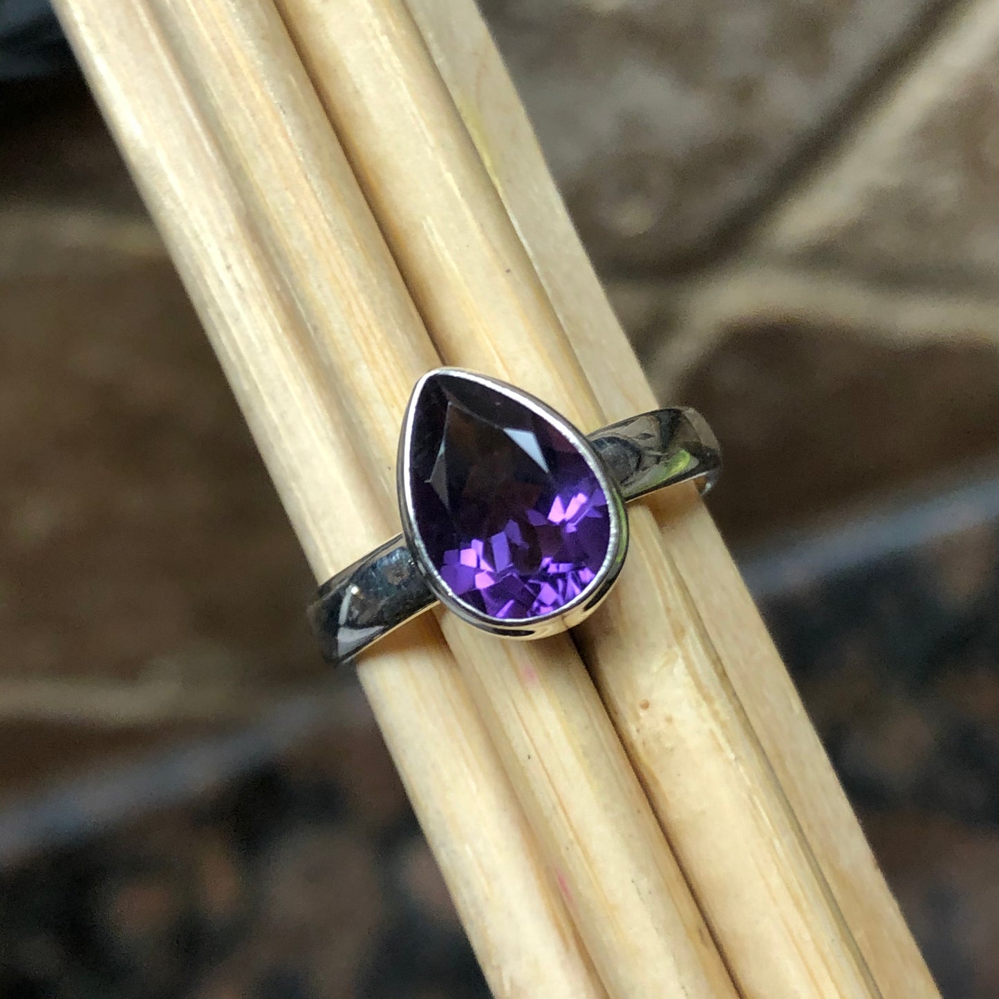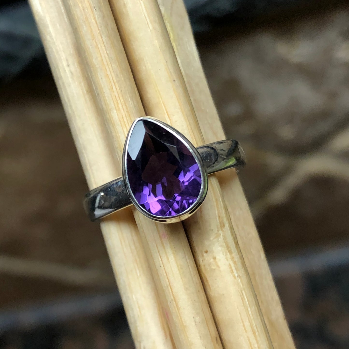 Natural 2ct Purple Amethyst 925 Solid Sterling Silver Engagement Ring Size 6, 7, 8