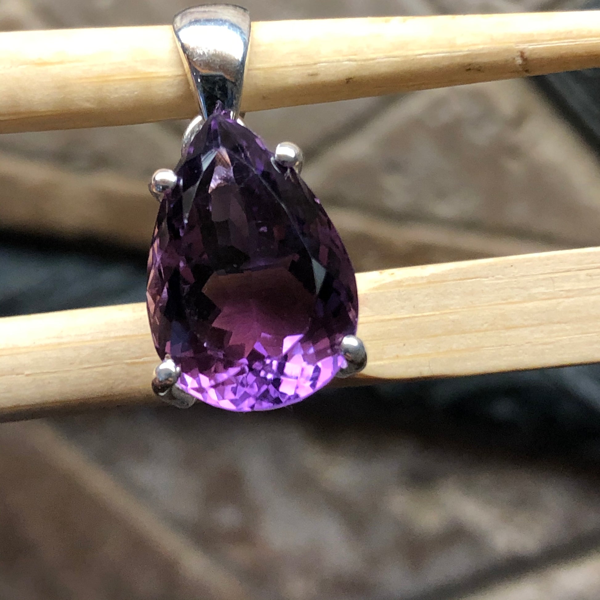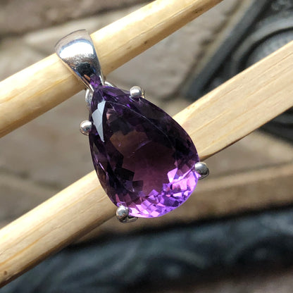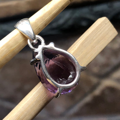 Natural 2ct Purple Amethyst 925 Solid Sterling Silver Pendant 25mm