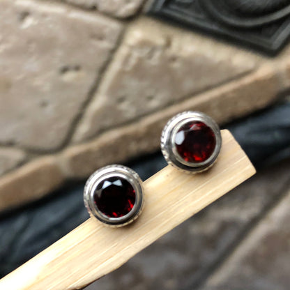 Natural 2ct Pyrope Garnet 925 Solid Sterling Silver Earrings 8mm