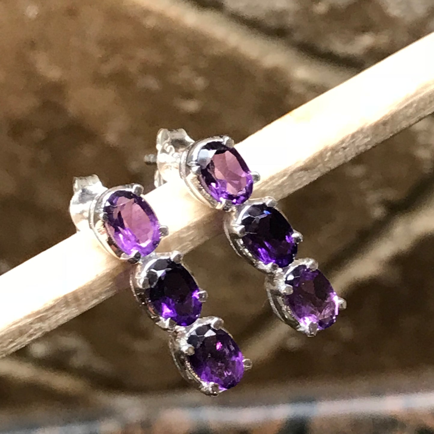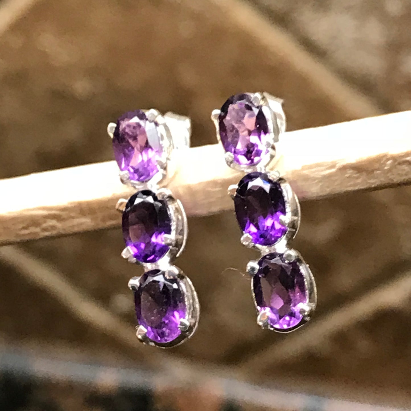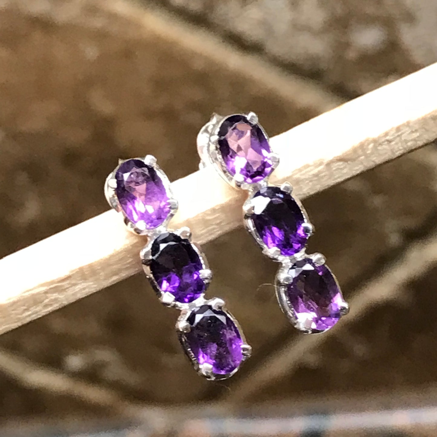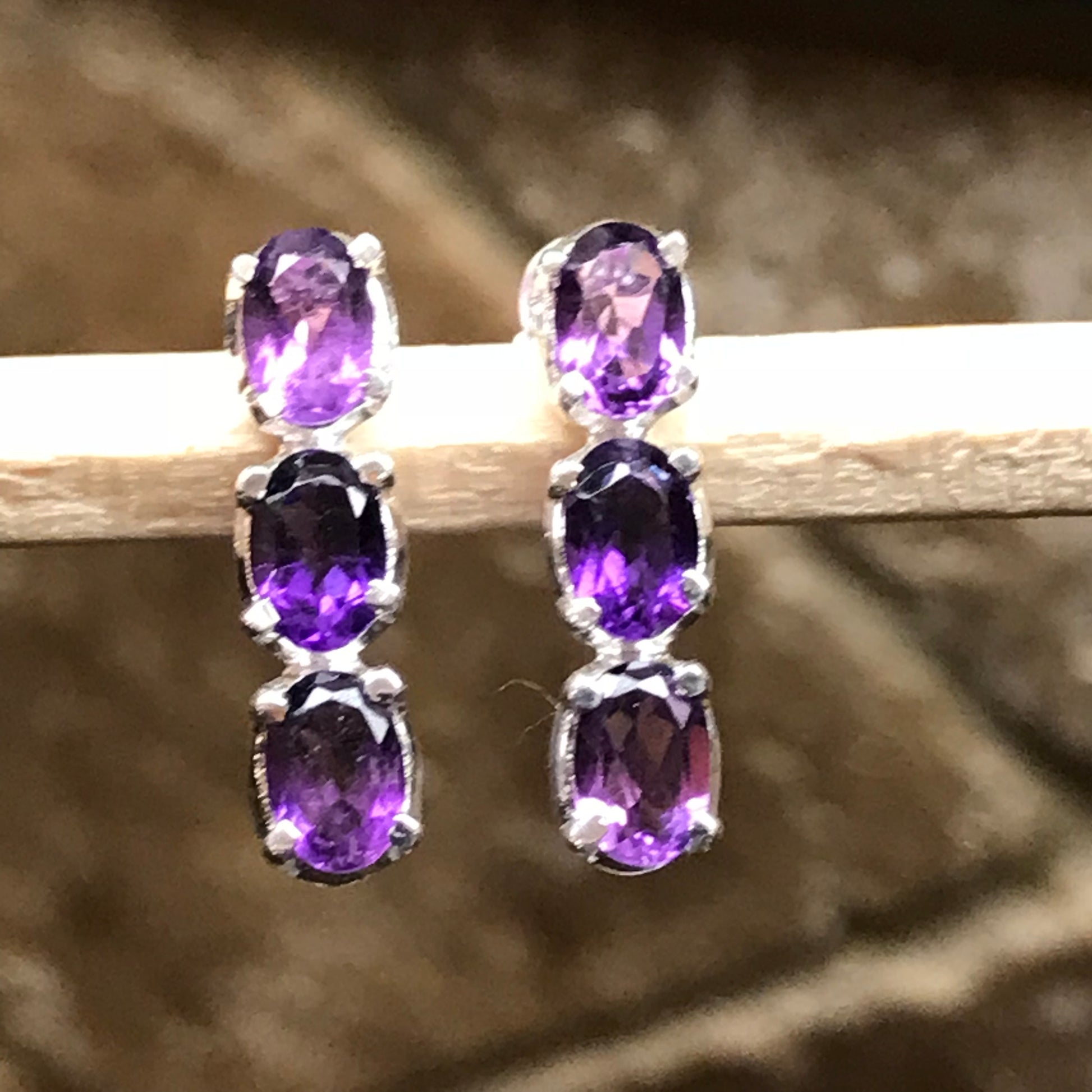 Natural 3.5ct Purple Amethyst 925 Solid Sterling Silver Earrings 18mm