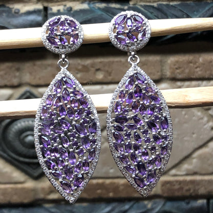 Natural 30ct Purple Amethyst 925 Solid Sterling Silver Earrings 65mm