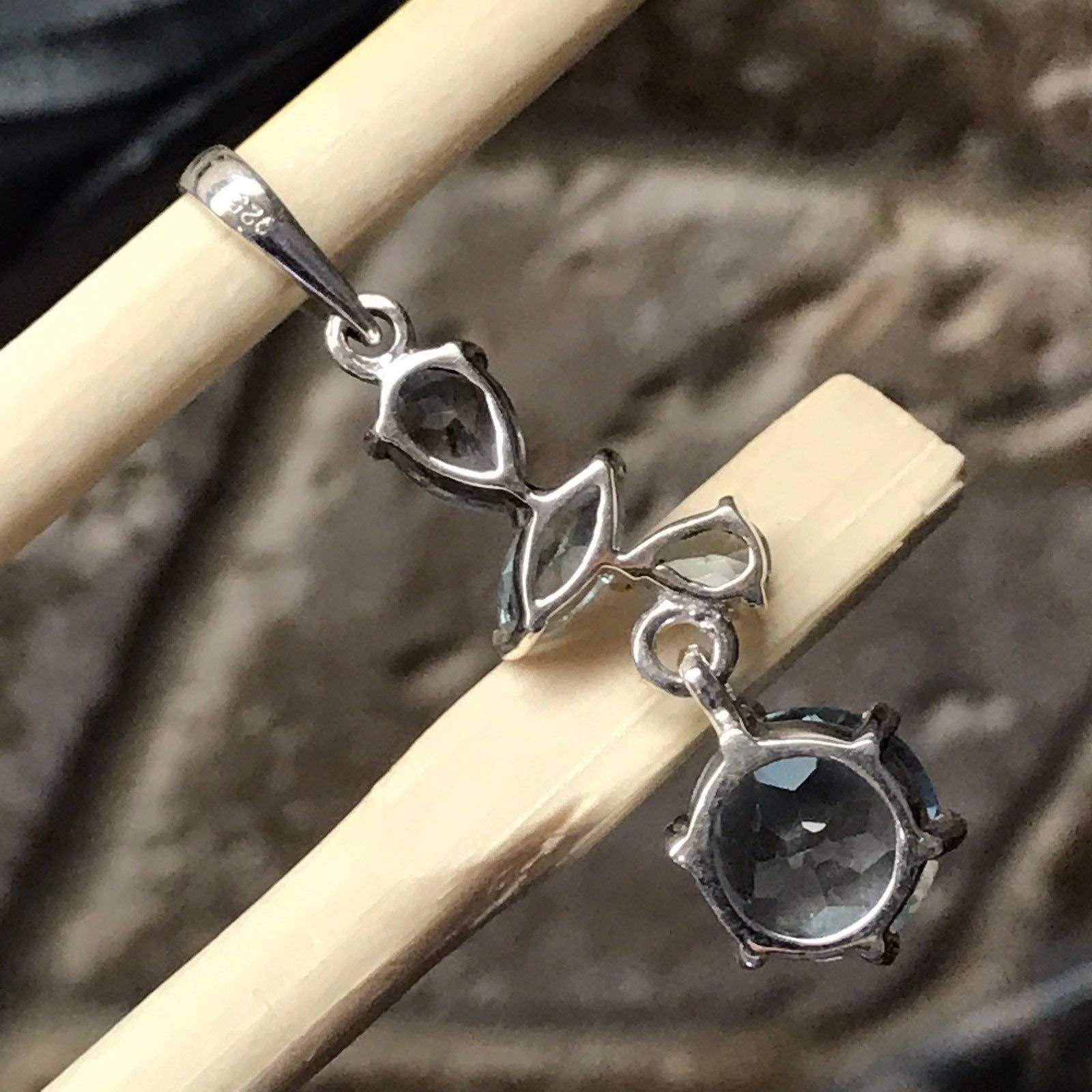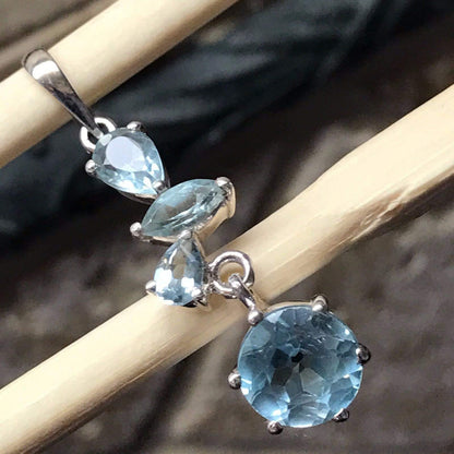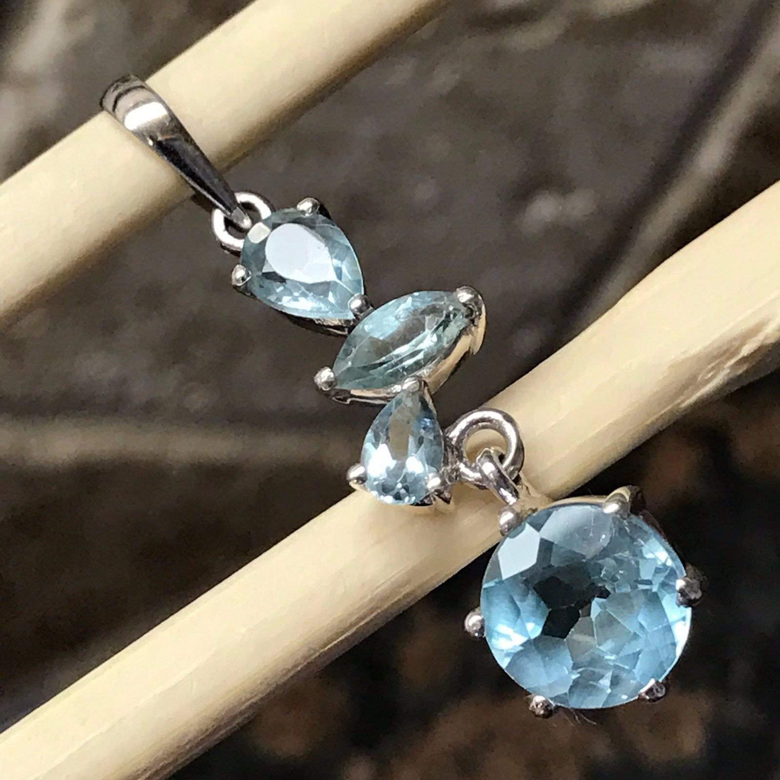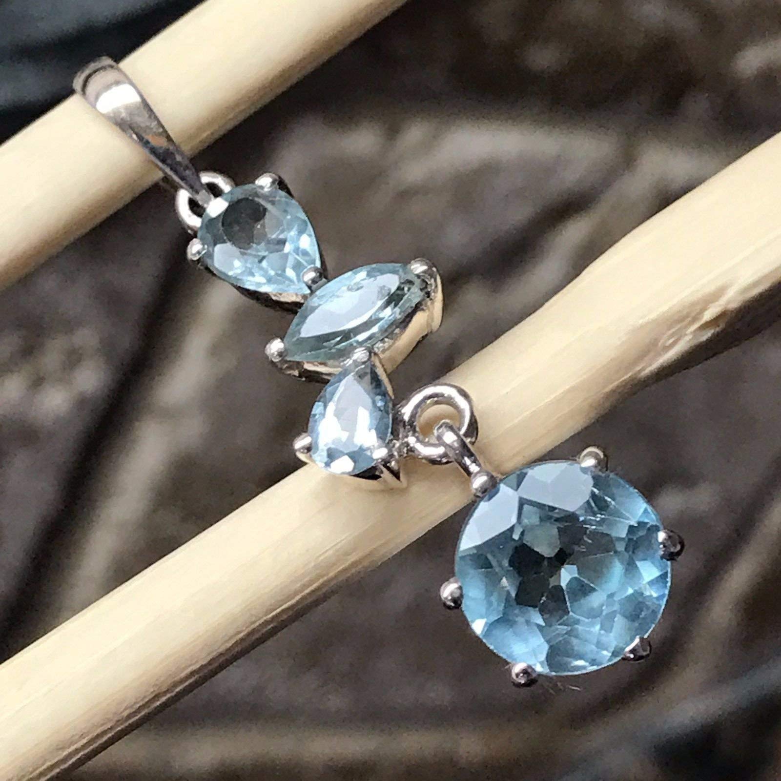 Natural 5ct Blue Topaz 925 Solid Sterling Silver Unisex Pendant 32mm