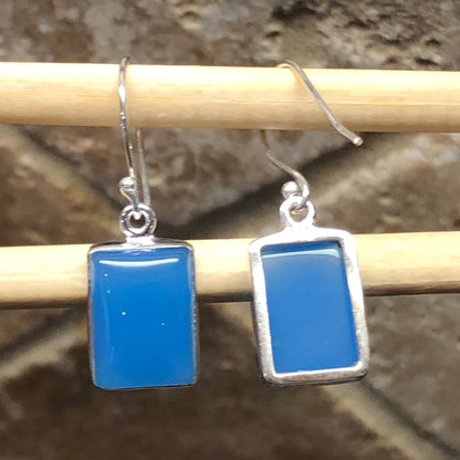 Natural Blue Chalcedony 925 Solid Sterling Silver Earrings 25mm
