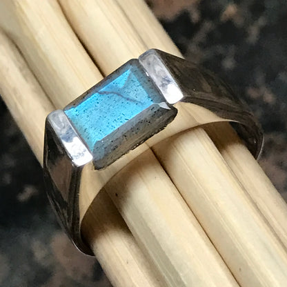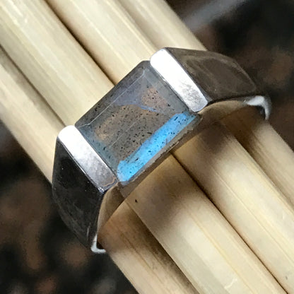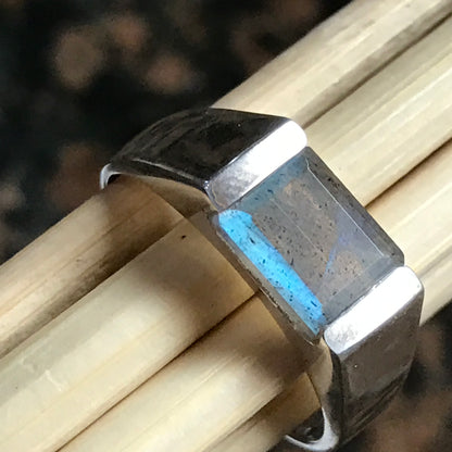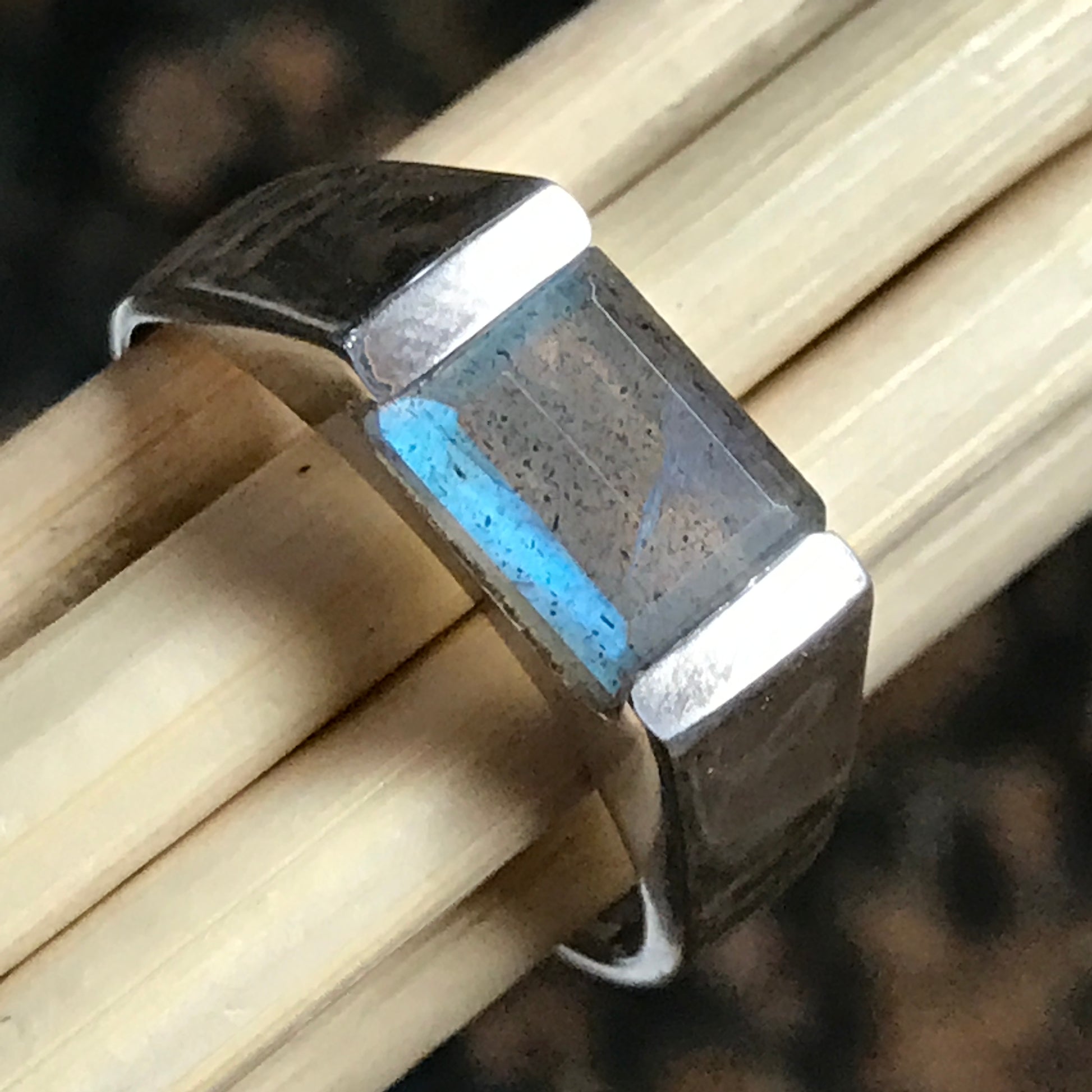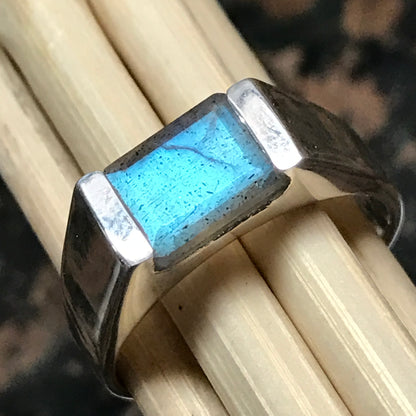 Natural Blue Labradorite 925 Sterling Silver Men's Ring Size 7, 8, 9, 10, 11, 12, 13