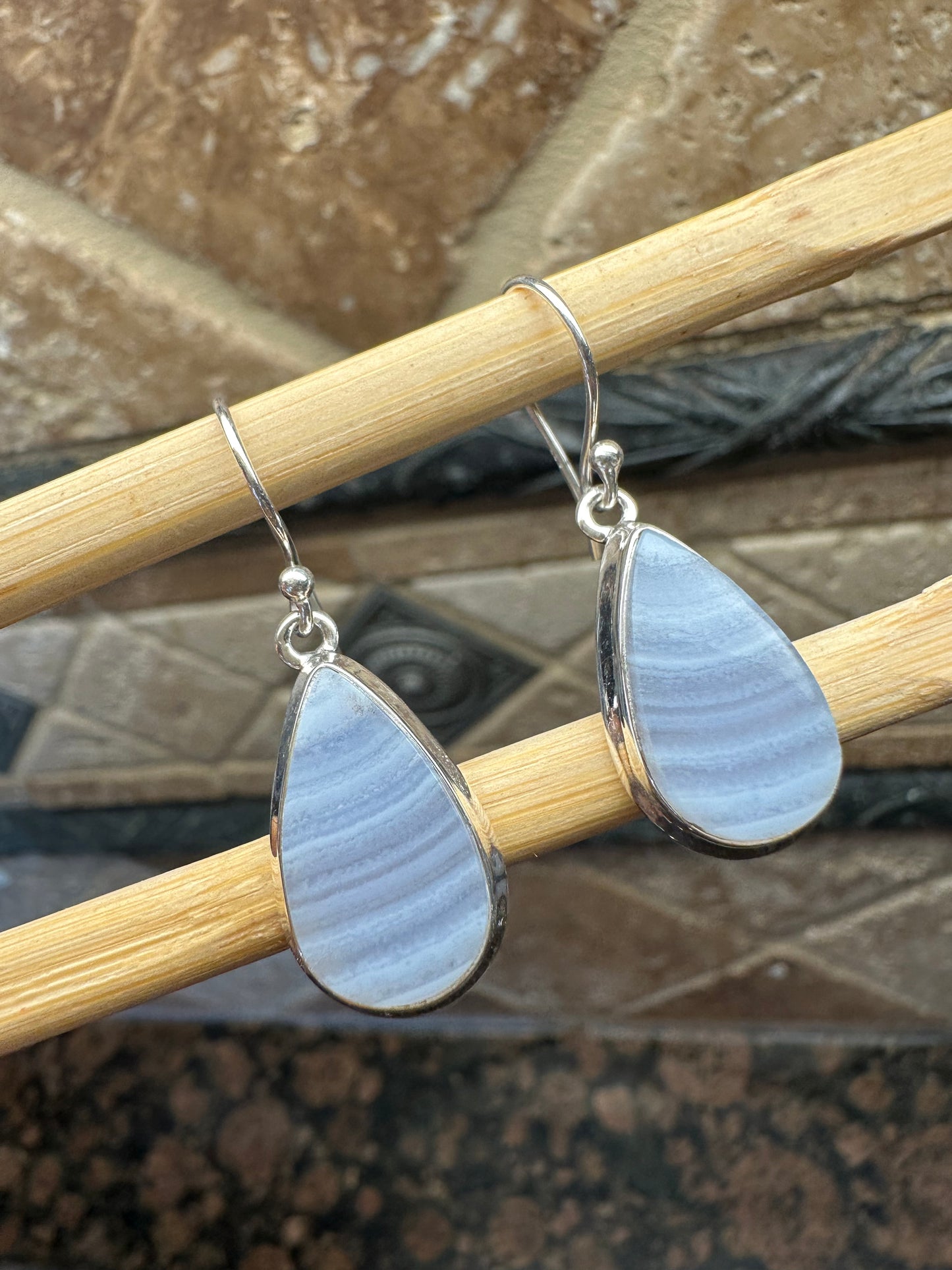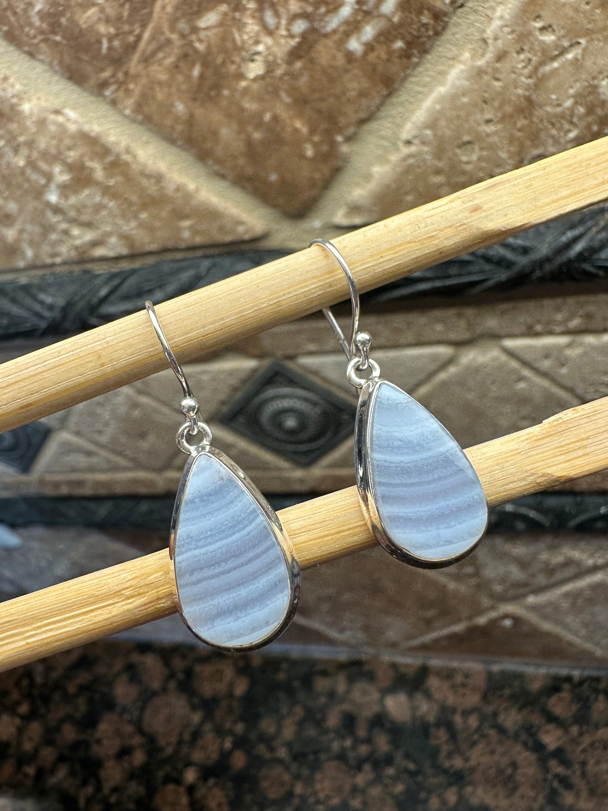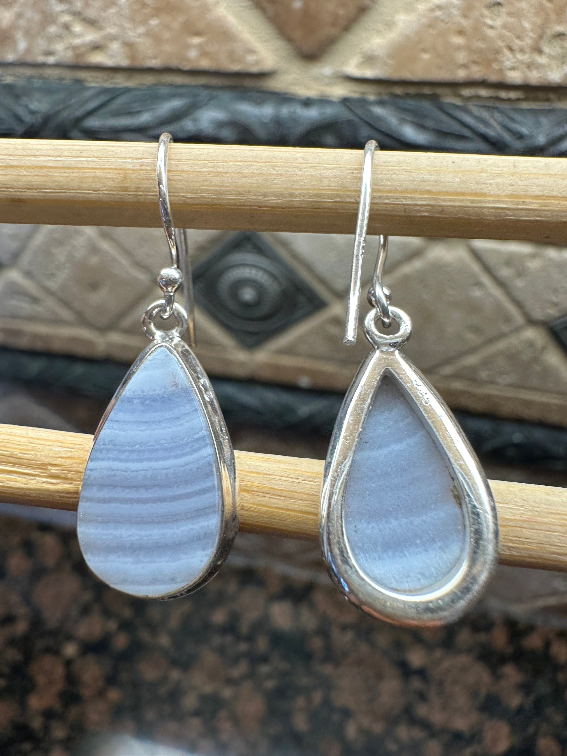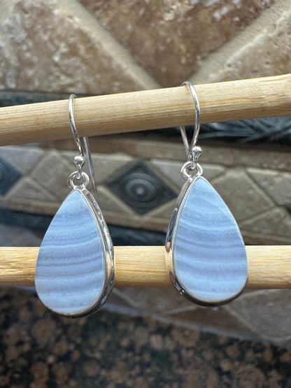 Natural Blue Lace Agate 925 Sterling Silver Earrings 35mm
